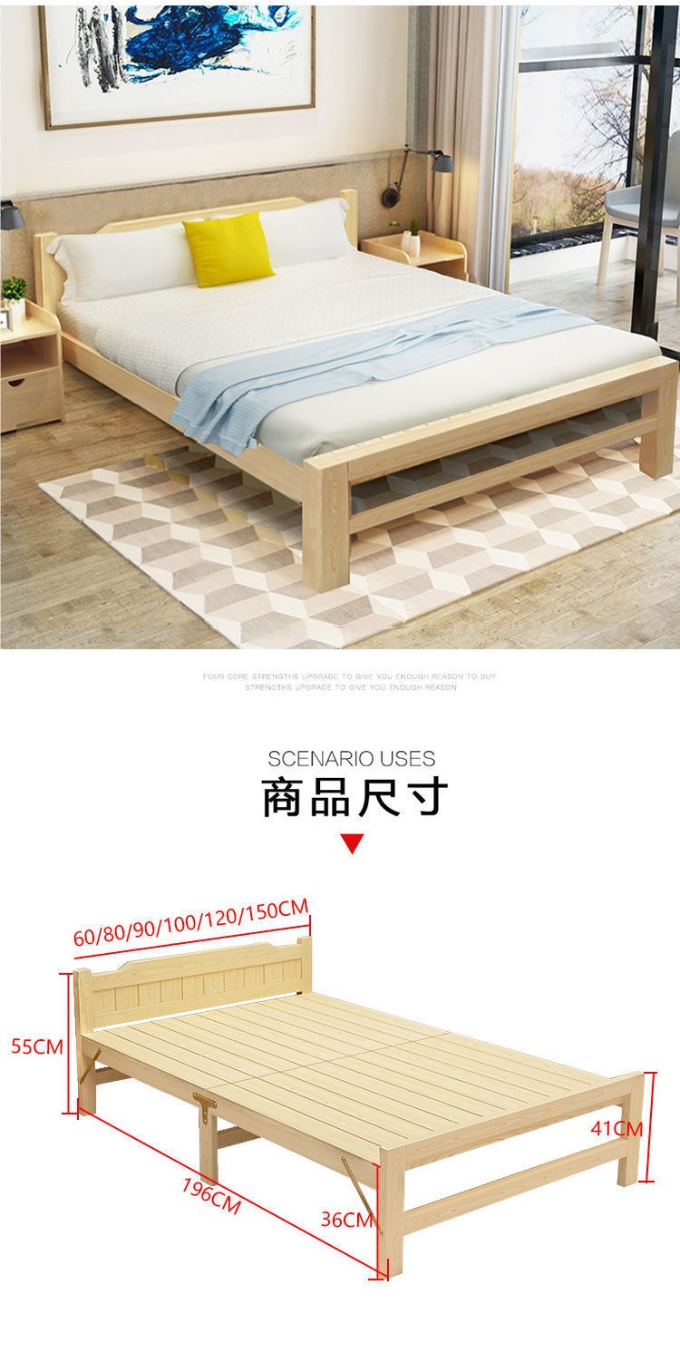 원목 접이식 침대 임대 주택 내구성 싱글 침대 성인 간이 가정용 단단한 침대 임대 침실 침대 어린이 침대스토어 가기