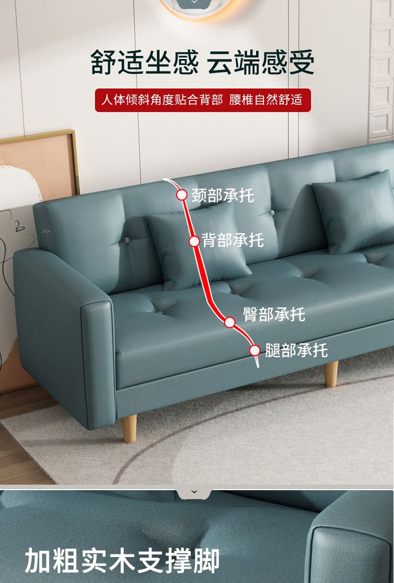 소형 소파 베드 임대 아파트 접이식 이중 용도 싱글 및 더블 일자형 소형 소파 2024 새로운 스타일