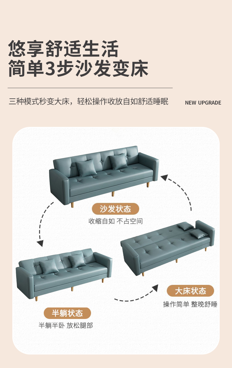 소형 소파 베드 임대 아파트 접이식 이중 용도 싱글 및 더블 일자형 소형 소파 2024 새로운 스타일스토어 가기