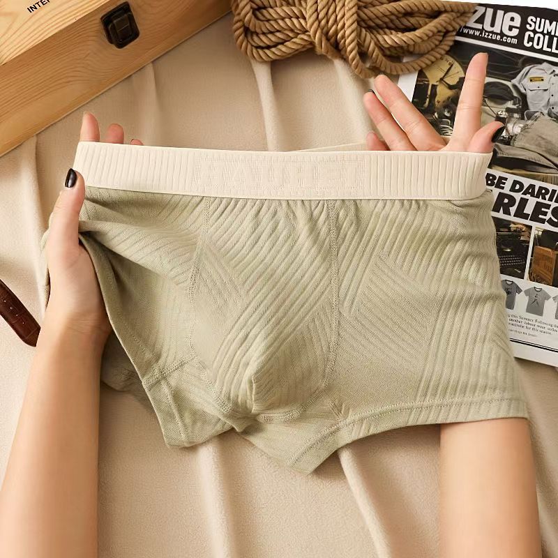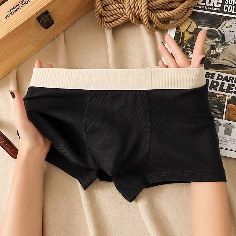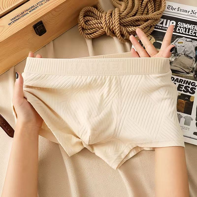새로운 단색 질감 봄과 여름 남성 속옷 느슨한 복서 팬티 통기성 면화 중간 허리 대형 복서 팬티 dropshipping