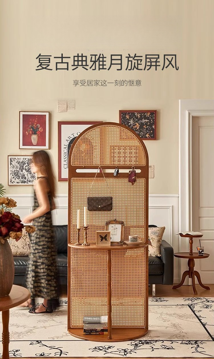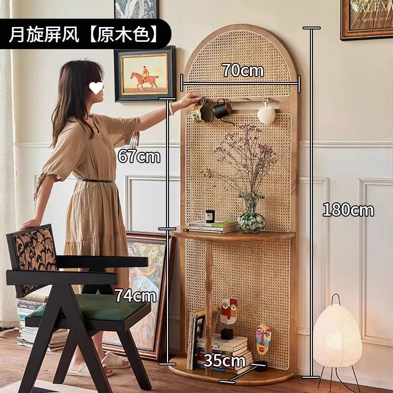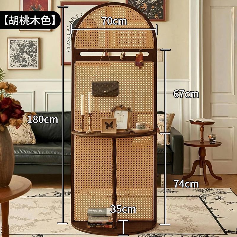 프랑스 복고풍 단단한 나무 등나무 스크린 거실 파티션 입구 문 차단 입구 파티션 코트 랙