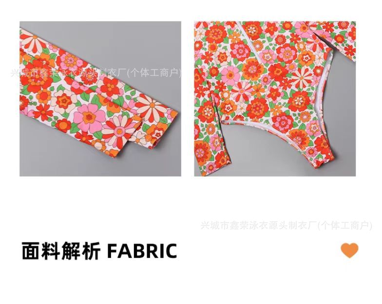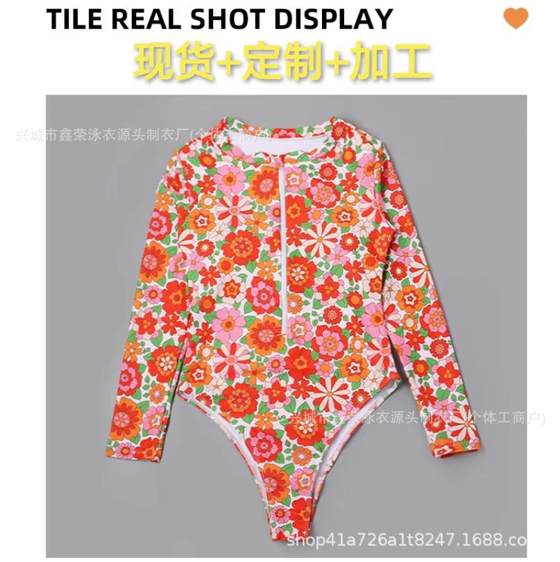 2025 유럽과 미국의 새로운 원피스 수영복 긴 소매 지퍼 꽃 아마존 섹시한 삼각형 보수적 인 수영복 여성스토어 가기