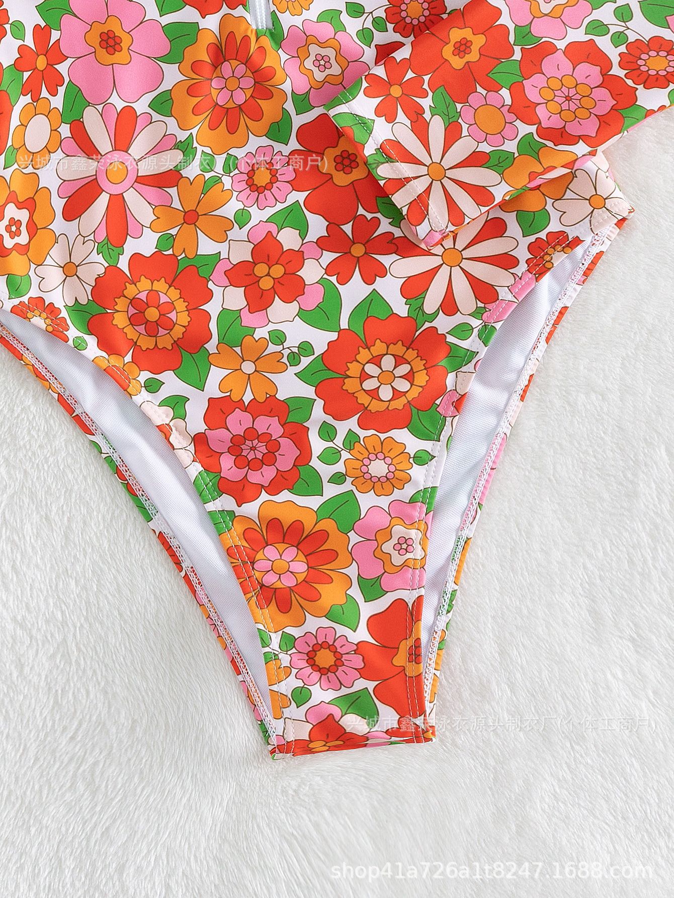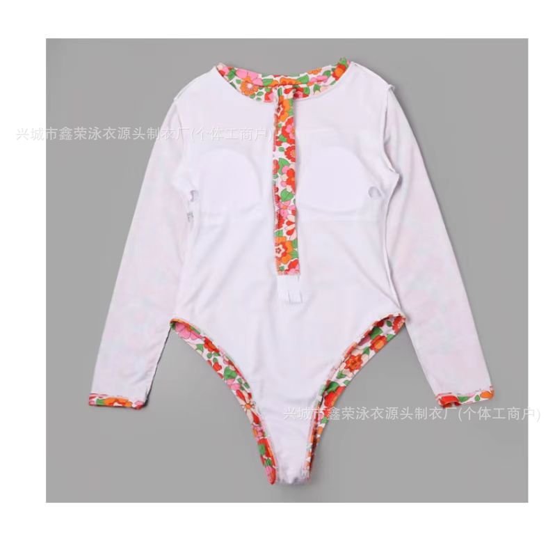 2025 유럽과 미국의 새로운 원피스 수영복 긴 소매 지퍼 꽃 아마존 섹시한 삼각형 보수적 인 수영복 여성