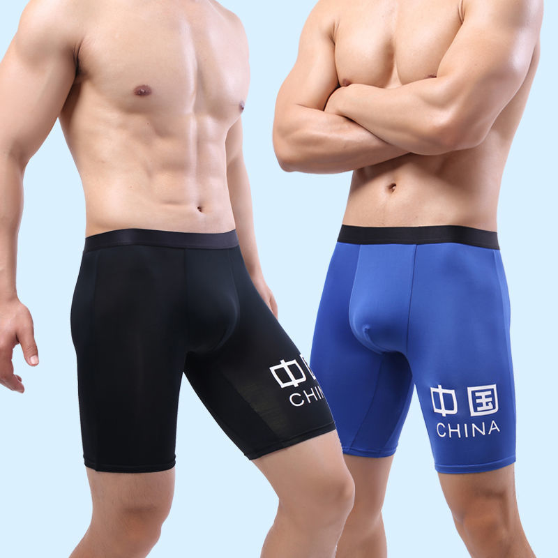 남성용 엑스트라 롱 복서 팬티, 아이스 실크, 속건성, 통기성, 피트니스, 스포츠, 마모 방지, 쿨, 슬림핏, 대형 복서 팬티