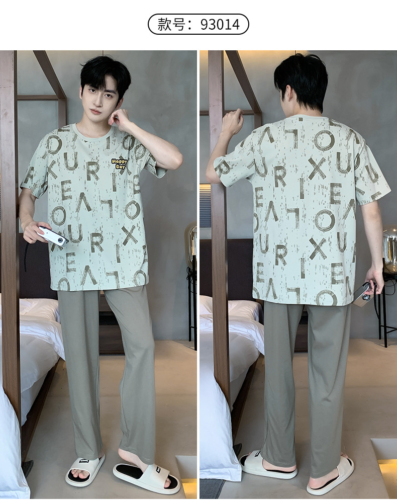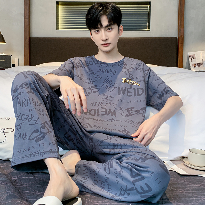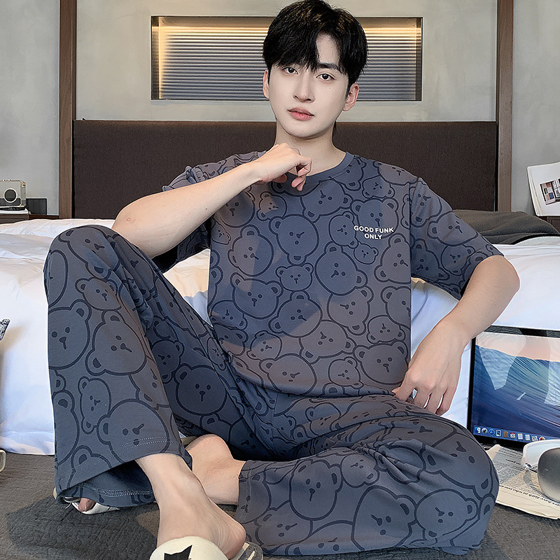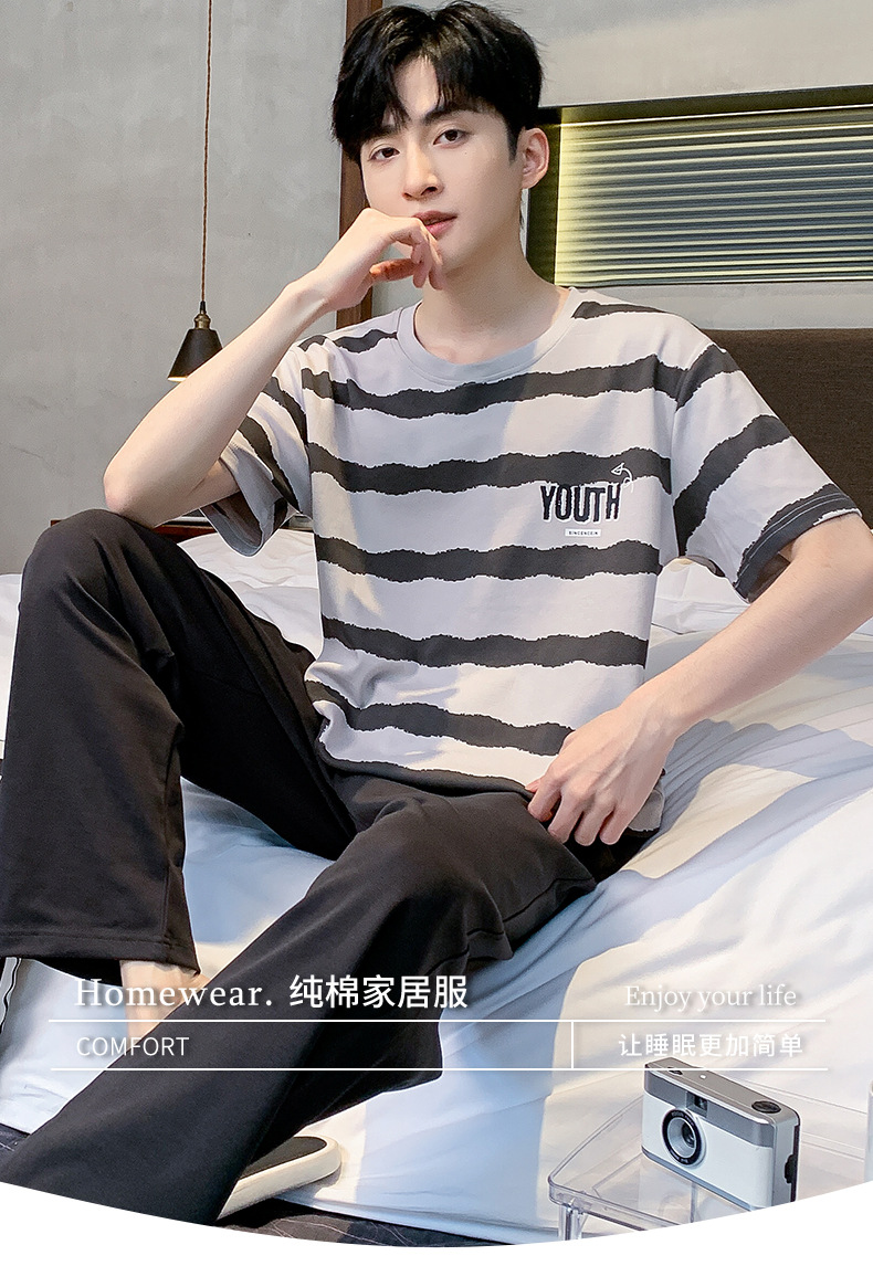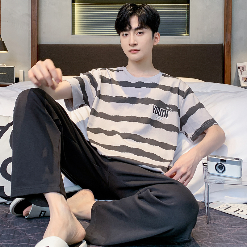 반팔 바지 순면 잠옷 남성용 한국식 루즈 캐주얼 심플 여름 얇은 중년 및 젊은층 홈웨어 세트