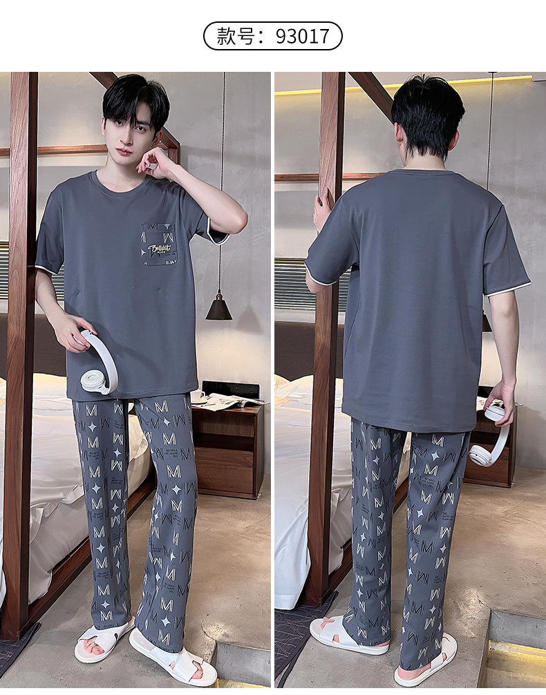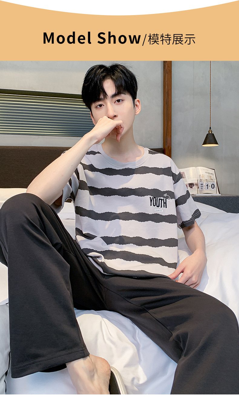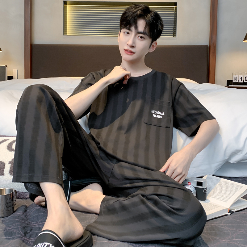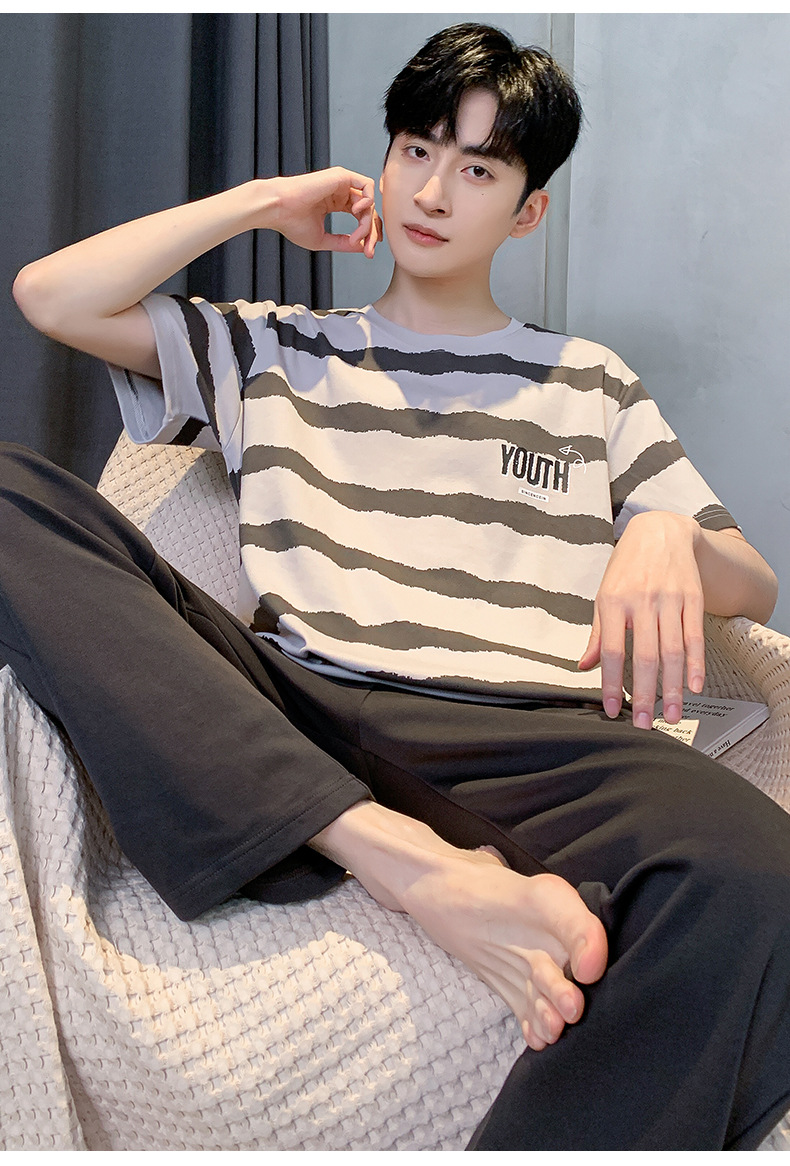 반팔 바지 순면 잠옷 남성용 한국식 루즈 캐주얼 심플 여름 얇은 중년 및 젊은층 홈웨어 세트