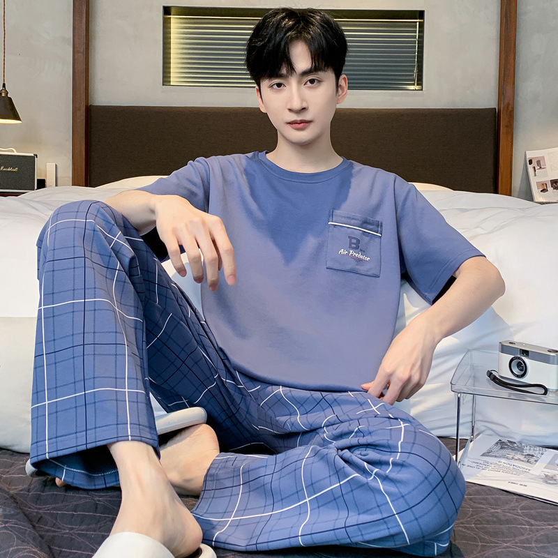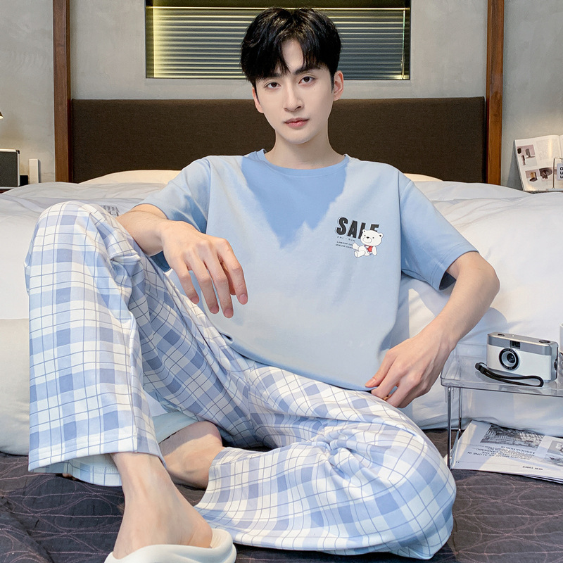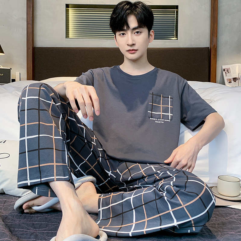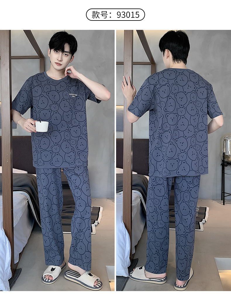 반팔 바지 순면 잠옷 남성용 한국식 루즈 캐주얼 심플 여름 얇은 중년 및 젊은층 홈웨어 세트스토어 가기