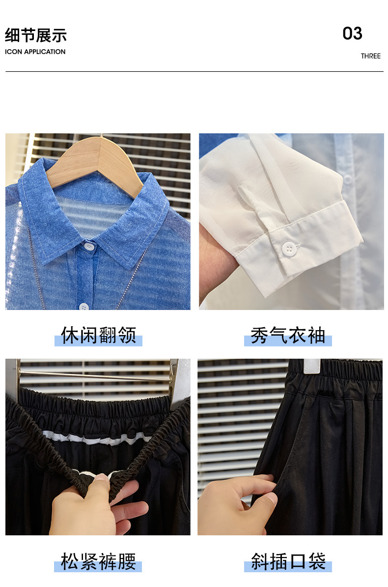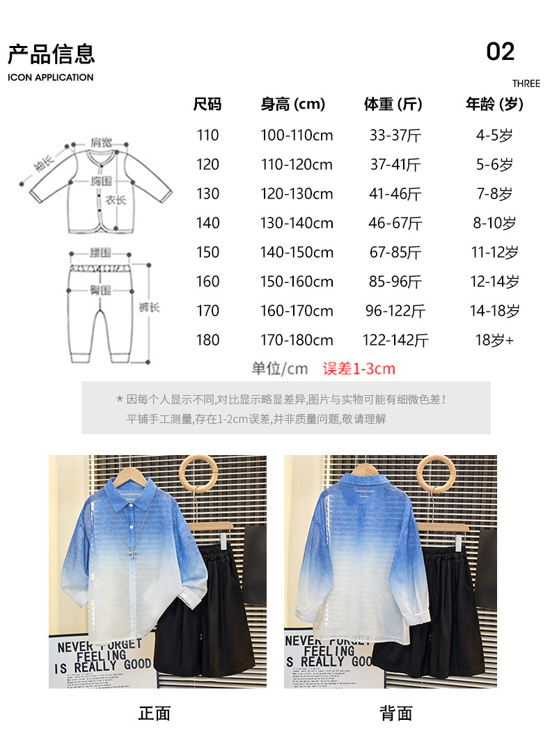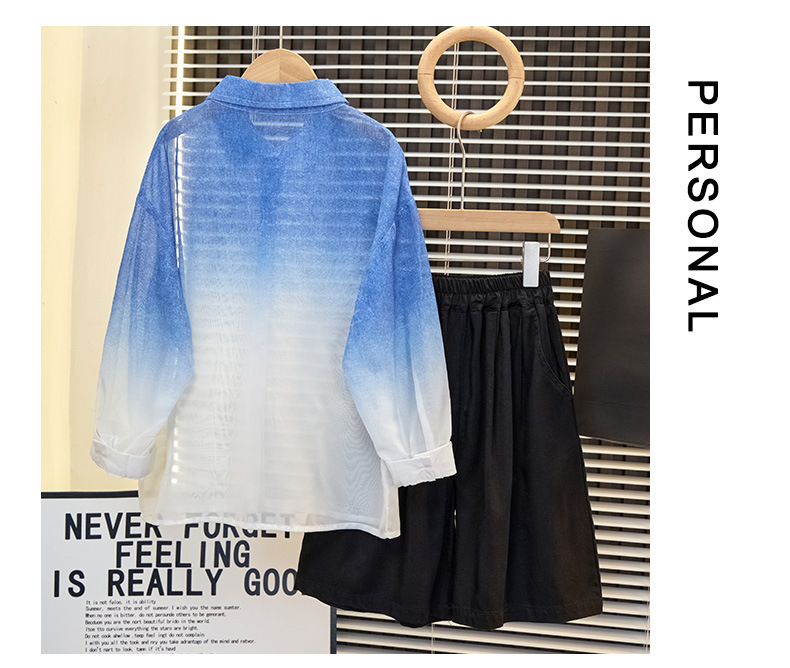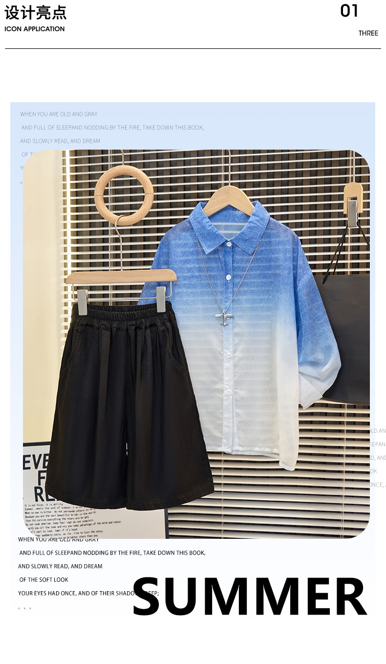 소년 그라디언트 셔츠 정장 2025 여름 새로운 스타일 중대형 어린이 느슨한 패션 파란색과 흰색 도자기 셔츠 캐주얼 반바지스토어 가기