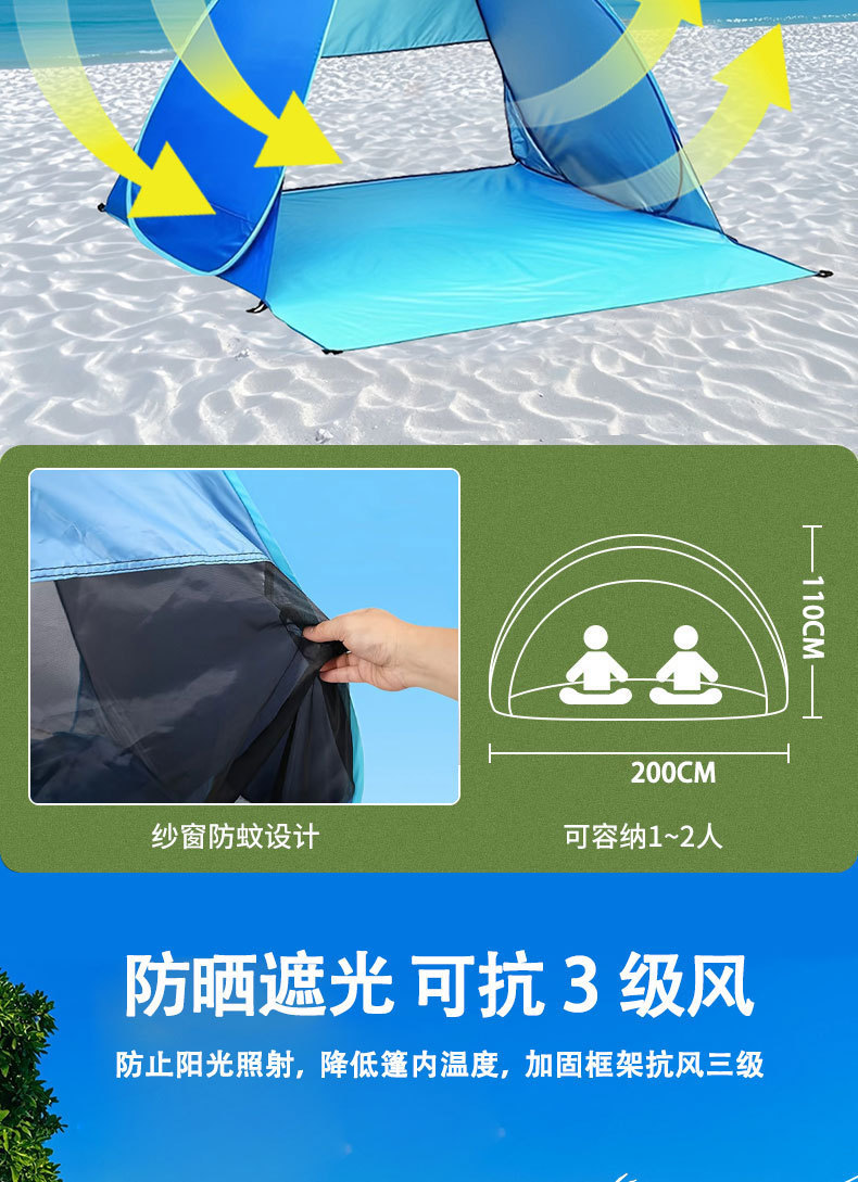 사용자 정의 완전 자동 빠른 오픈 비치 텐트 양산 접이식 캠핑 텐트 야외 텐트 휴대용 태양 보호 텐트