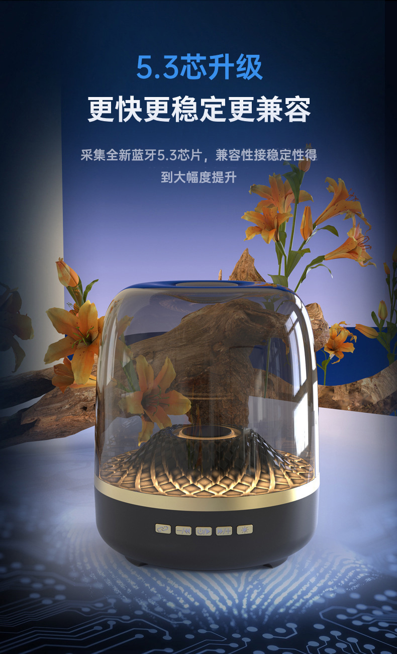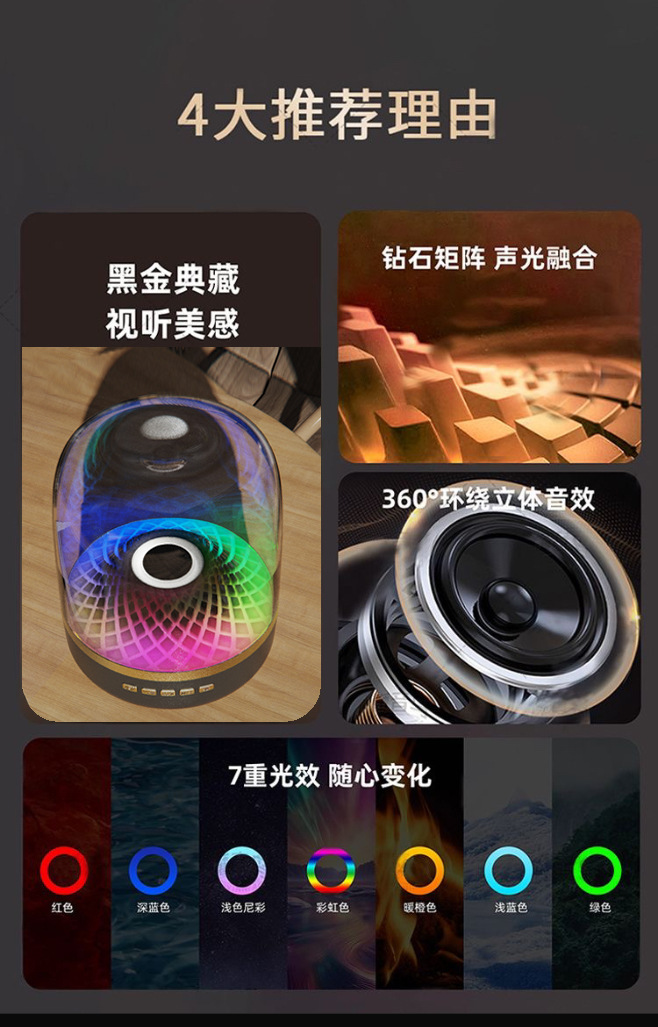 전자상거래 신제품 하만 글라스 무선 블루투스 스피커 가정용 카드 삽입형 데스크탑 RGB 중저음 스피커 다기능