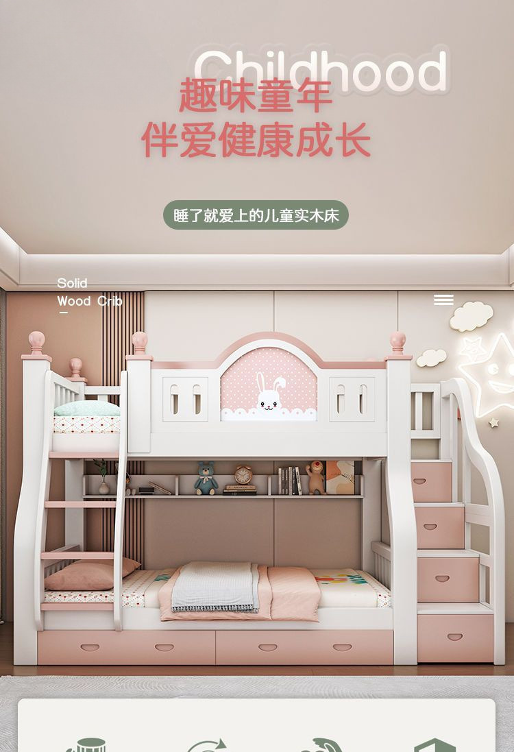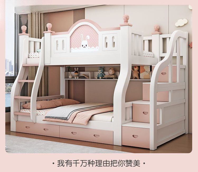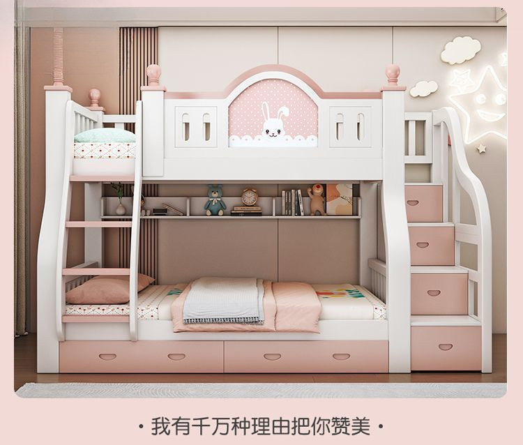 럭셔리 공주 이층 침대 침실 어린이 침대 두꺼운 단단한 이층 침대 이층 침대 2층 높낮이 침대스토어 가기