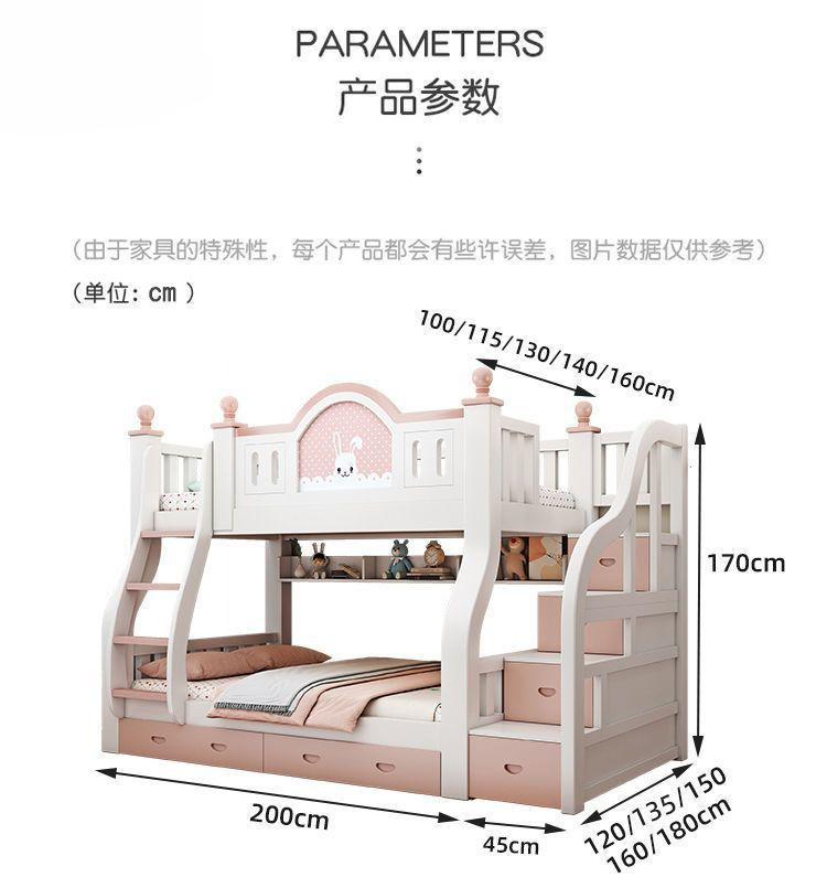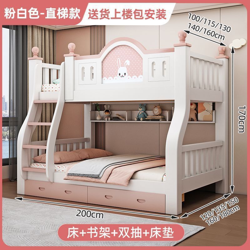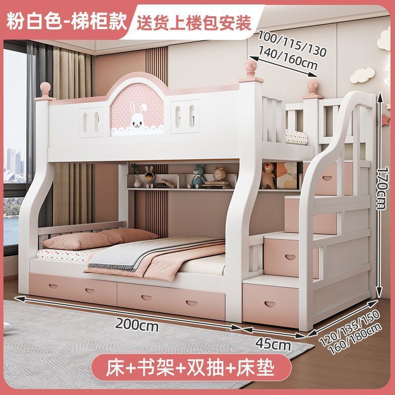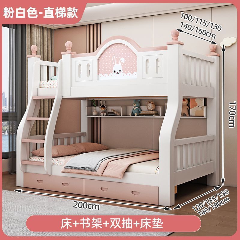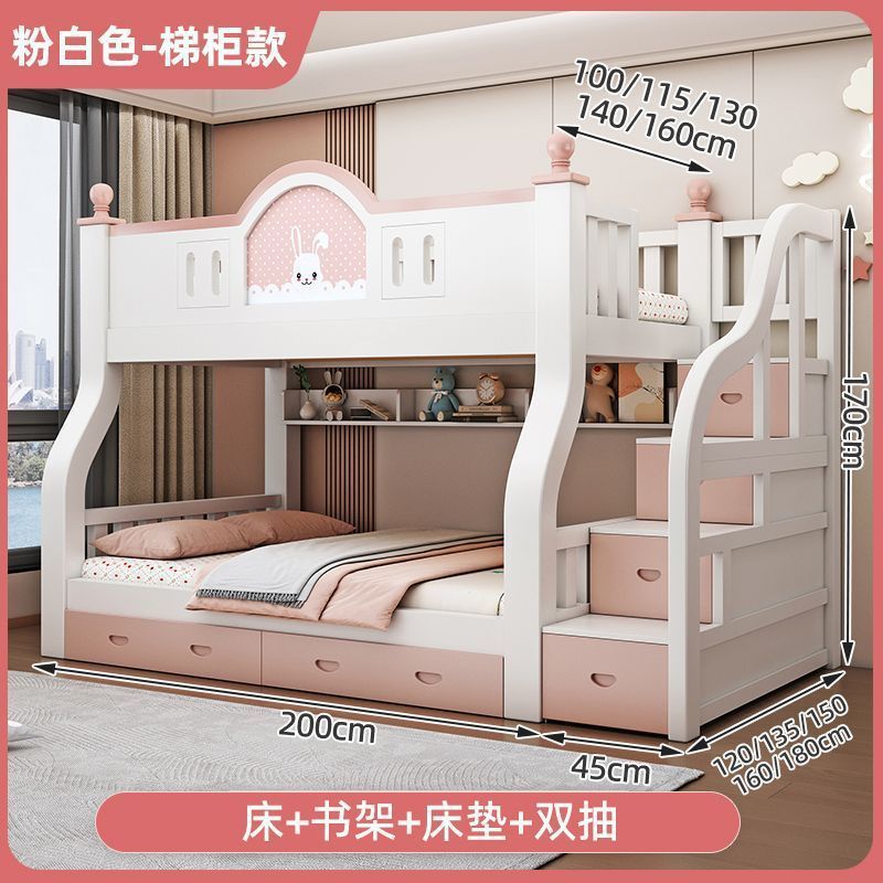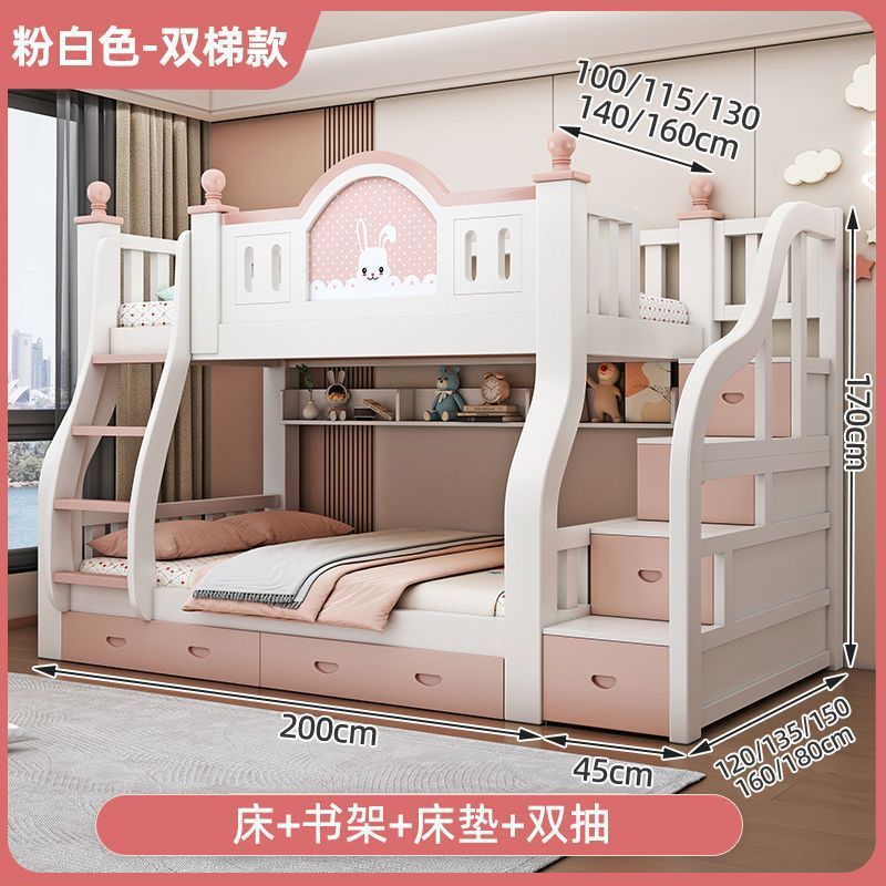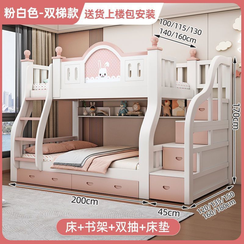 럭셔리 공주 이층 침대 침실 어린이 침대 두꺼운 단단한 이층 침대 이층 침대 2층 높낮이 침대