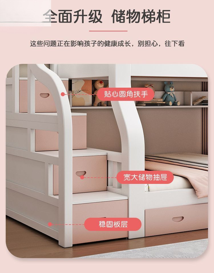 • [핑크색과 흰색 침대 프레임] 사다리 캐비닛 + 책장 + 더블 서랍 + 쿠션