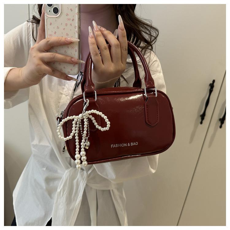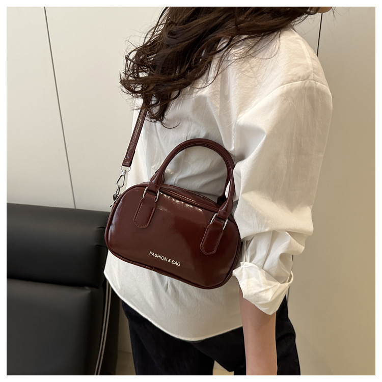 2025 솔리드 컬러 여성 대용량 캐주얼 여름 새로운 질감 복고풍 오일 왁스 가죽 휴대용 크로스 바디 베개 가방스토어 가기