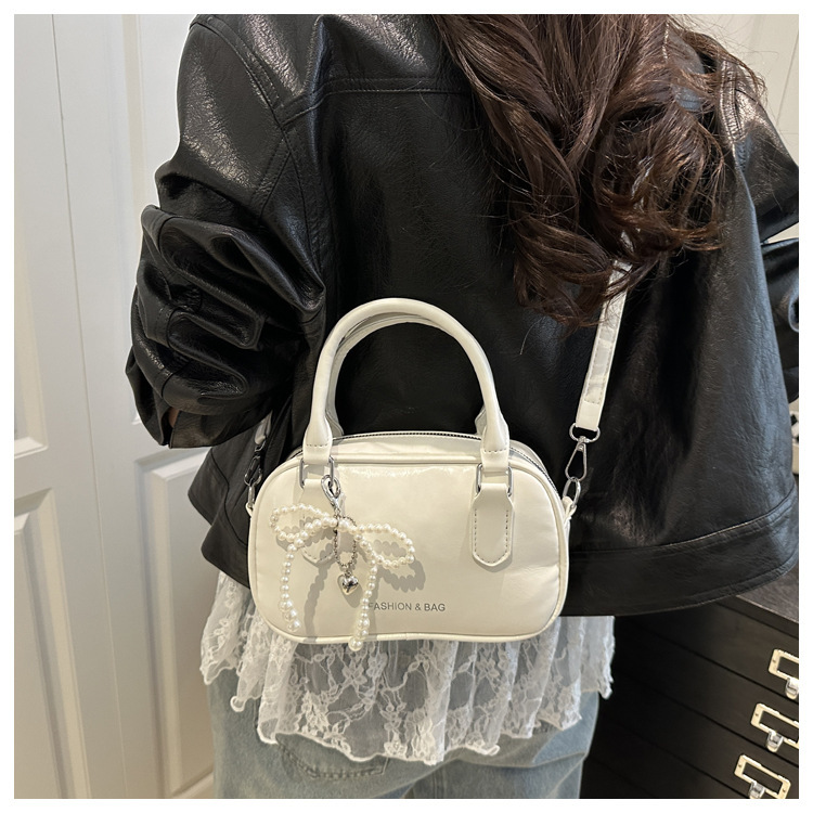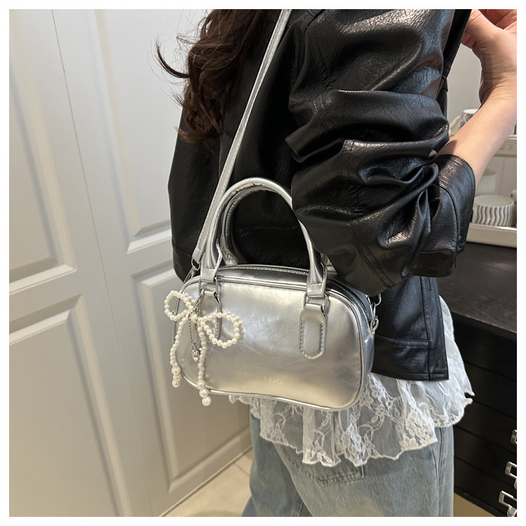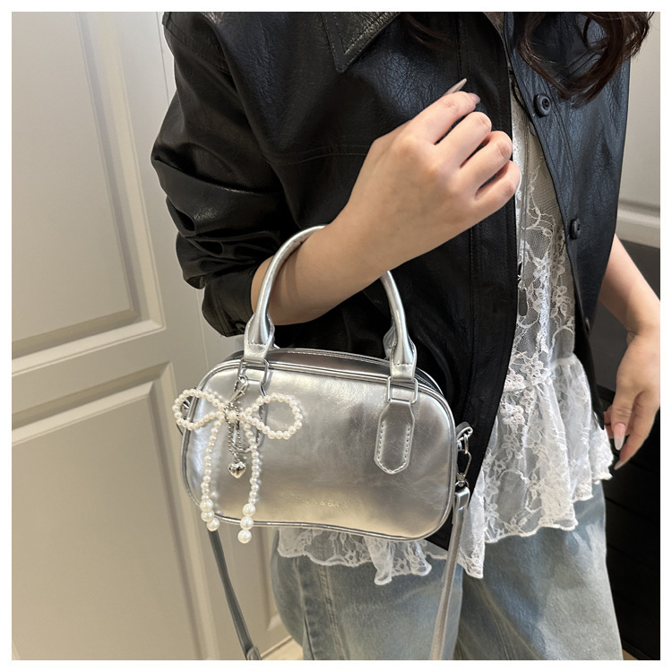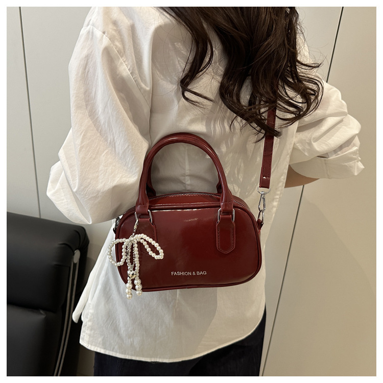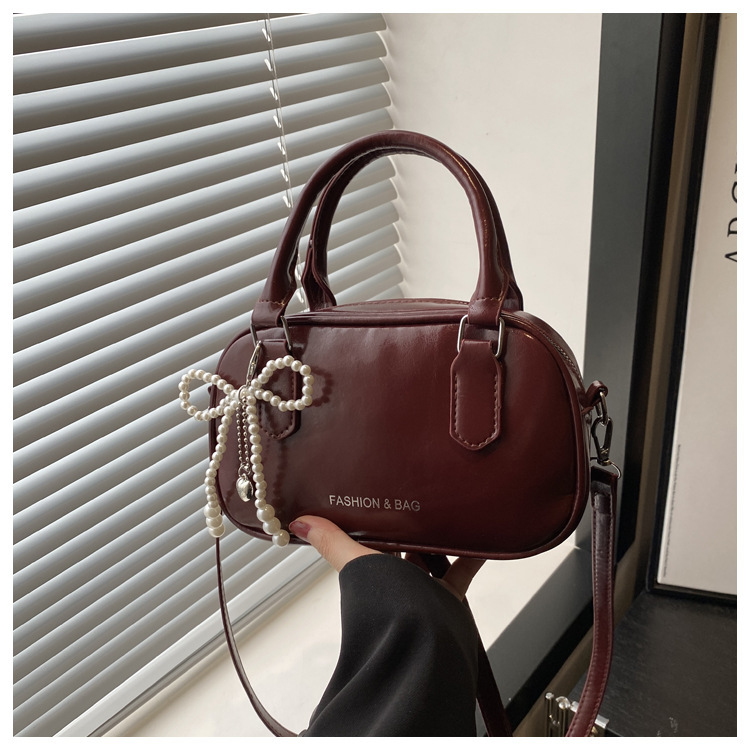2025 솔리드 컬러 여성 대용량 캐주얼 여름 새로운 질감 복고풍 오일 왁스 가죽 휴대용 크로스 바디 베개 가방