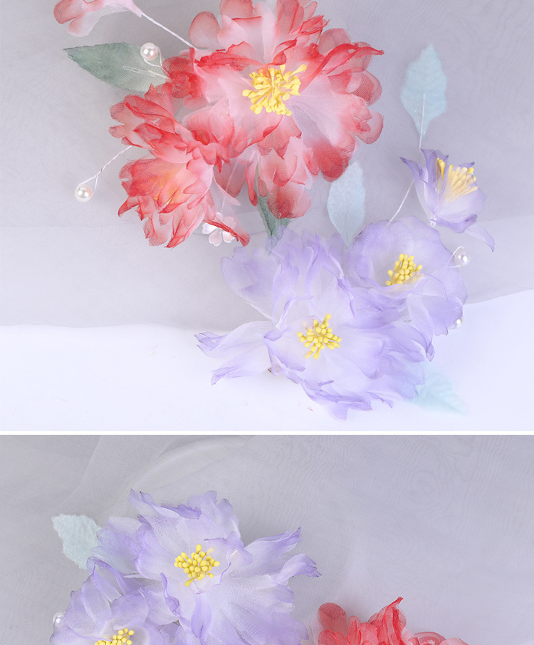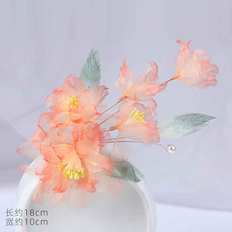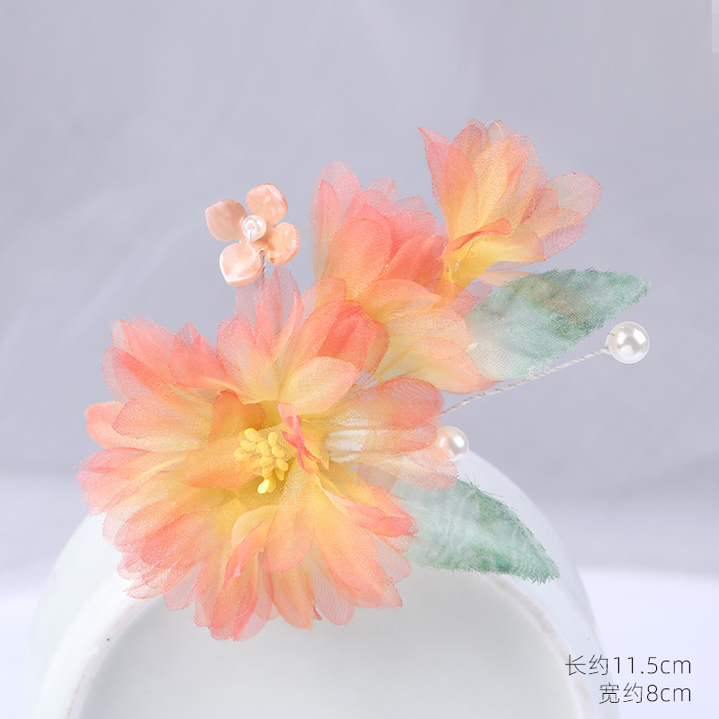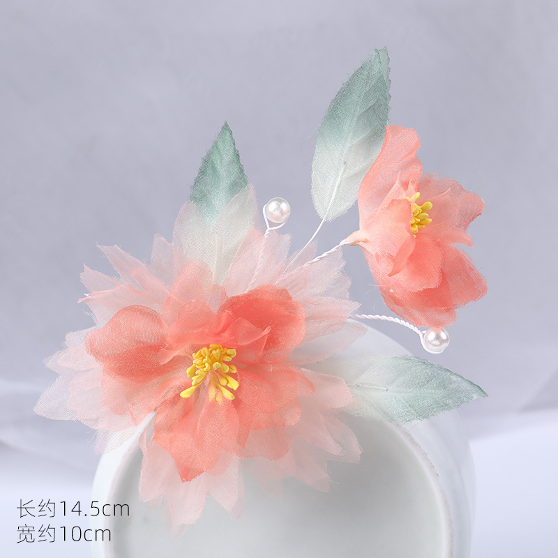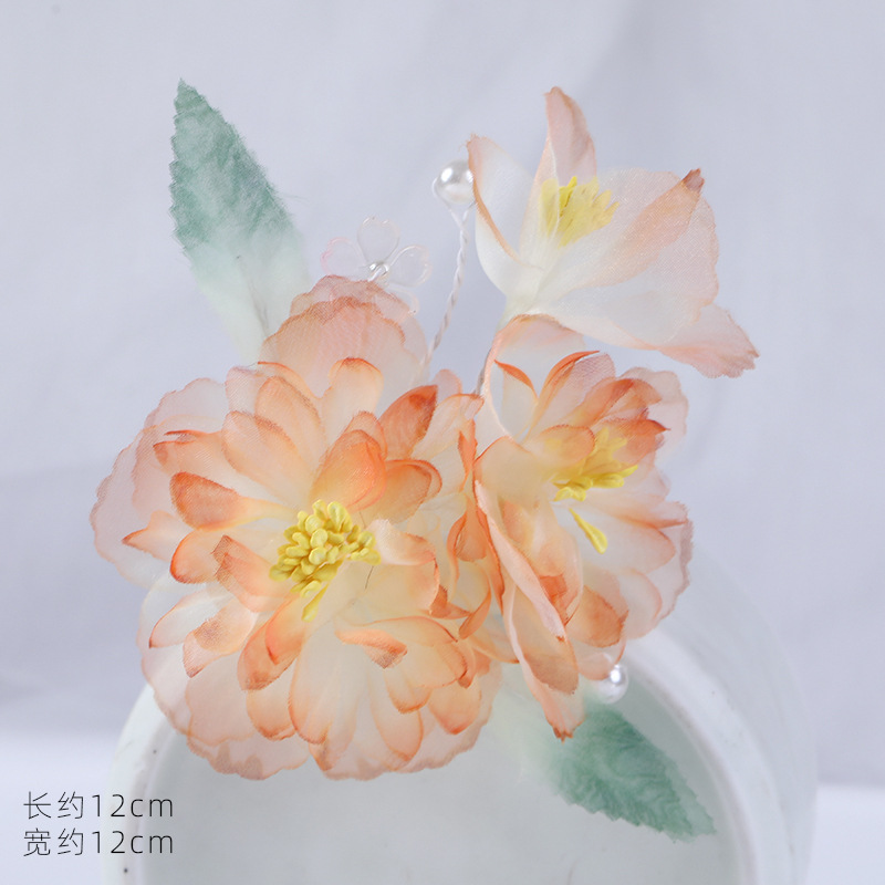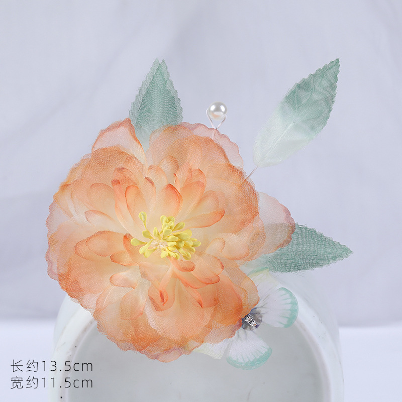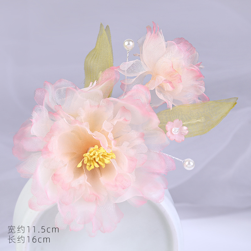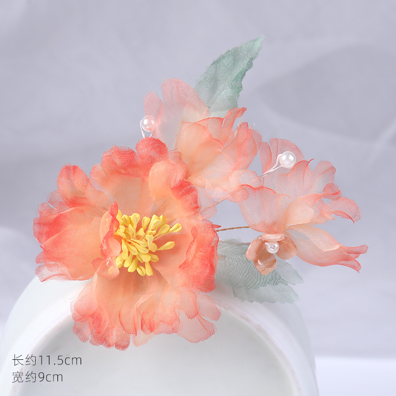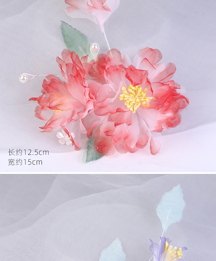 핫플라워 헤어 액세서리, 그라데이션 실크 플라워 티아라, 한복 액세서리, 꽃 중국풍 치파오 머리핀, 앤티크 스타일 헤어 플라워 백 프레스 클립
