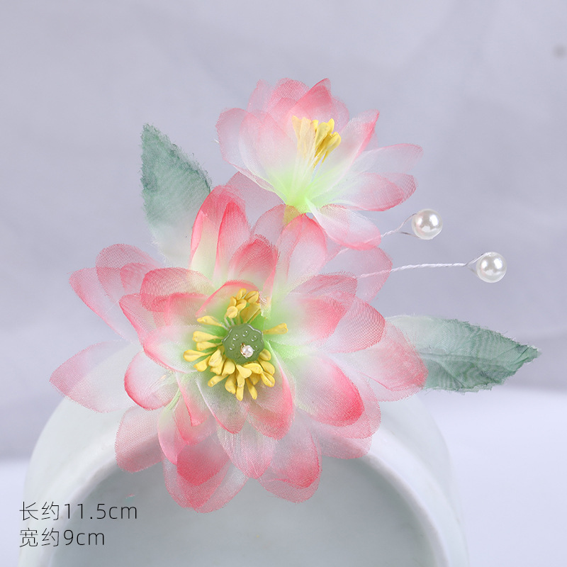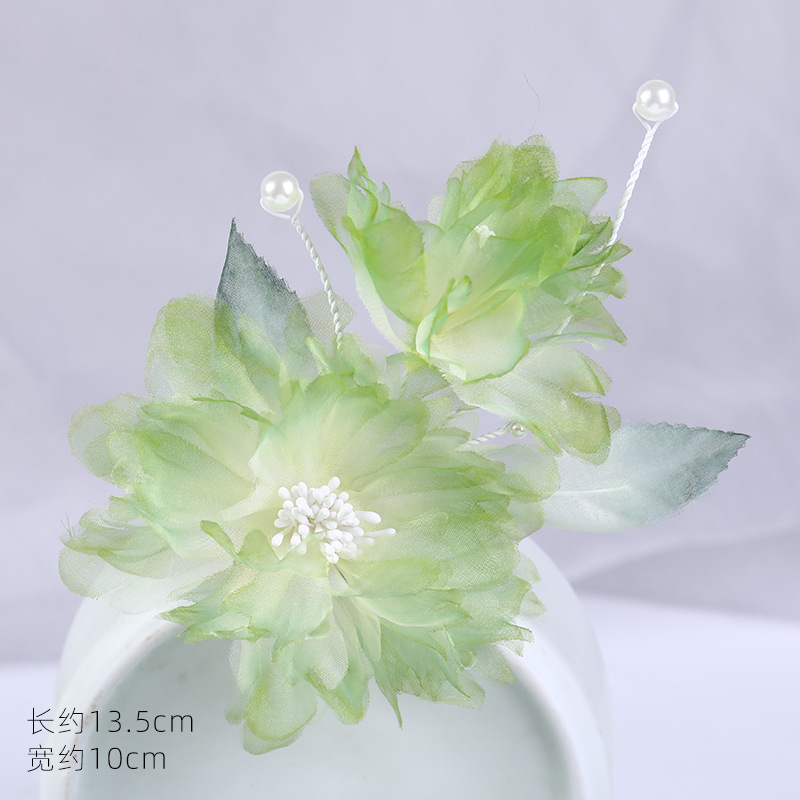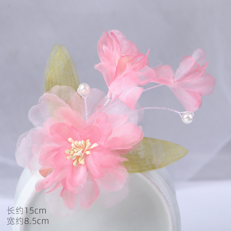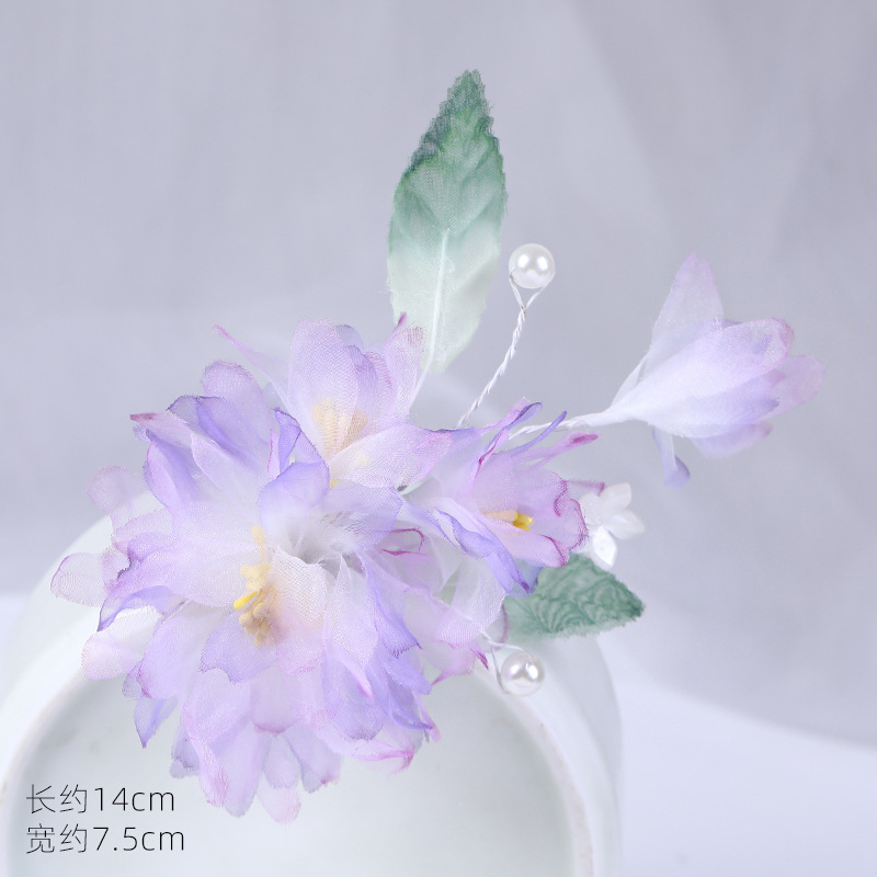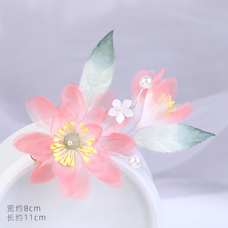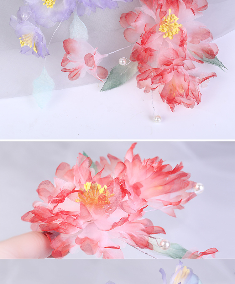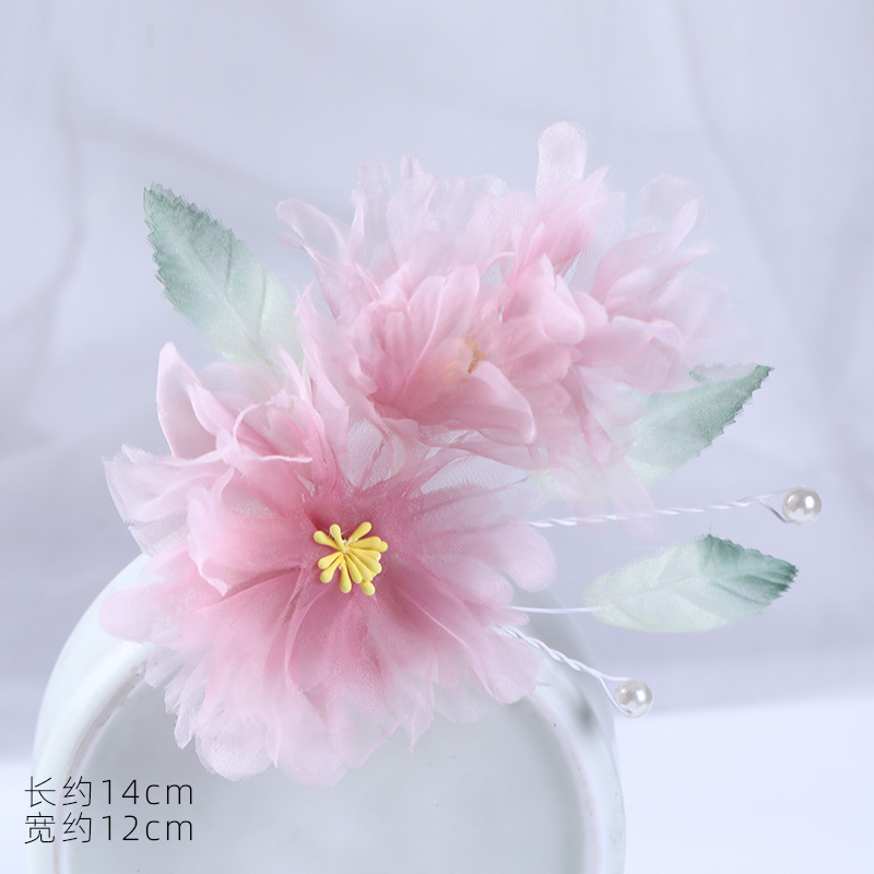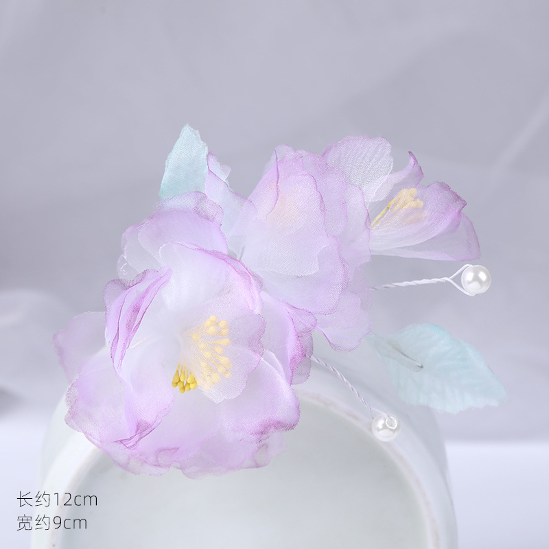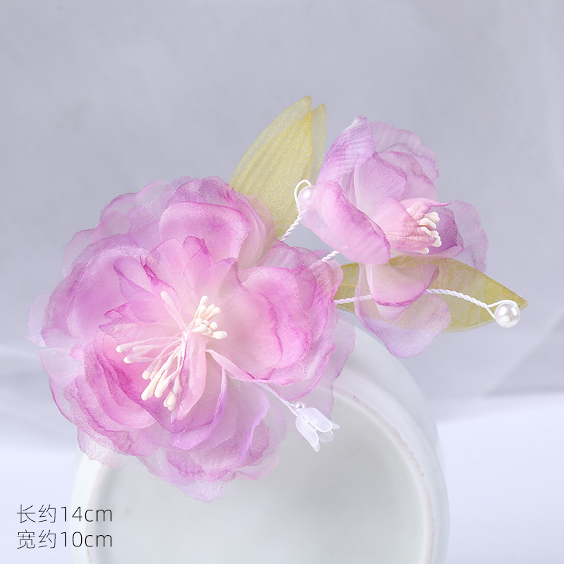 핫플라워 헤어 액세서리, 그라데이션 실크 플라워 티아라, 한복 액세서리, 꽃 중국풍 치파오 머리핀, 앤티크 스타일 헤어 플라워 백 프레스 클립