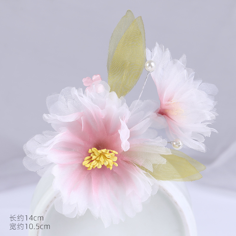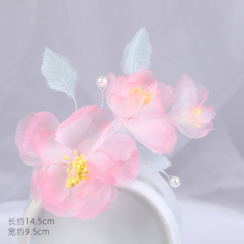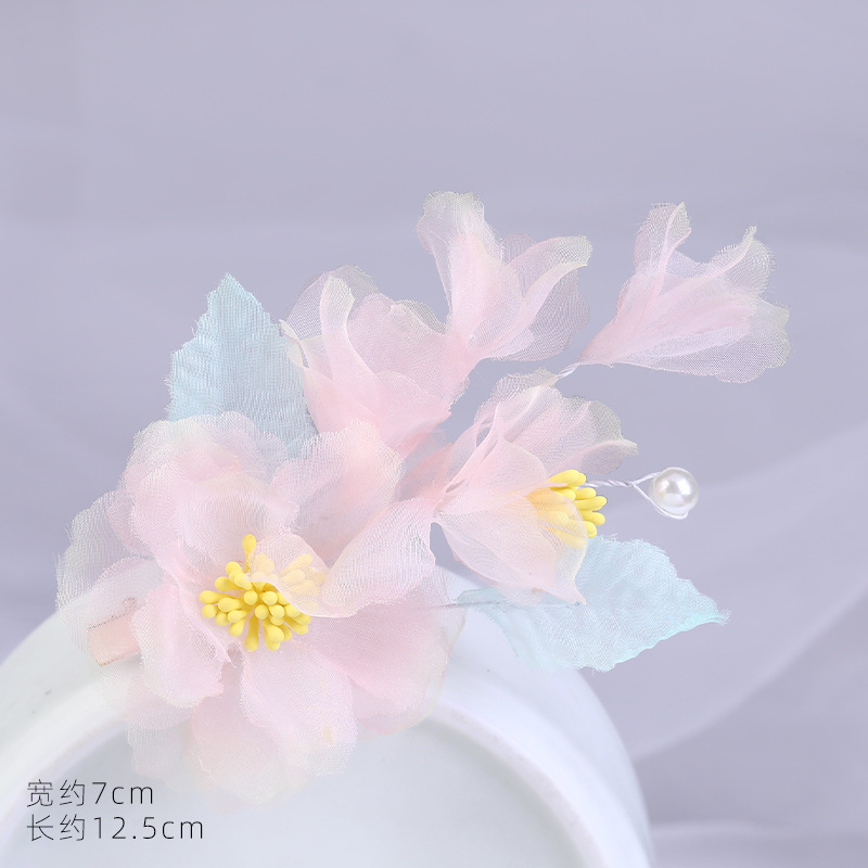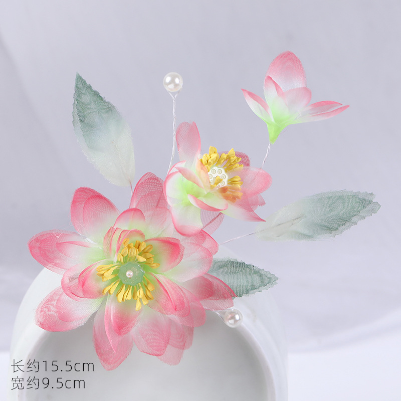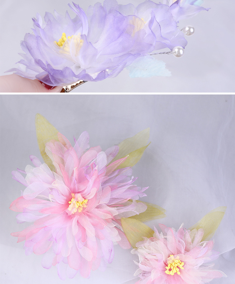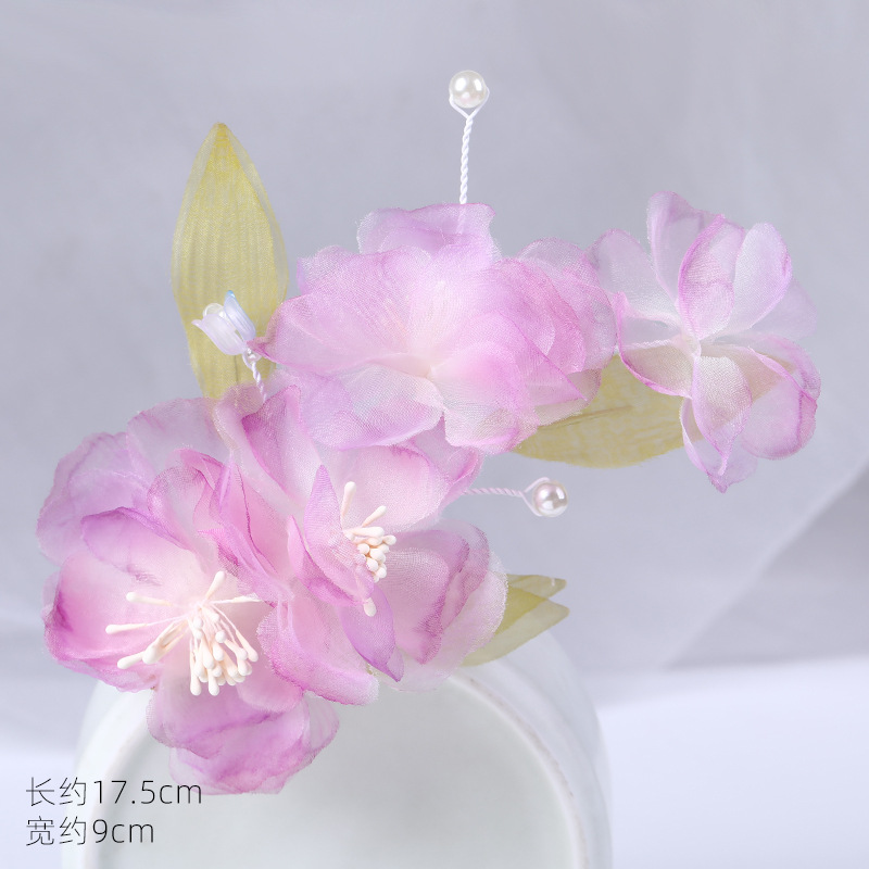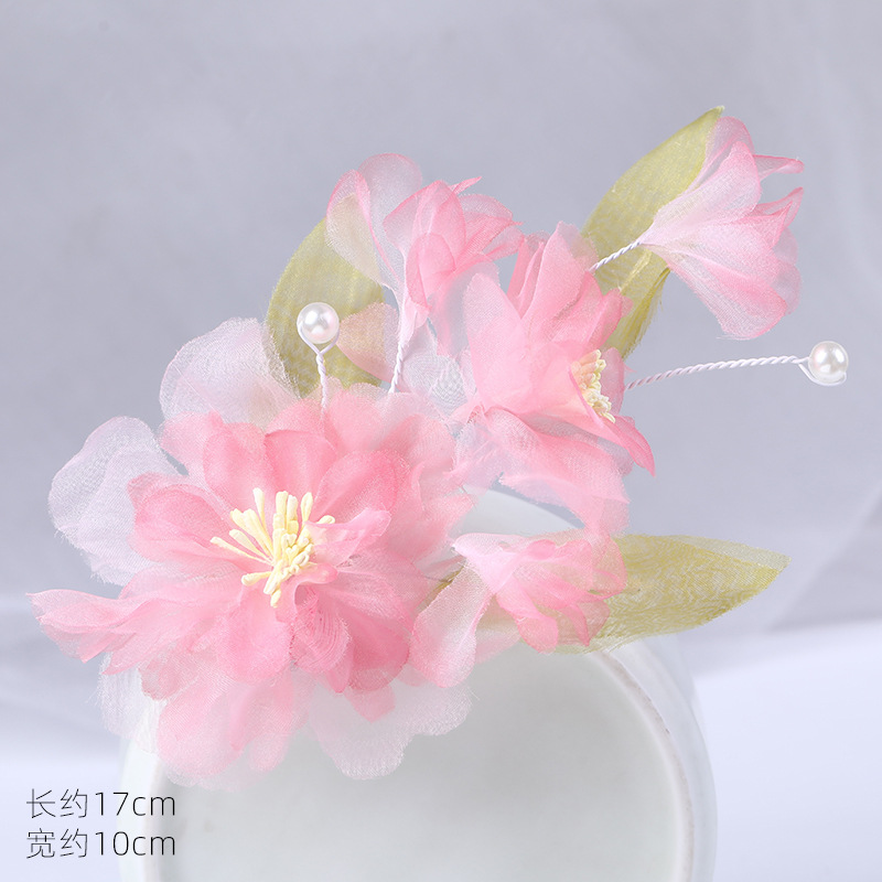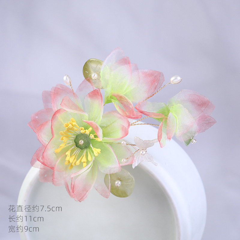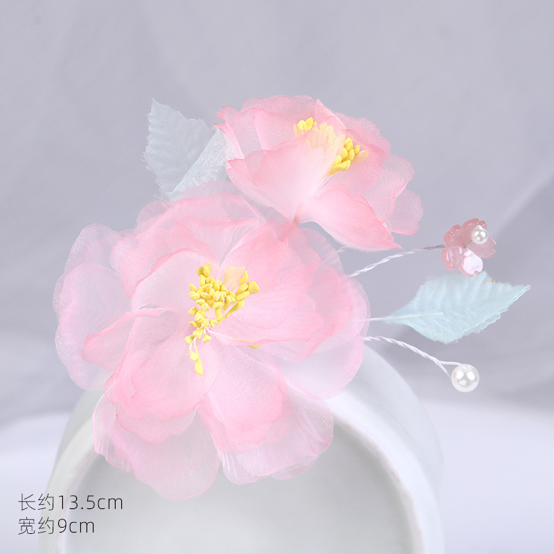 핫플라워 헤어 액세서리, 그라데이션 실크 플라워 티아라, 한복 액세서리, 꽃 중국풍 치파오 머리핀, 앤티크 스타일 헤어 플라워 백 프레스 클립