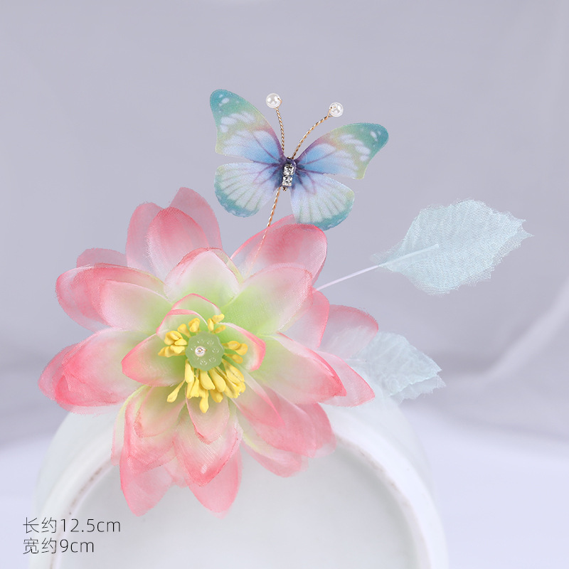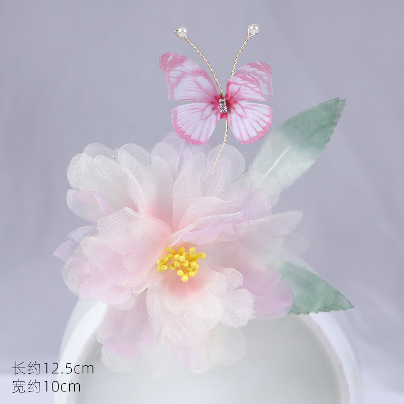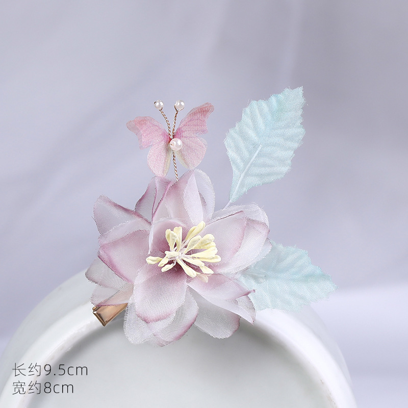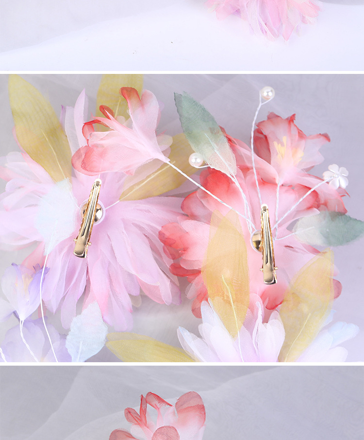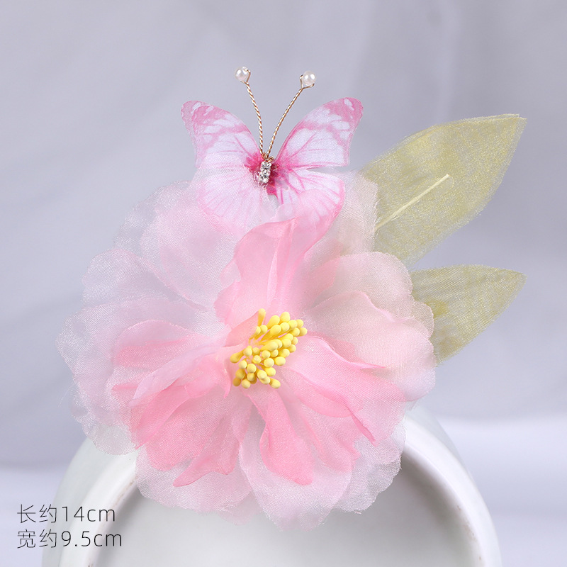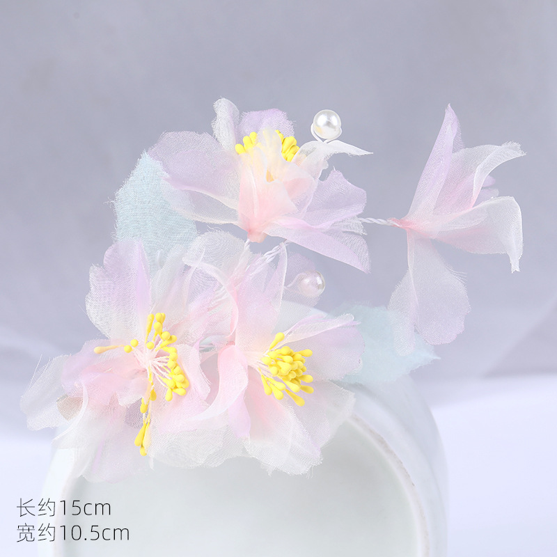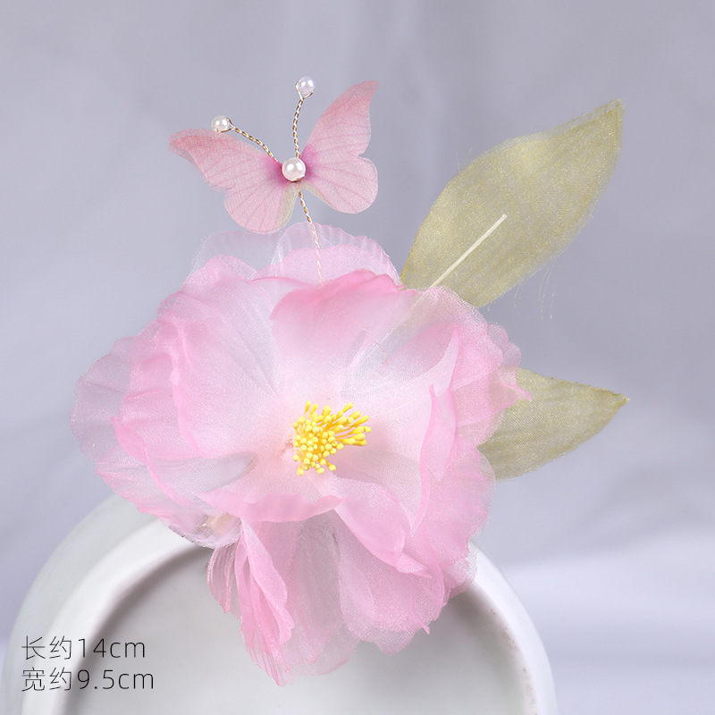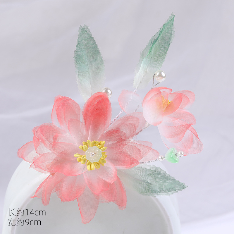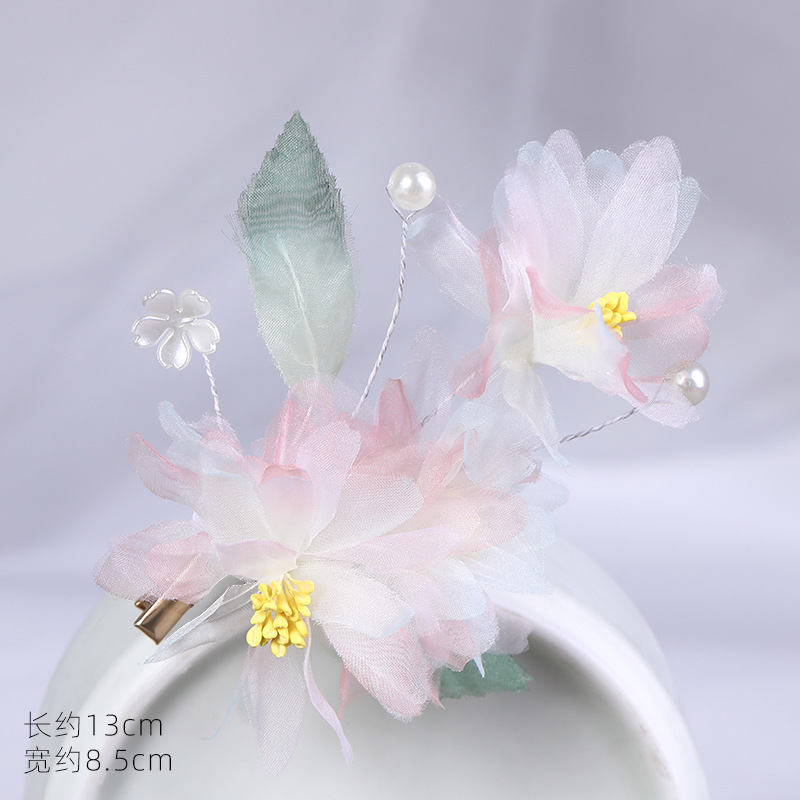 핫플라워 헤어 액세서리, 그라데이션 실크 플라워 티아라, 한복 액세서리, 꽃 중국풍 치파오 머리핀, 앤티크 스타일 헤어 플라워 백 프레스 클립