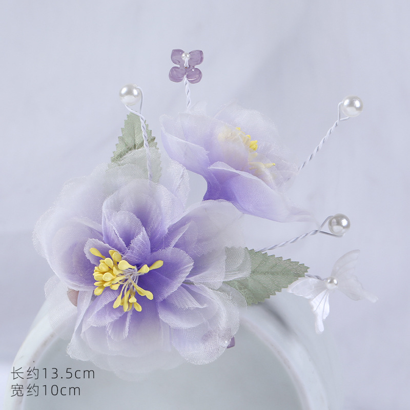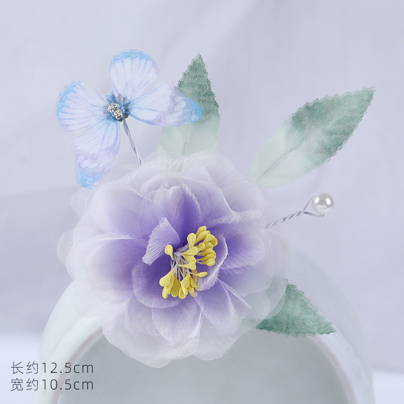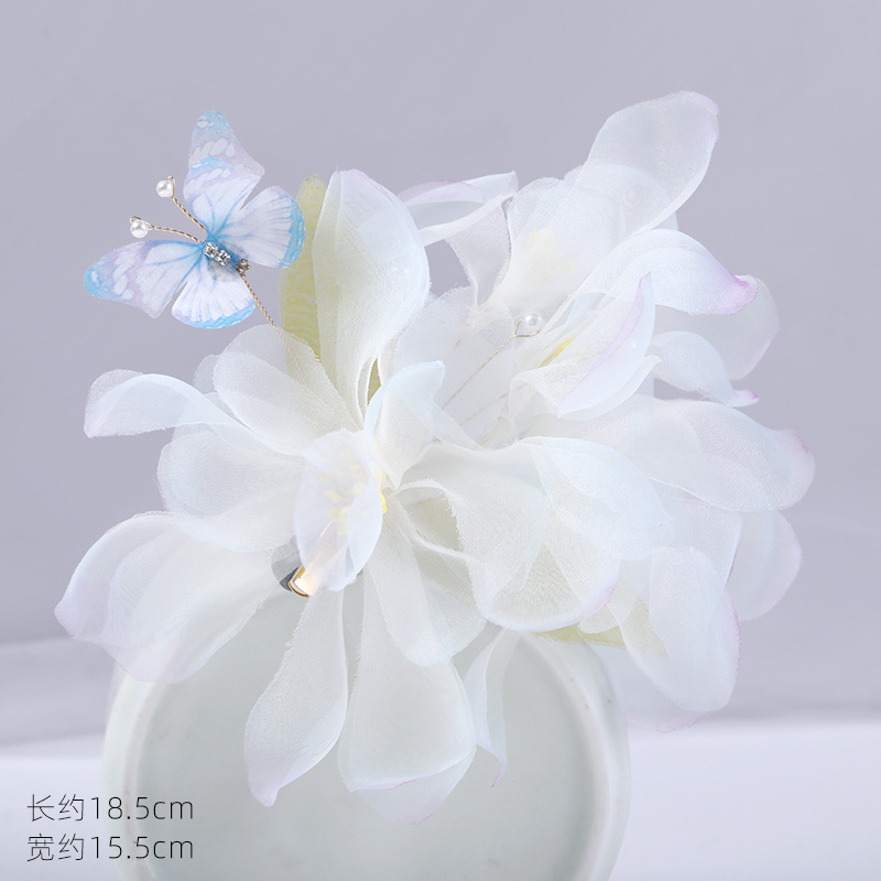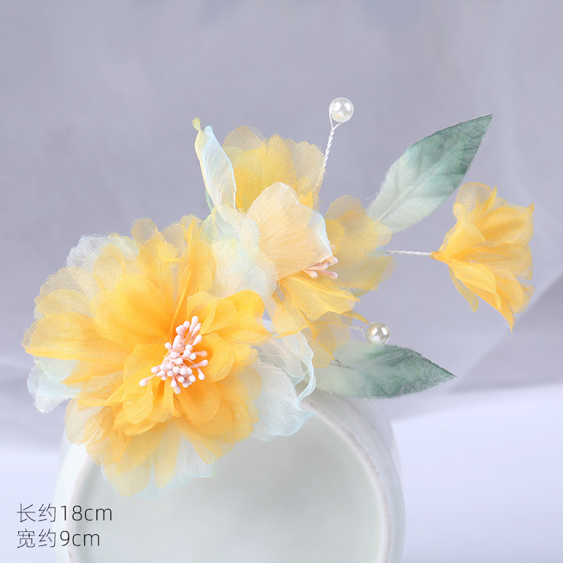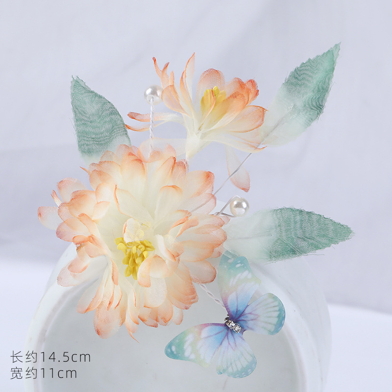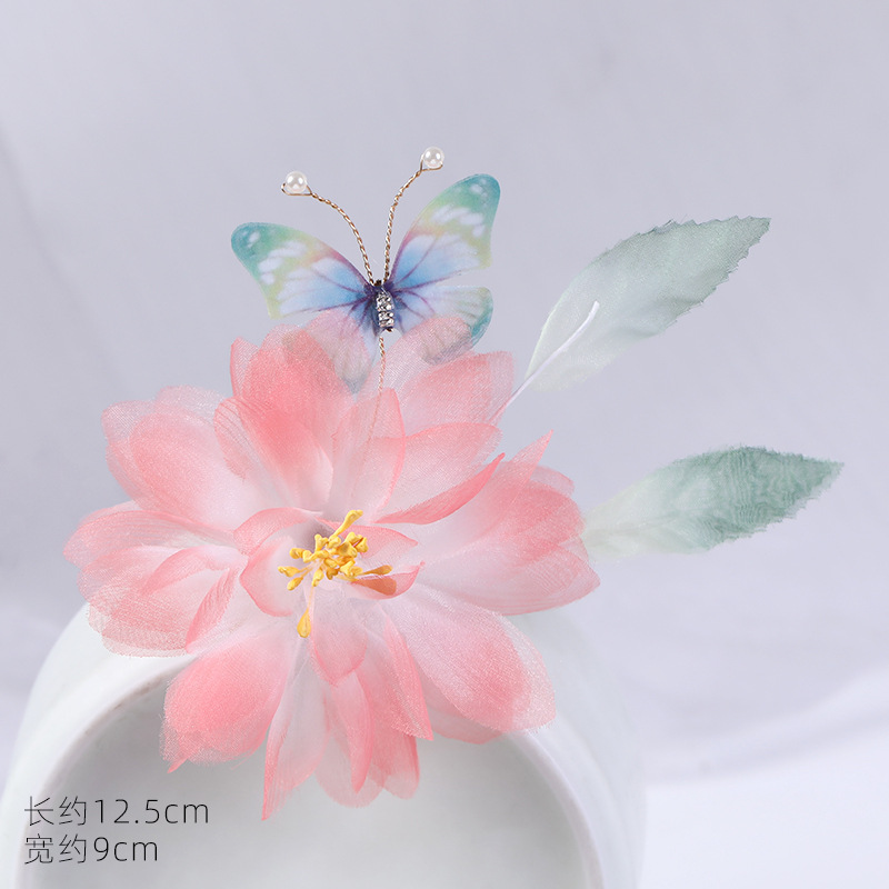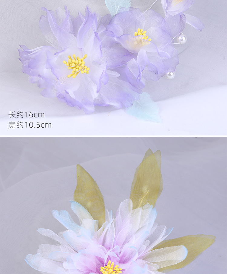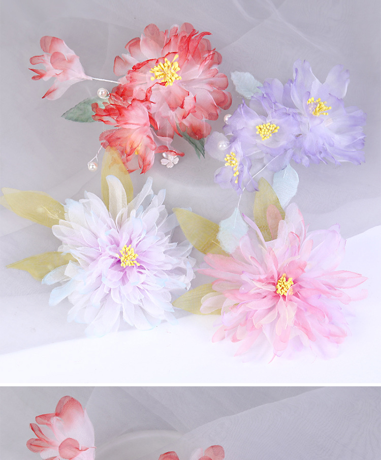 핫플라워 헤어 액세서리, 그라데이션 실크 플라워 티아라, 한복 액세서리, 꽃 중국풍 치파오 머리핀, 앤티크 스타일 헤어 플라워 백 프레스 클립스토어 가기