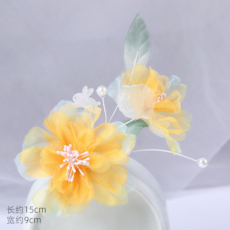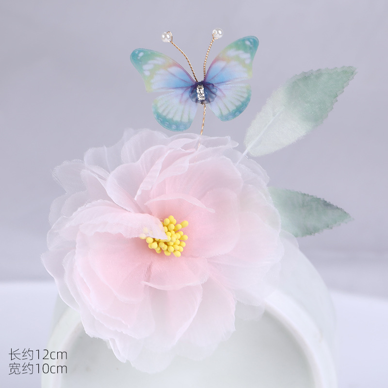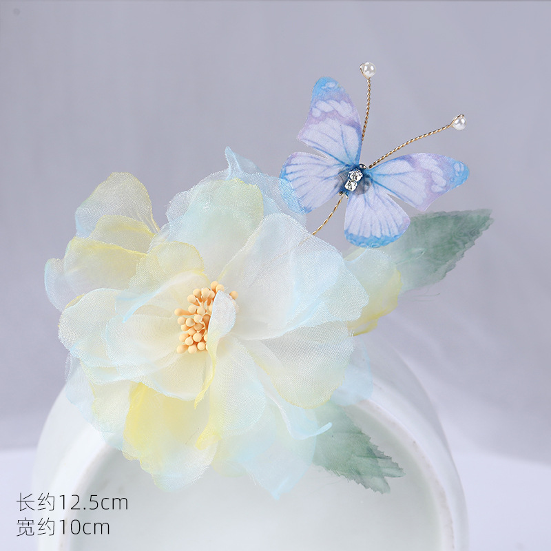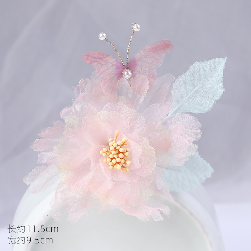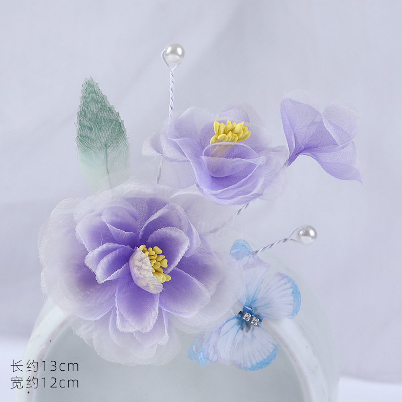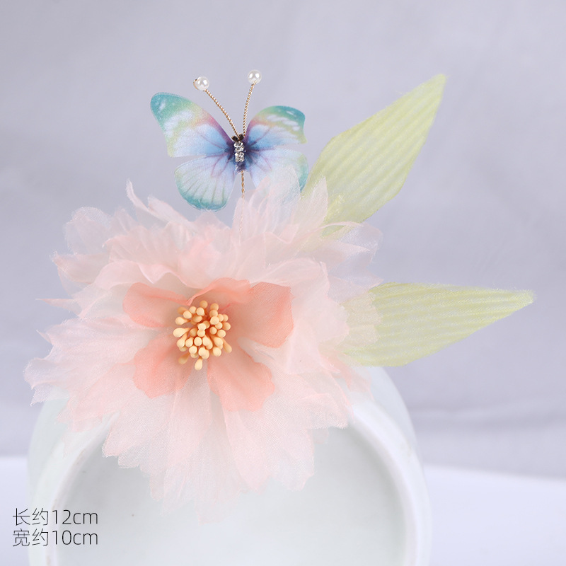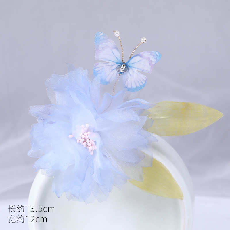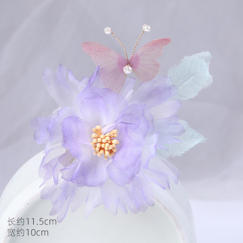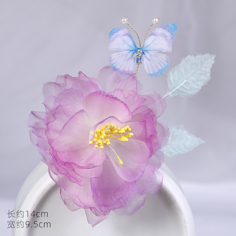 핫플라워 헤어 액세서리, 그라데이션 실크 플라워 티아라, 한복 액세서리, 꽃 중국풍 치파오 머리핀, 앤티크 스타일 헤어 플라워 백 프레스 클립스토어 가기
