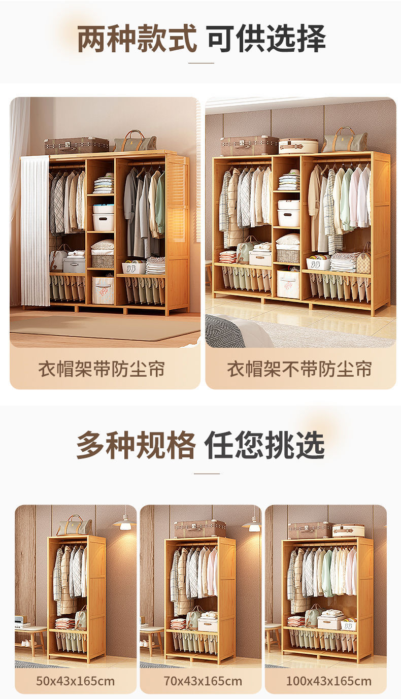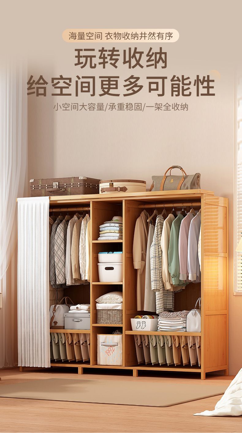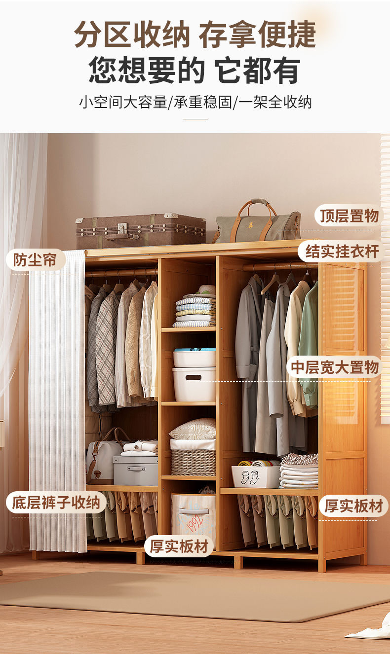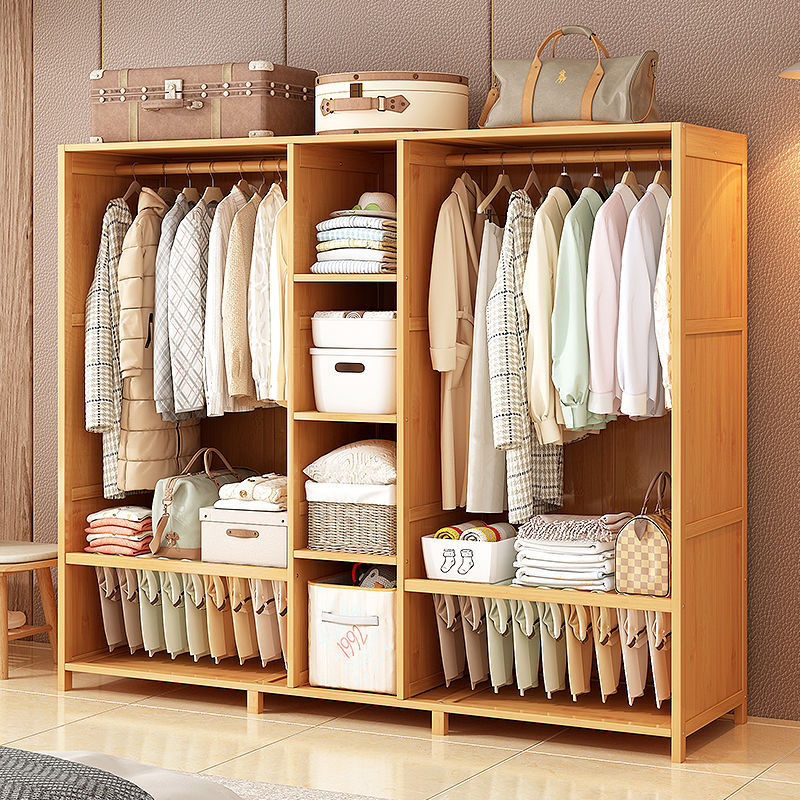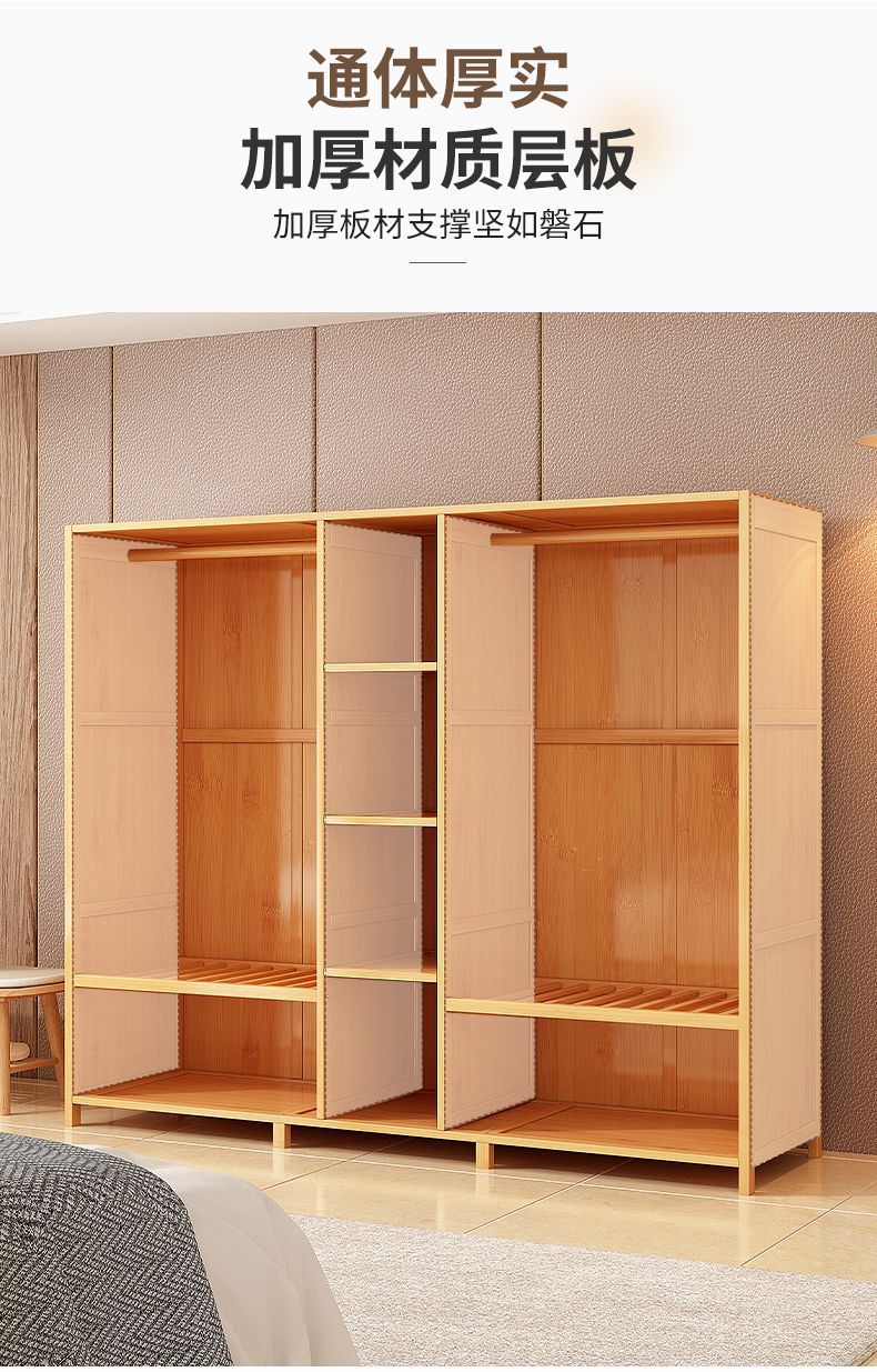 옷장 홈 침실 튼튼하고 내구성이 뛰어난 간단한 대형 옷장 방진 보관 대용량 바닥에서 천장까지 이어지는 다층 대나무 캐비닛