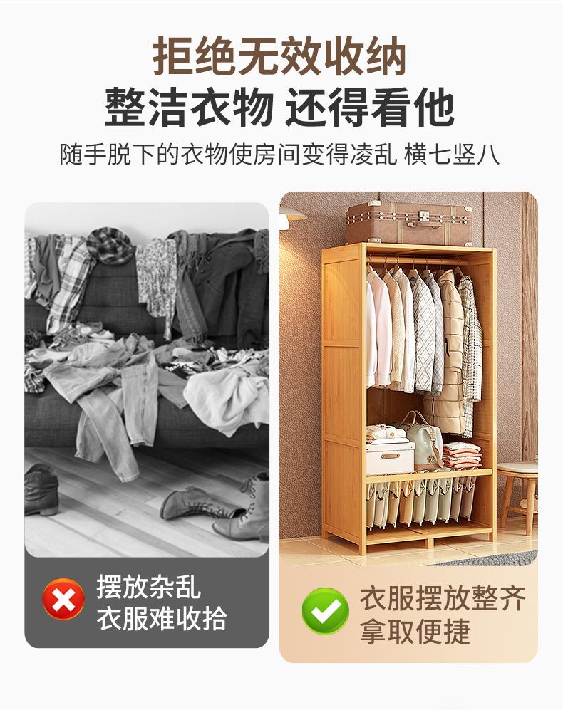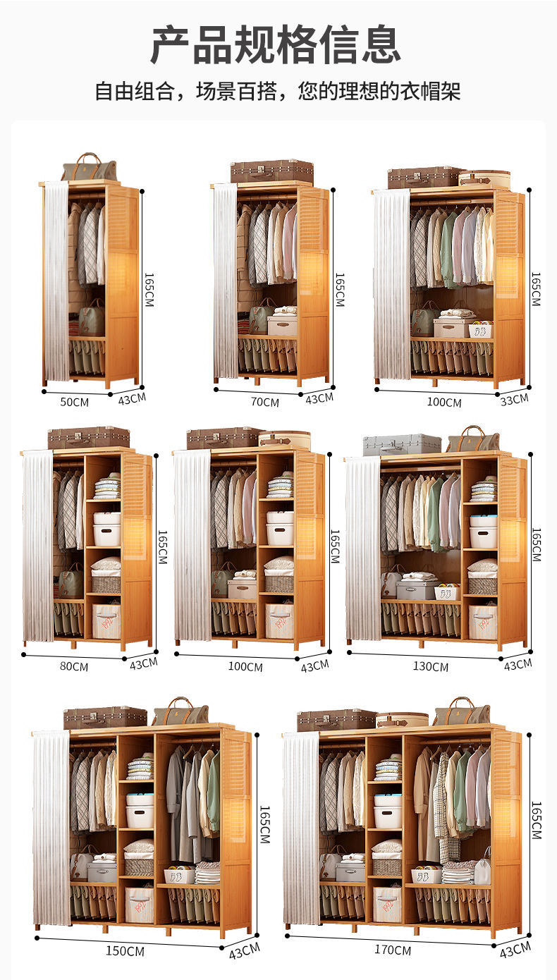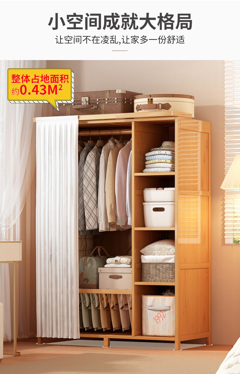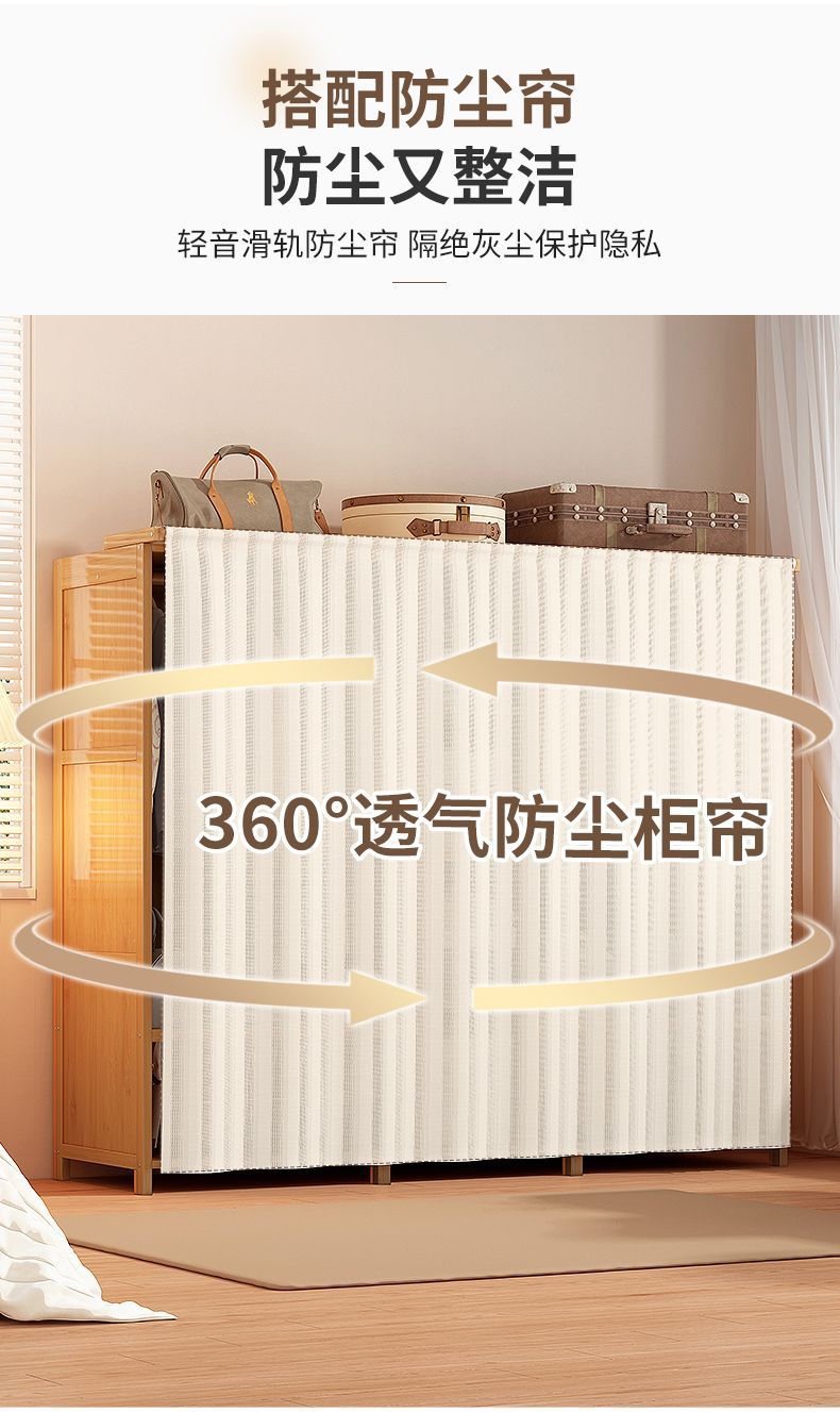옷장 홈 침실 튼튼하고 내구성이 뛰어난 간단한 대형 옷장 방진 보관 대용량 바닥에서 천장까지 이어지는 다층 대나무 캐비닛