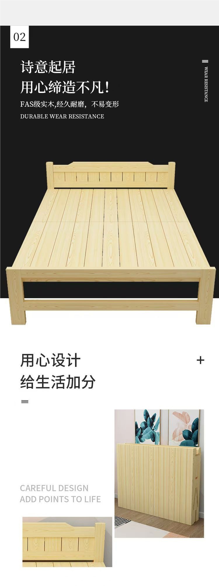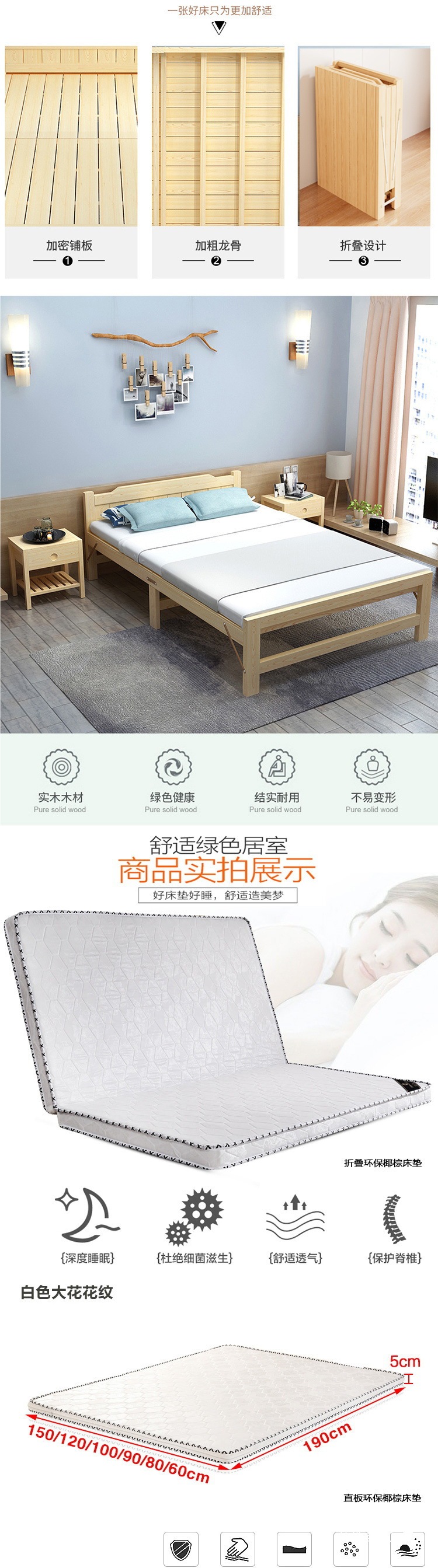 가정용 1인용 접이식 침대 시트, 성인용 간이 낮잠, 원목 강화 더블 임대용 하드보드 침대스토어 가기