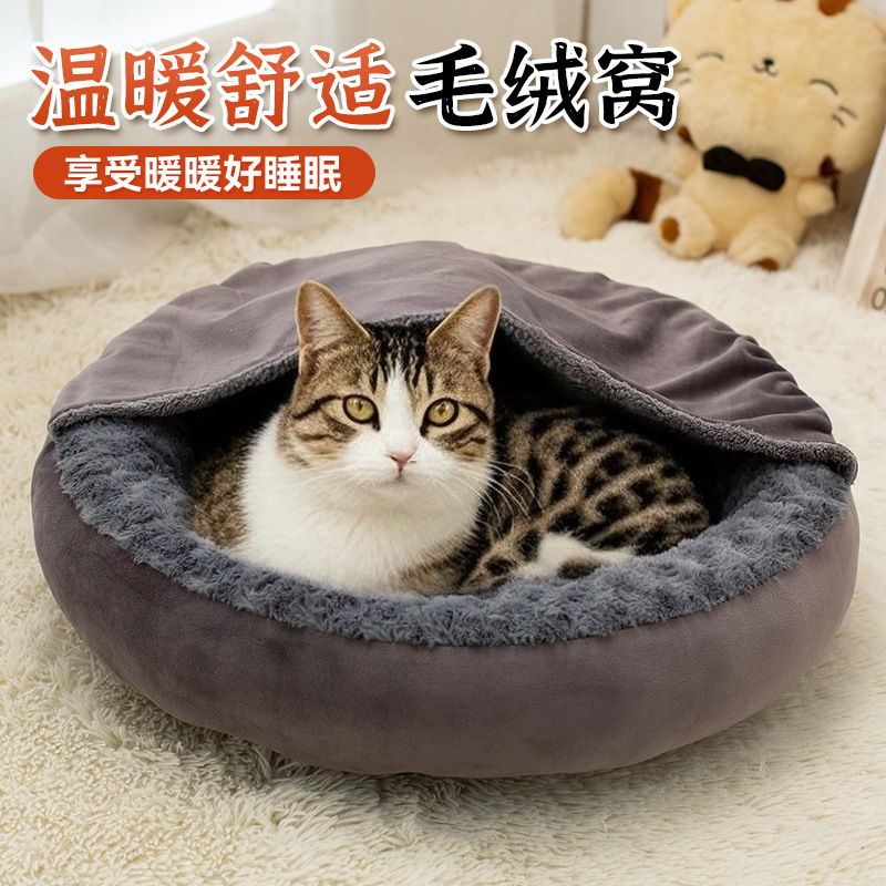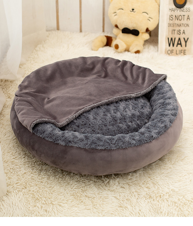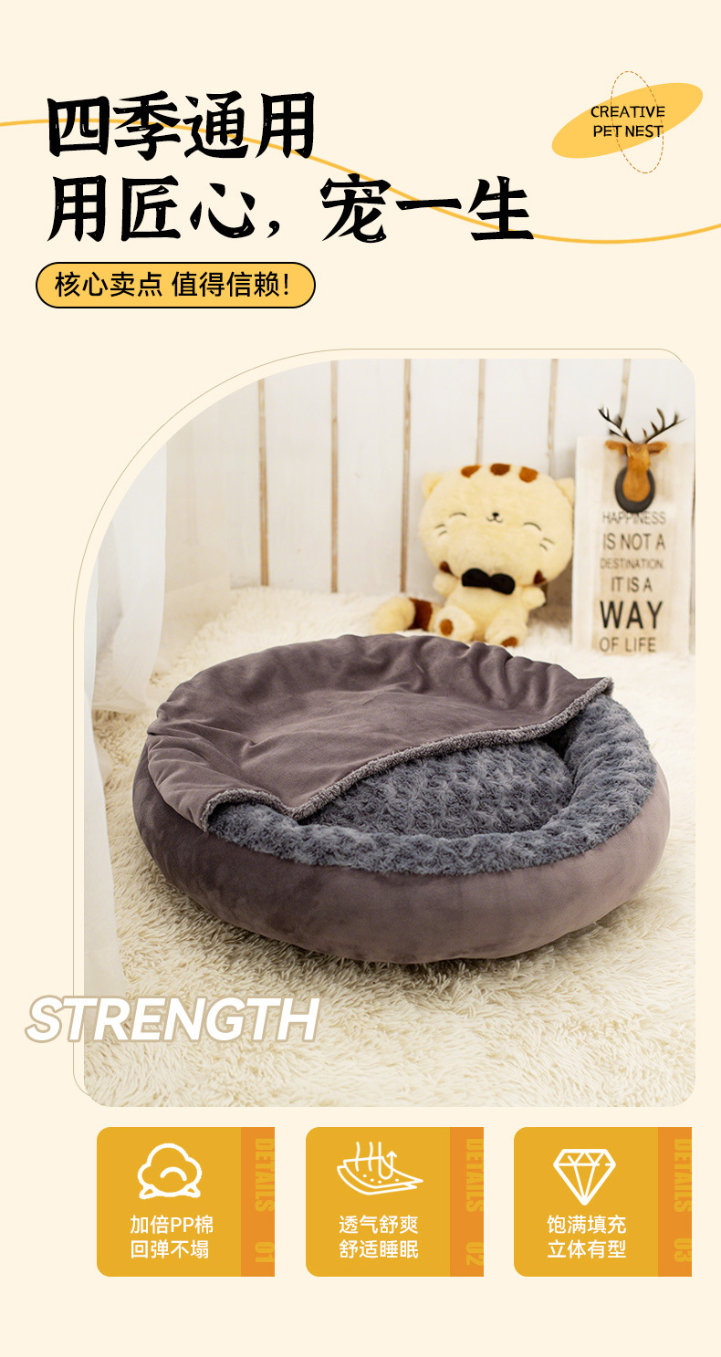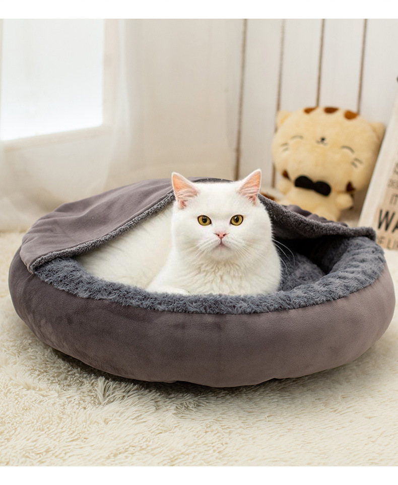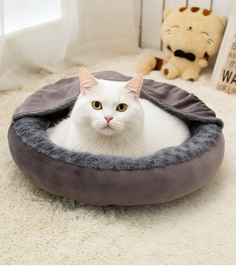 사계절용 애완동물 침대매트, 두꺼운 벨벳 원형 쉘형 침대, 대형 고양이 침대, 강아지 침대, 반밀폐형 고양이 침대