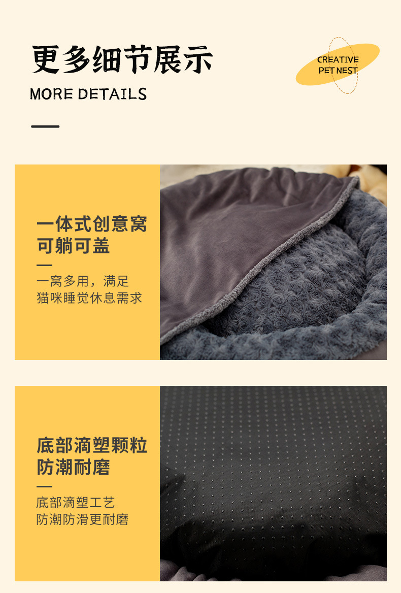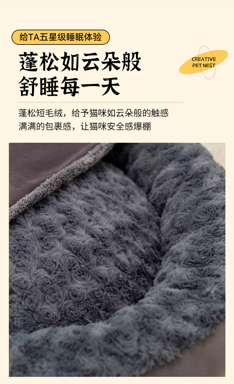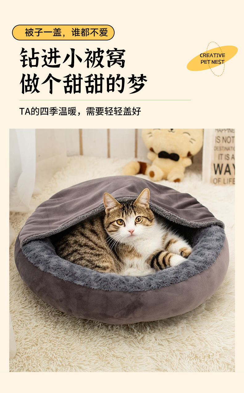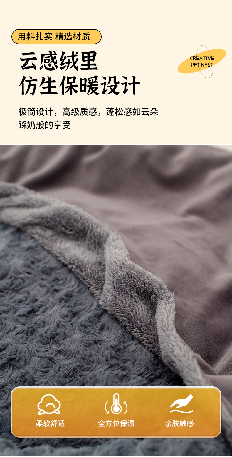 사계절용 애완동물 침대매트, 두꺼운 벨벳 원형 쉘형 침대, 대형 고양이 침대, 강아지 침대, 반밀폐형 고양이 침대