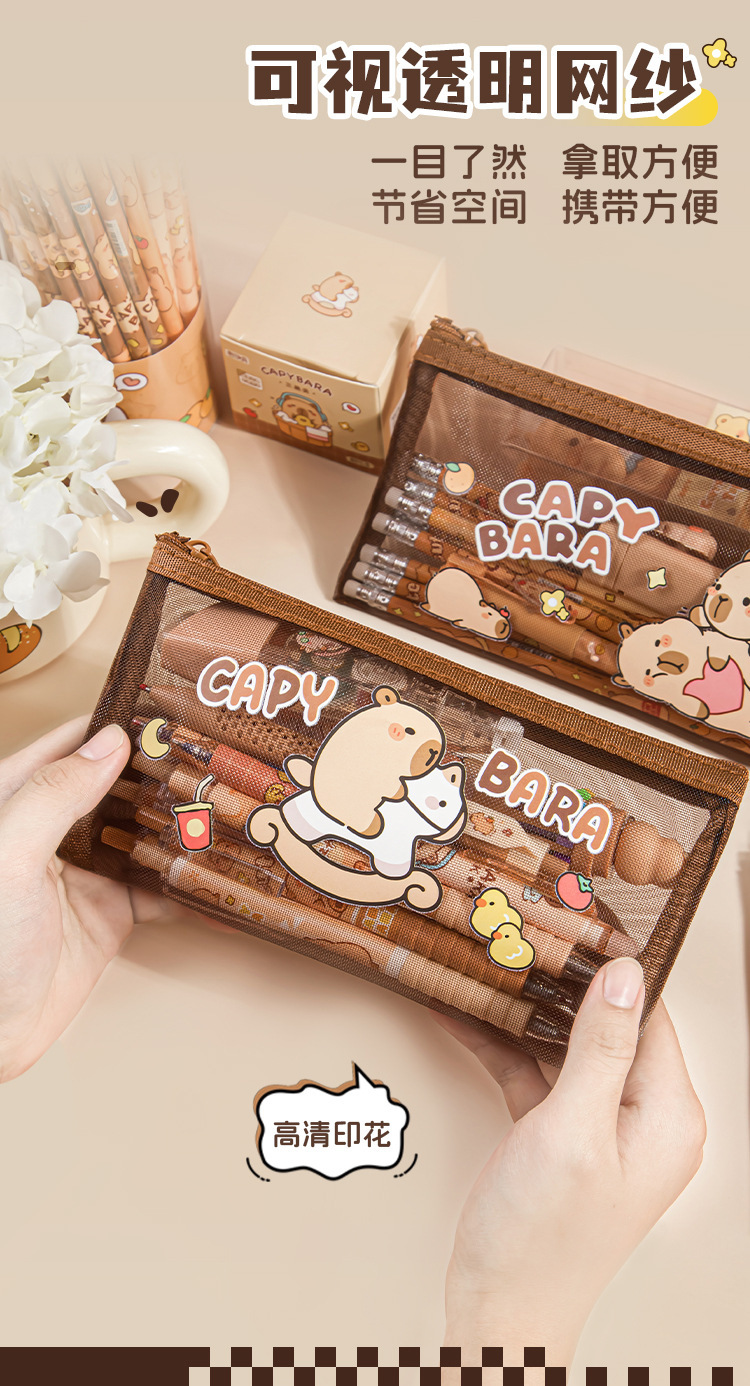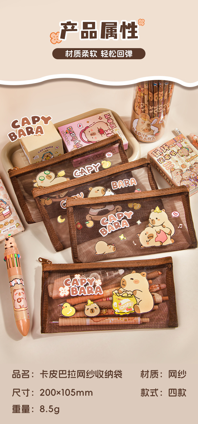 Kapibala 투명 메쉬 연필 가방 학생 시험 휴대용 저장 휴대용 연필 가방 대용량 편지지 가방 도매