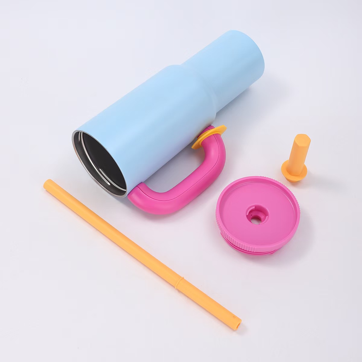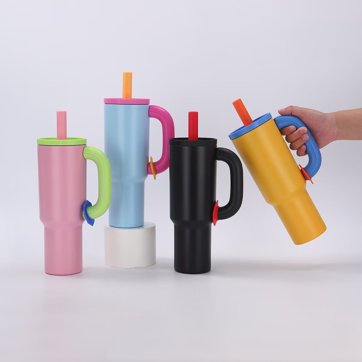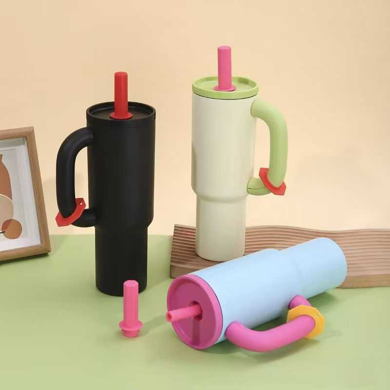 새로운 도파민 304 스테인레스 스틸 절연 컵 대용량 핸들 밀짚 컵 자동차 휴대용 콜드 아이스 컵