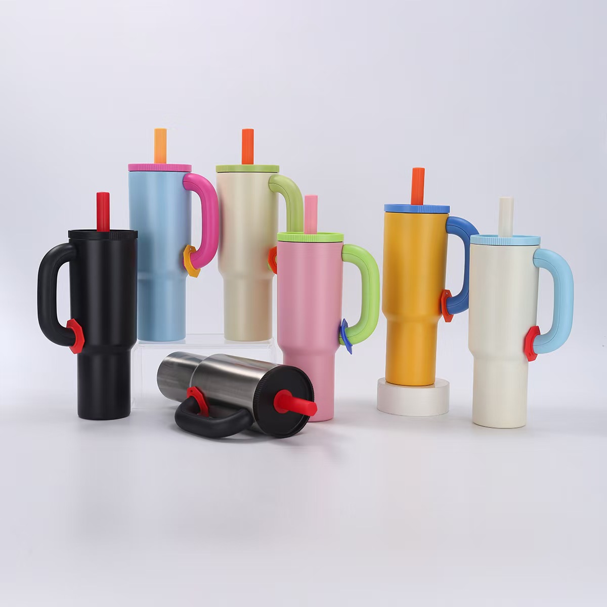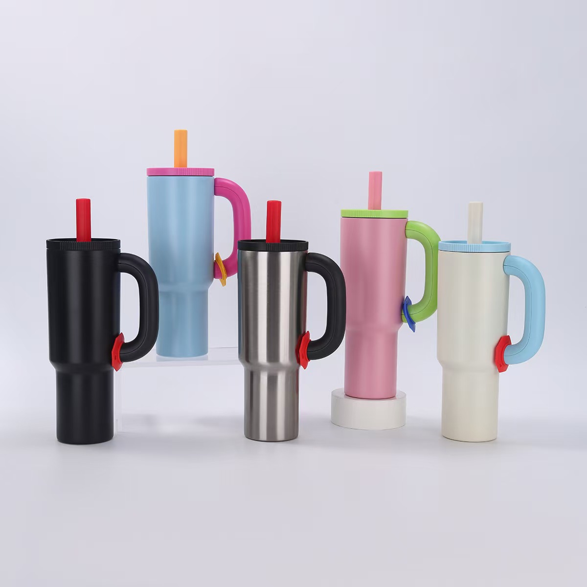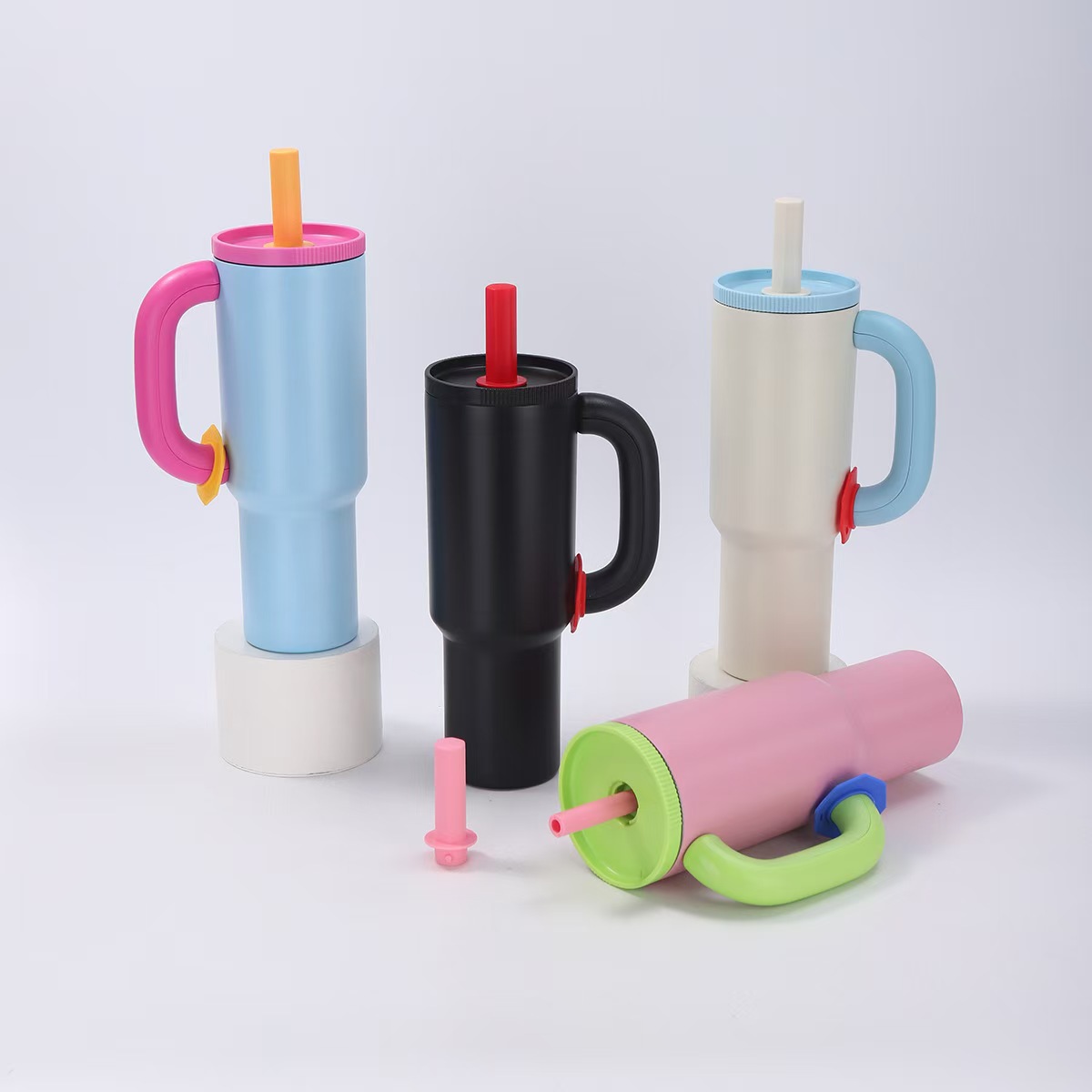 새로운 도파민 304 스테인레스 스틸 절연 컵 대용량 핸들 밀짚 컵 자동차 휴대용 콜드 아이스 컵