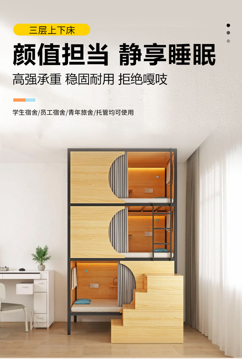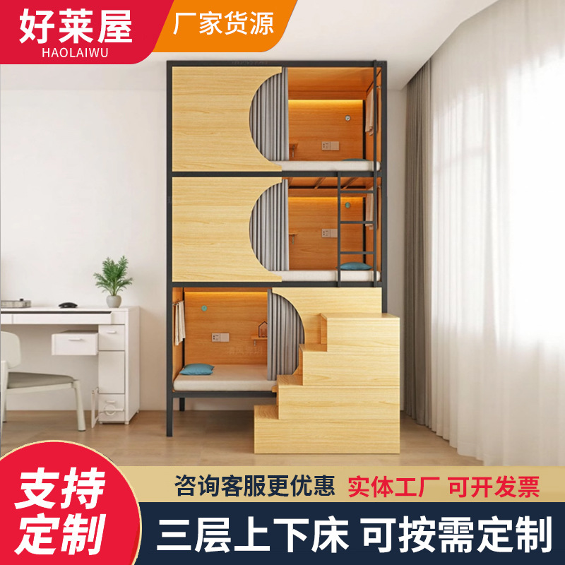 3층 철제 목재 스페이스 캡슐형 이층침대, e스포츠 호텔 직원 및 학생 기숙사, 올인클루시브 이층침대 기숙사 책상스토어 가기