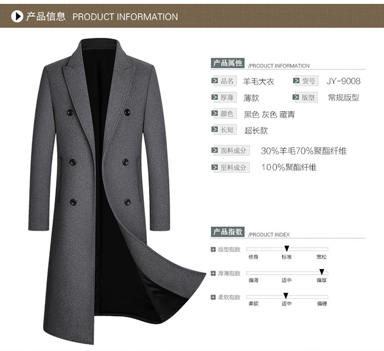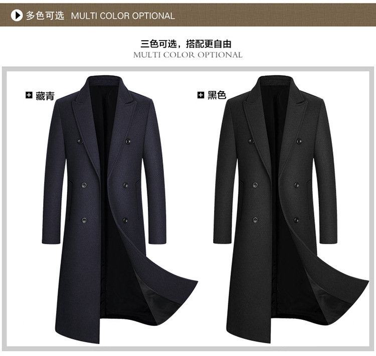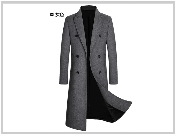 유럽 사이즈 가을 겨울 신작 더블 브레스트 무릎 길이 모직 코트 남성용 울 코트 윈드 브레이커 코트 대형스토어 가기
