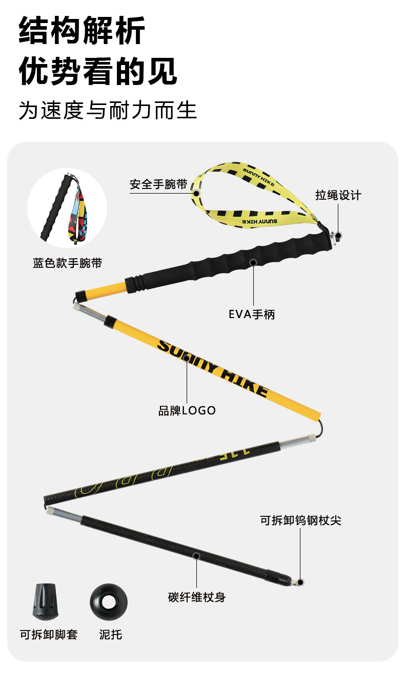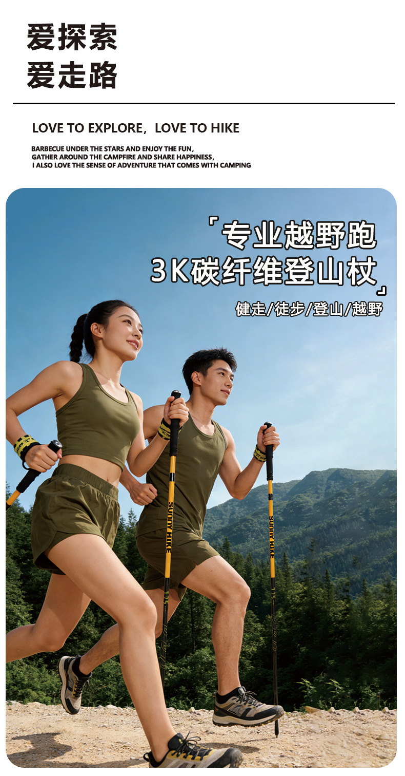 탄소 섬유 접이식 오프로드 러닝 스틱 야외 하이킹 스틱 하이킹 지팡이 남여 지팡이스토어 가기