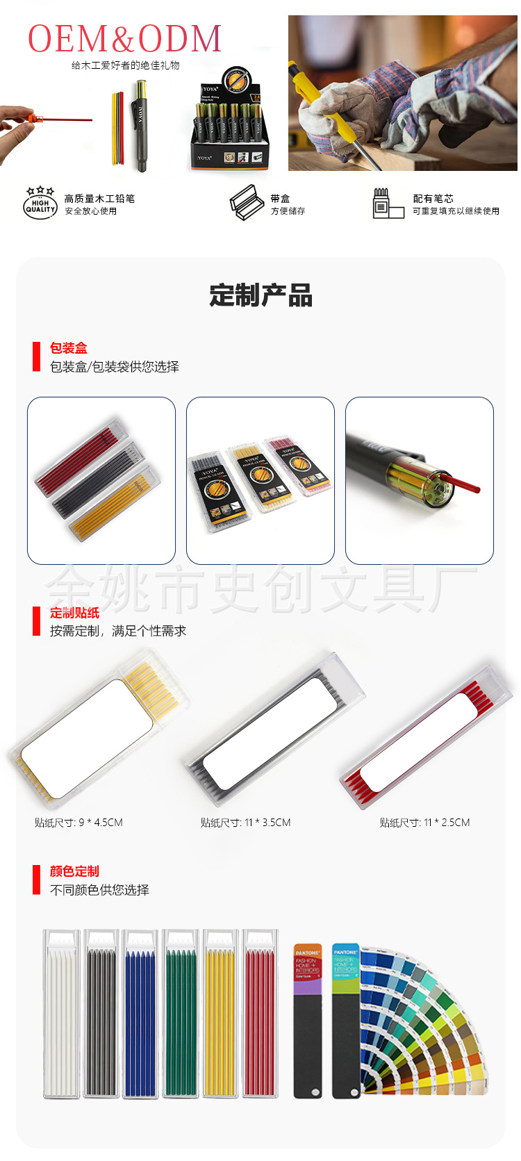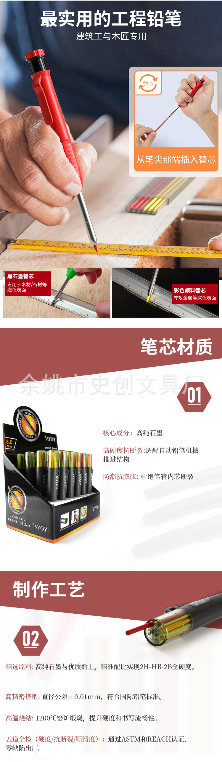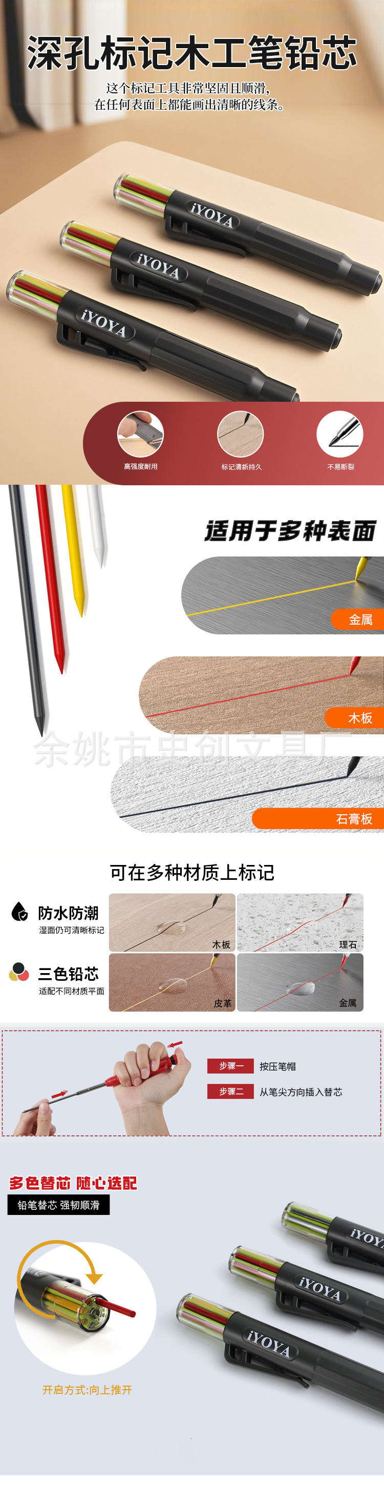 새로운 고급 목공 깊은 구멍 펜, 리필 상자, 컬러 유리 심, 목공 연필 심, 마킹 및 마킹