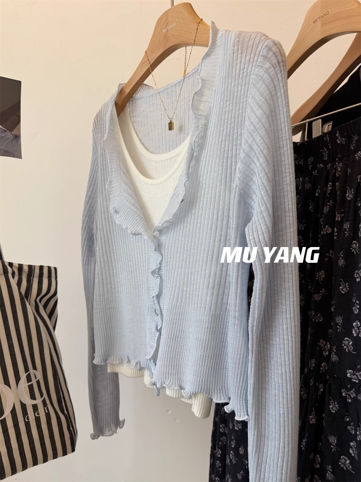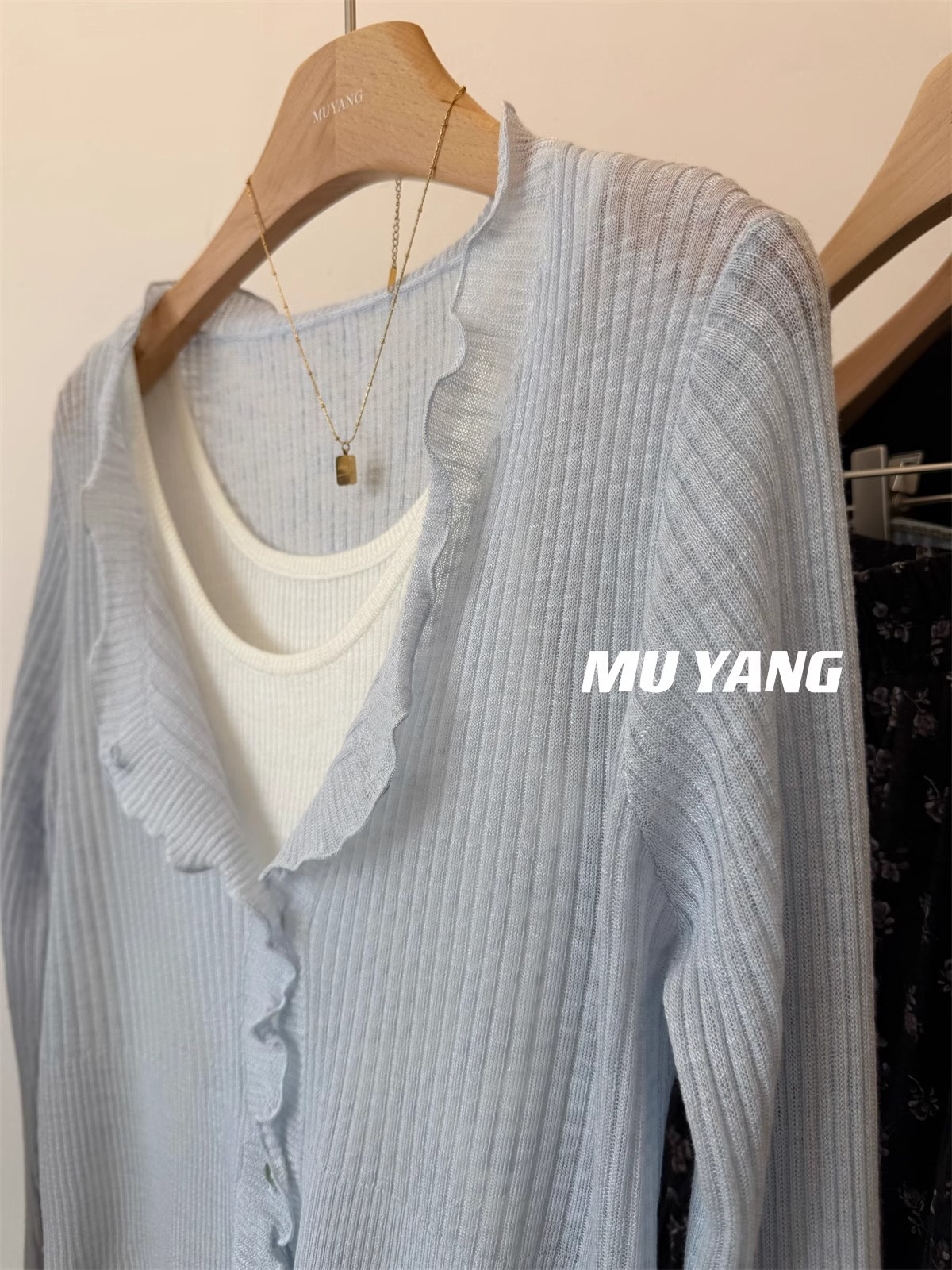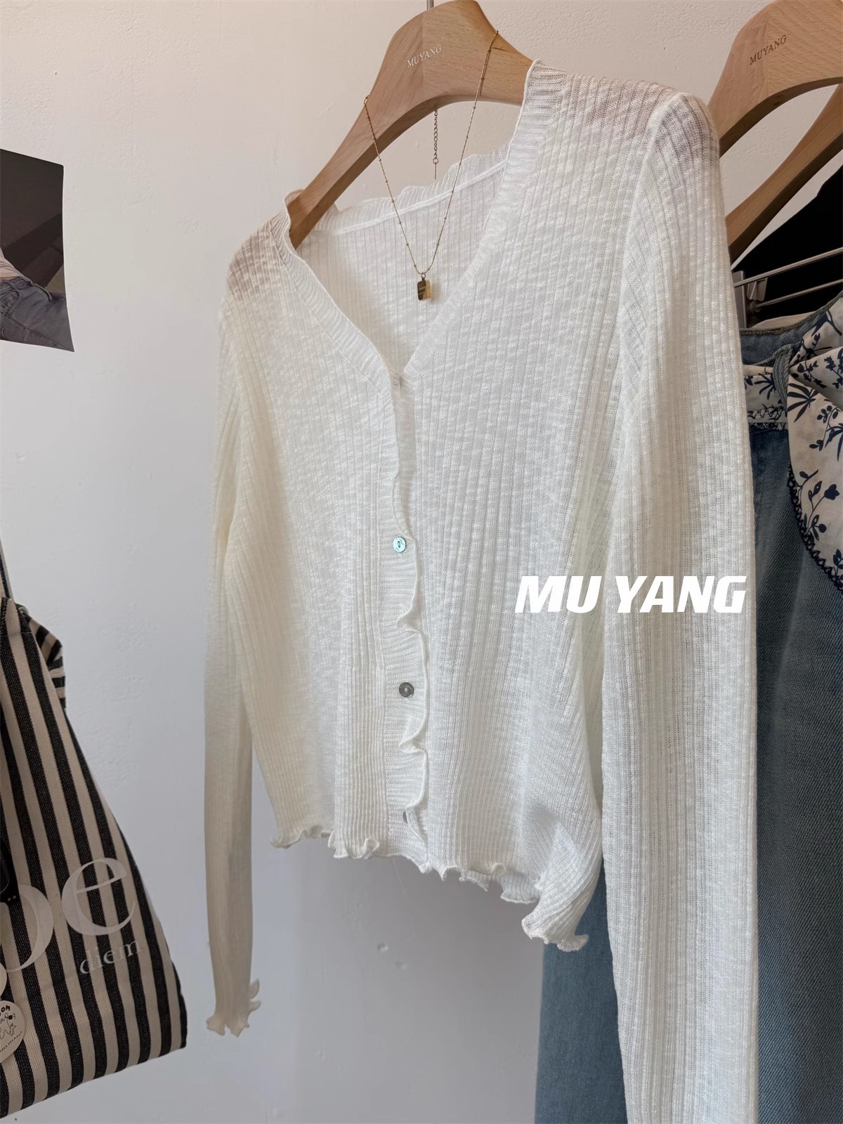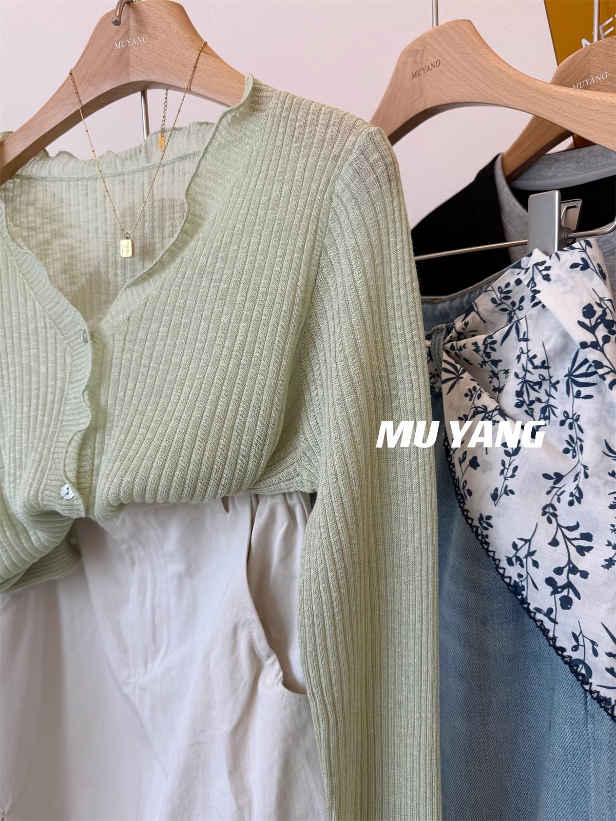 여름에는 모두 착용해요! 순수한 욕망 소녀 귀 얇은 카디건 짧은 자외선 차단 스웨터 2025 새로운 스타일스토어 가기