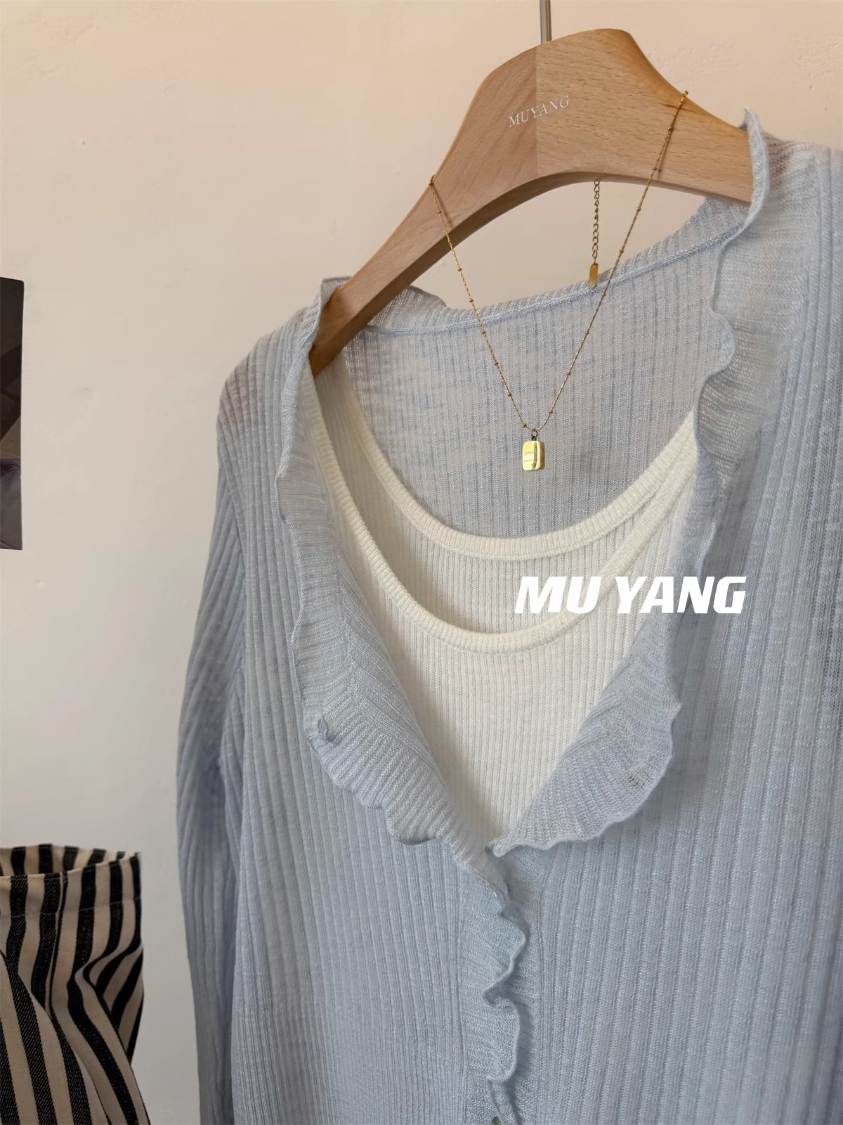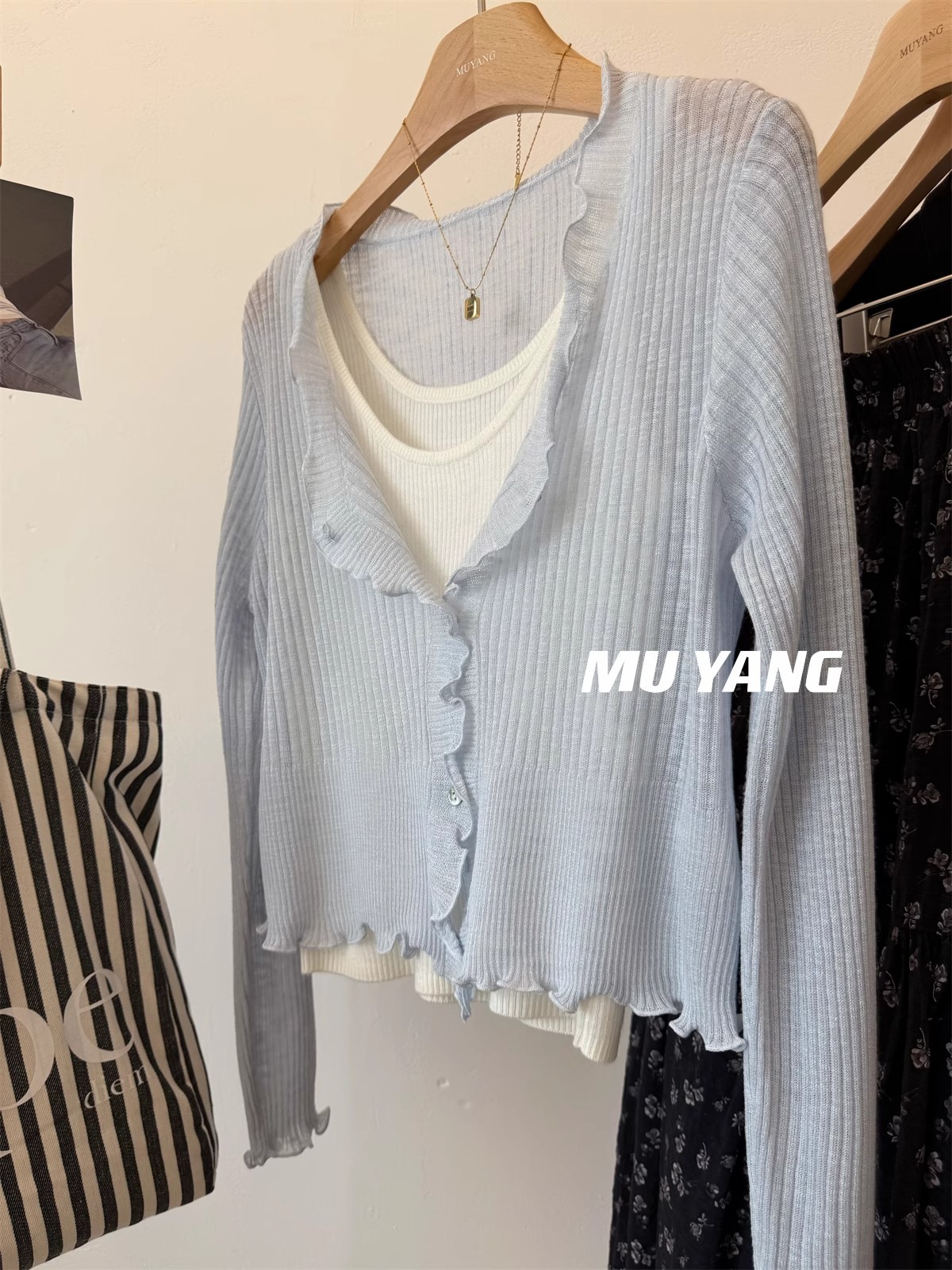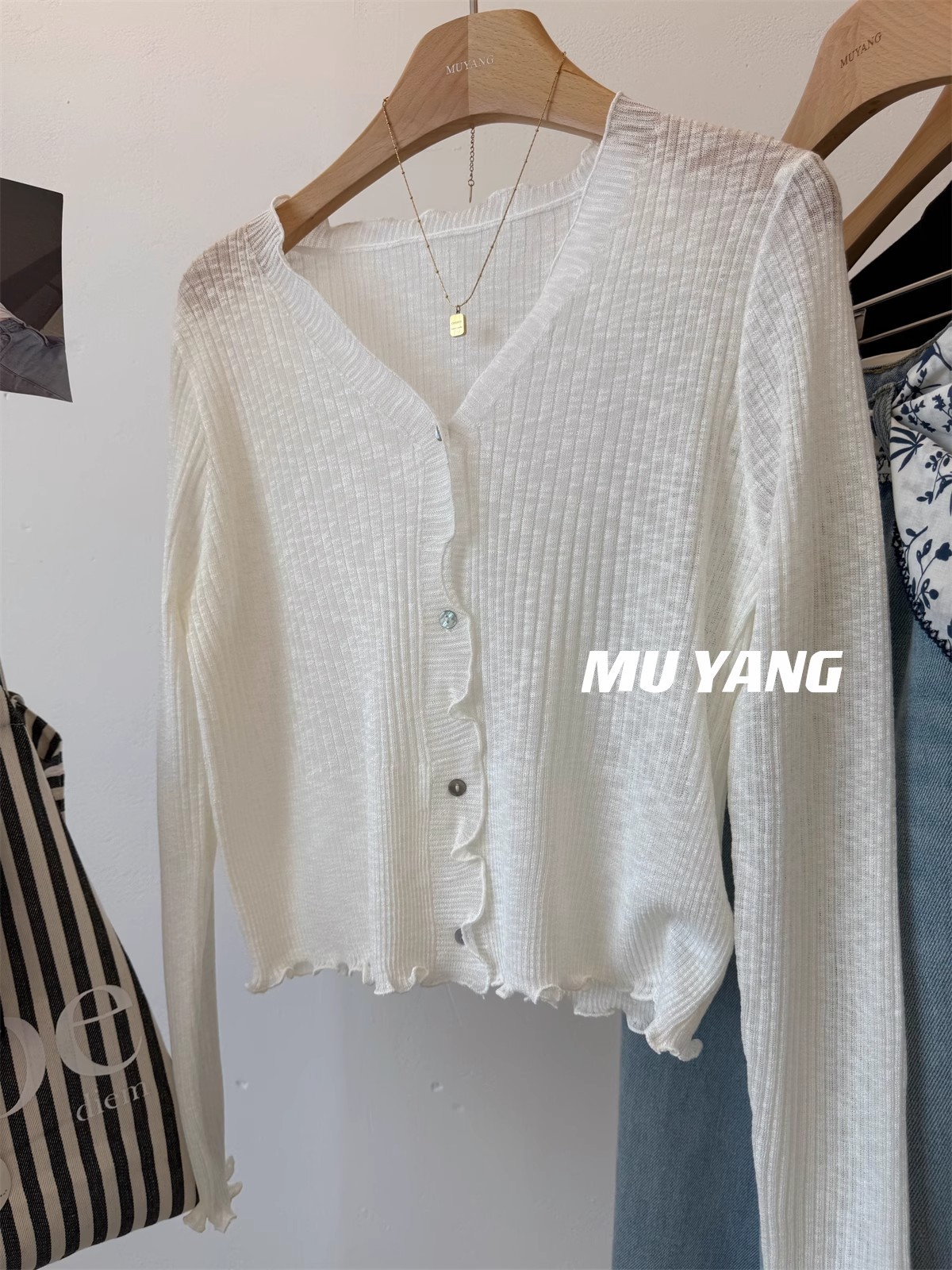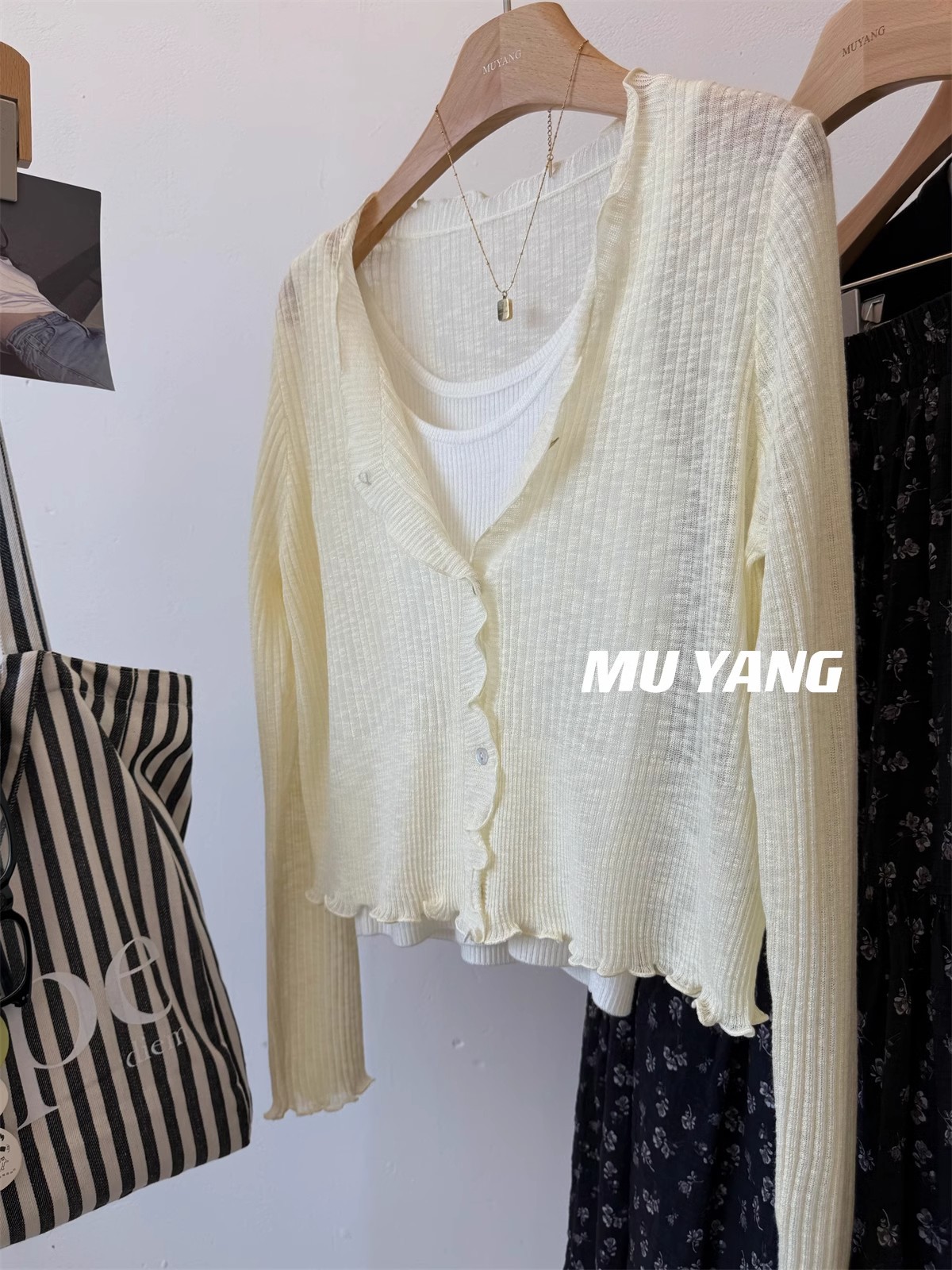 여름에는 모두 착용해요! 순수한 욕망 소녀 귀 얇은 카디건 짧은 자외선 차단 스웨터 2025 새로운 스타일스토어 가기