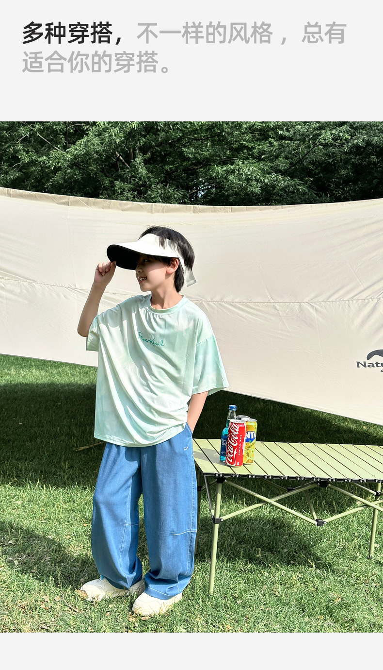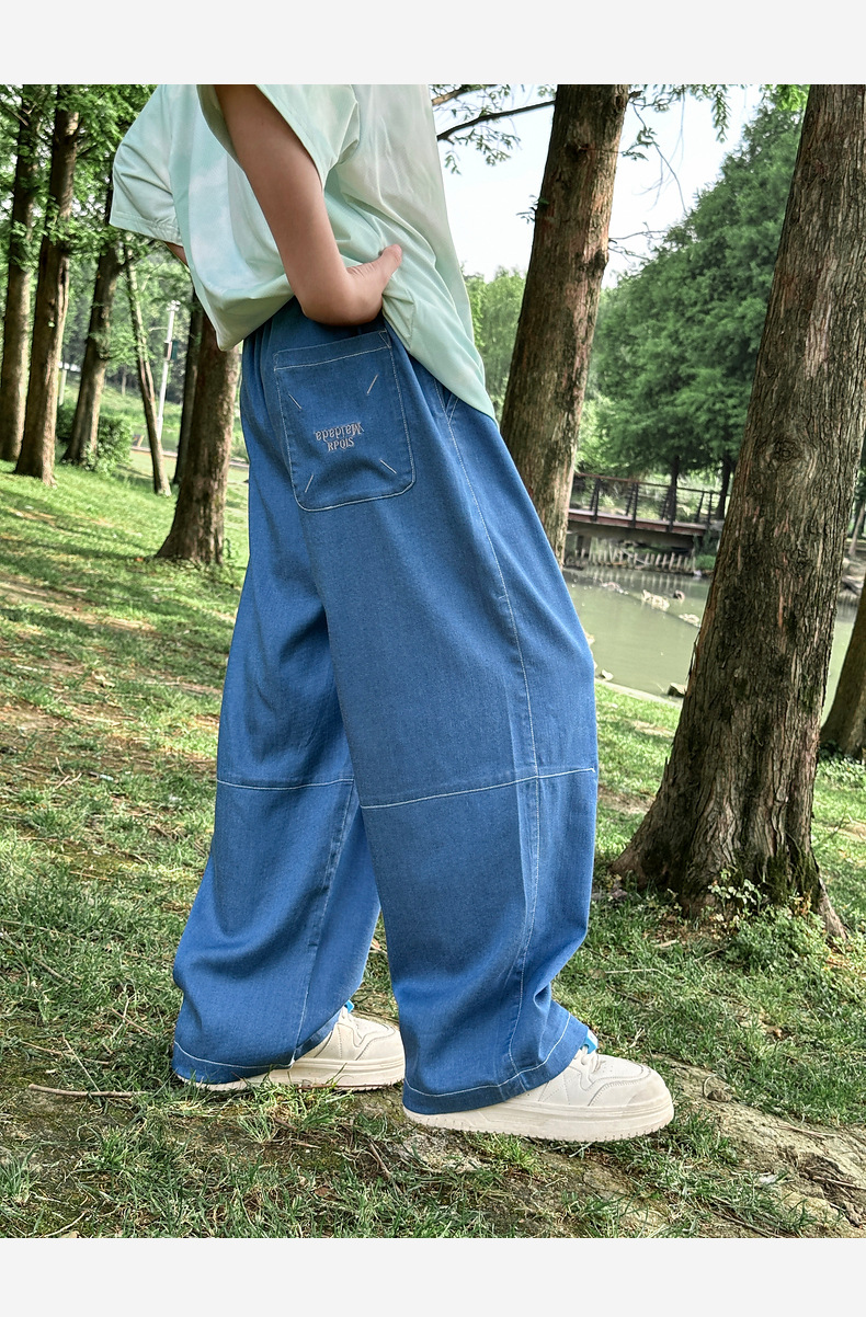 2025 새로운 여름 어린이 리오셀 텐셀 청바지 소년 바지 얇은 모기 방지 바지 바지 도매스토어 가기