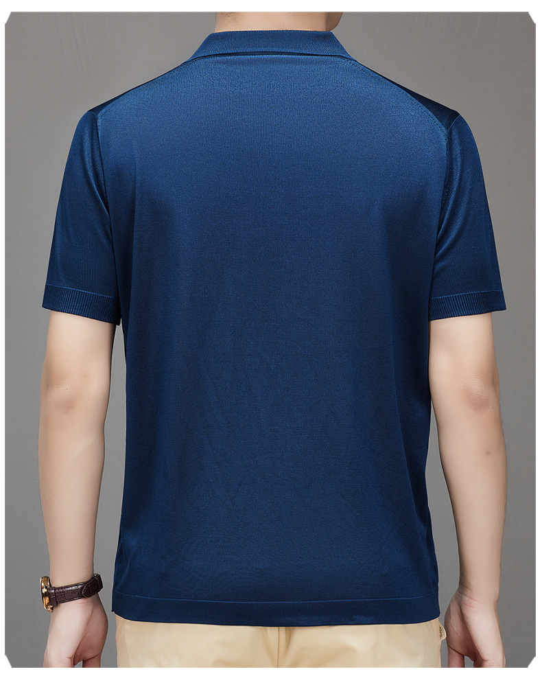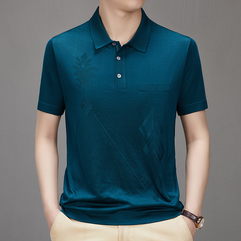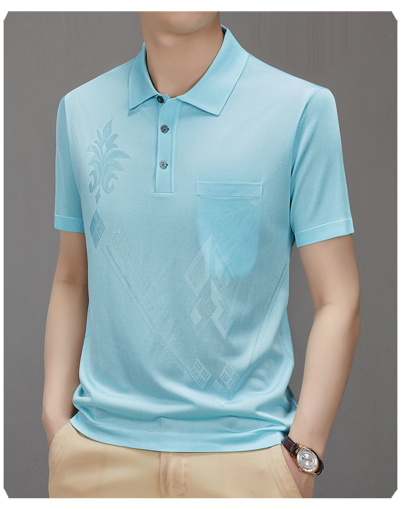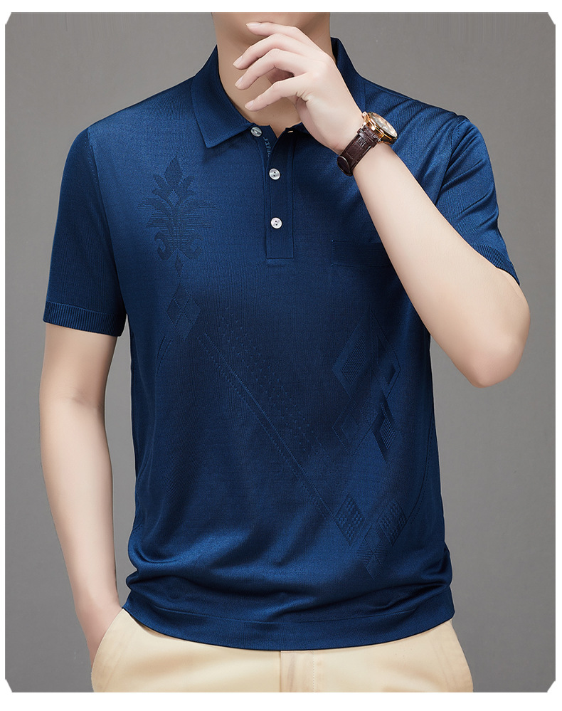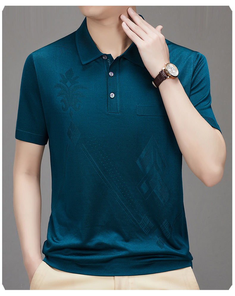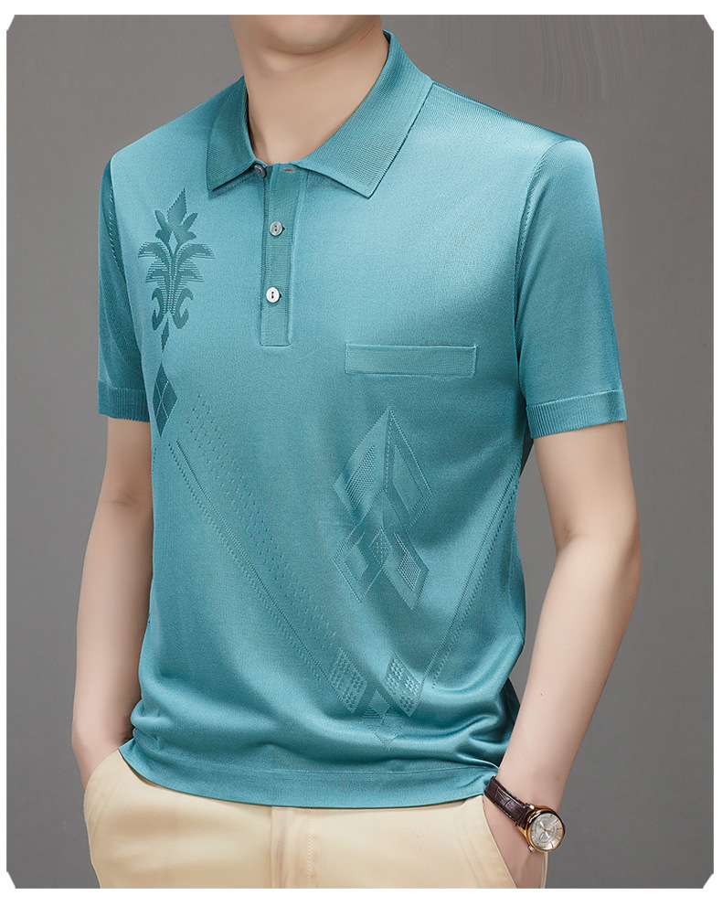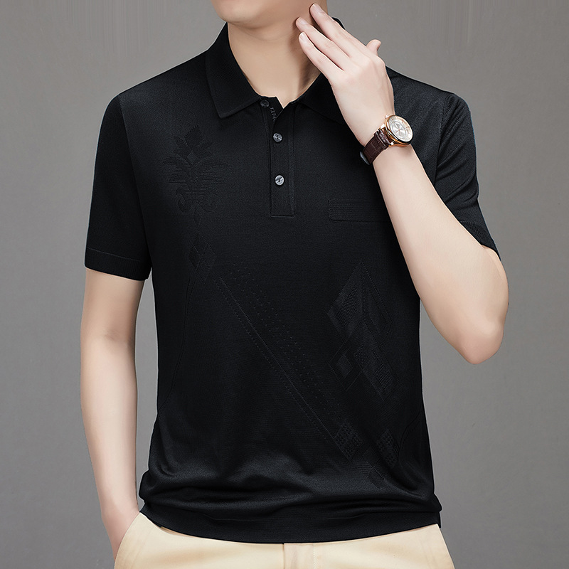Douyin 핫 스타일 2025 새로운 여름 하이 엔드 패션 남성 아이스 실크 코튼 반팔 라펠 폴로 셔츠 중년 남성스토어 가기