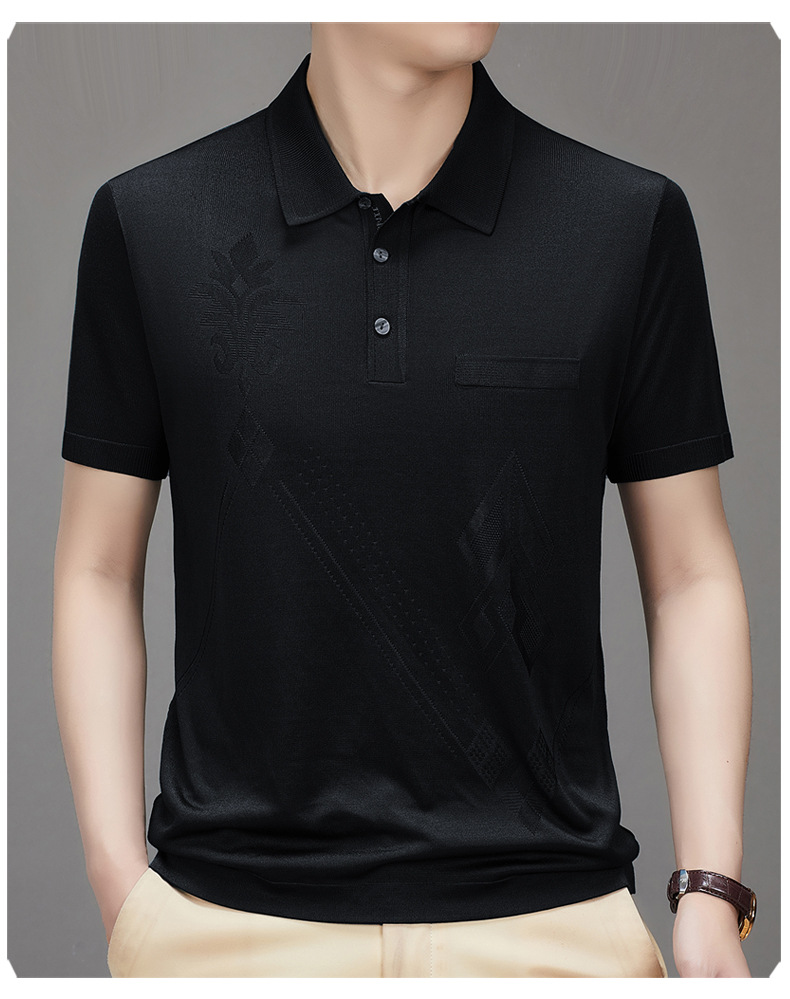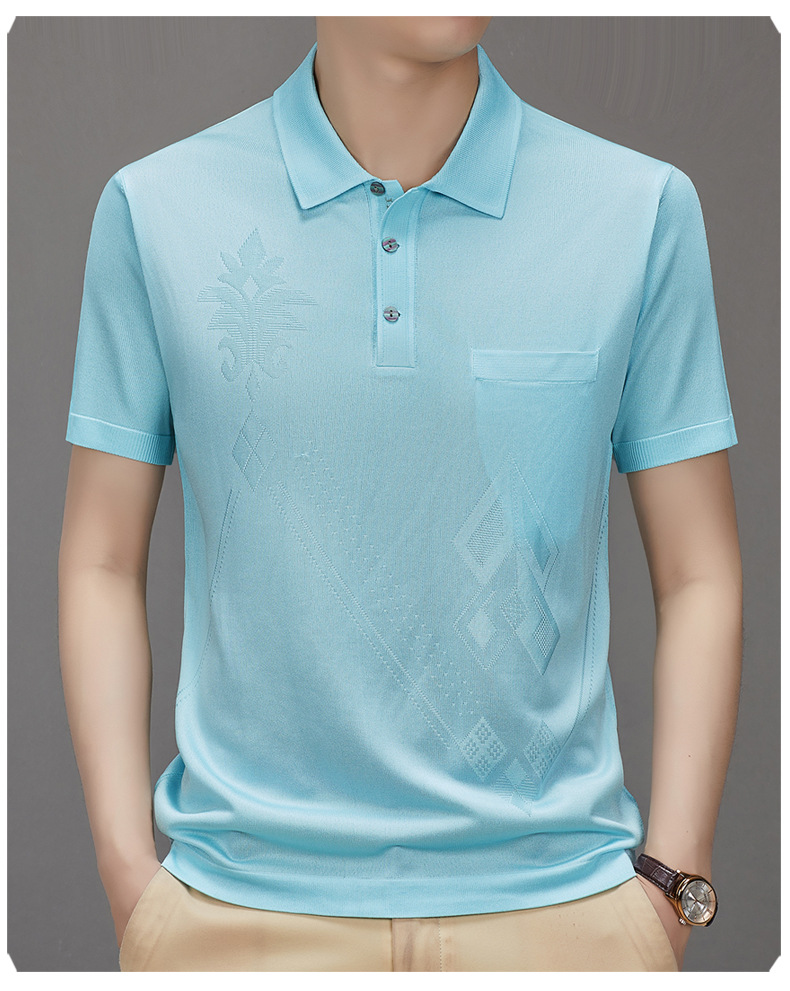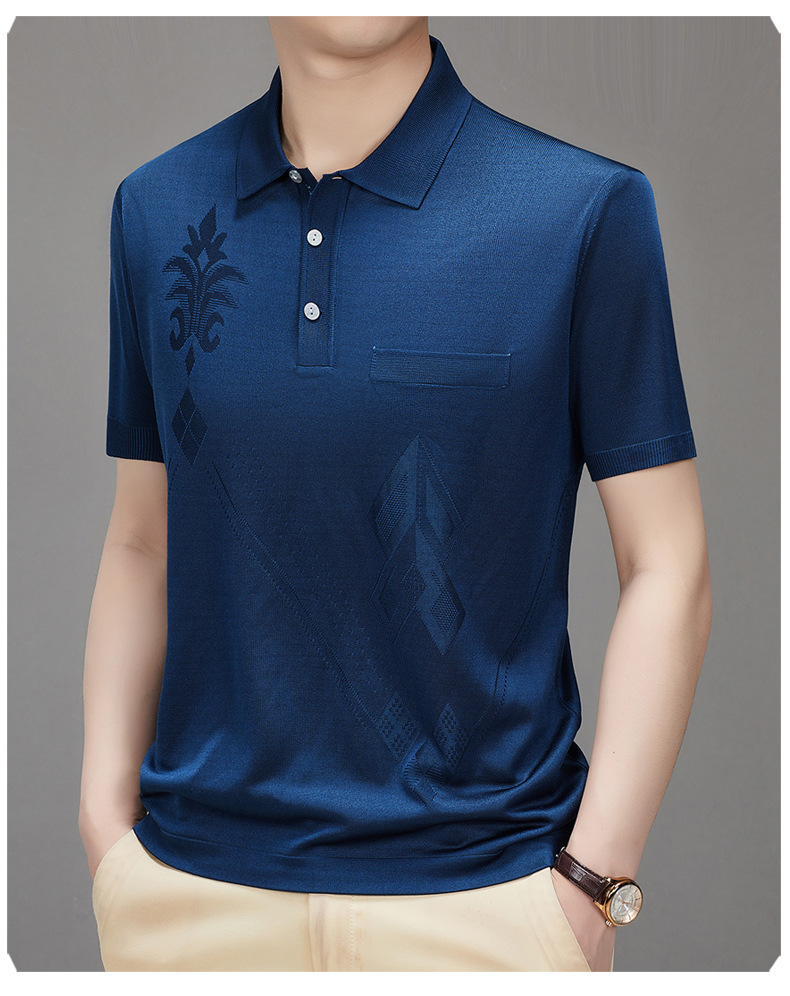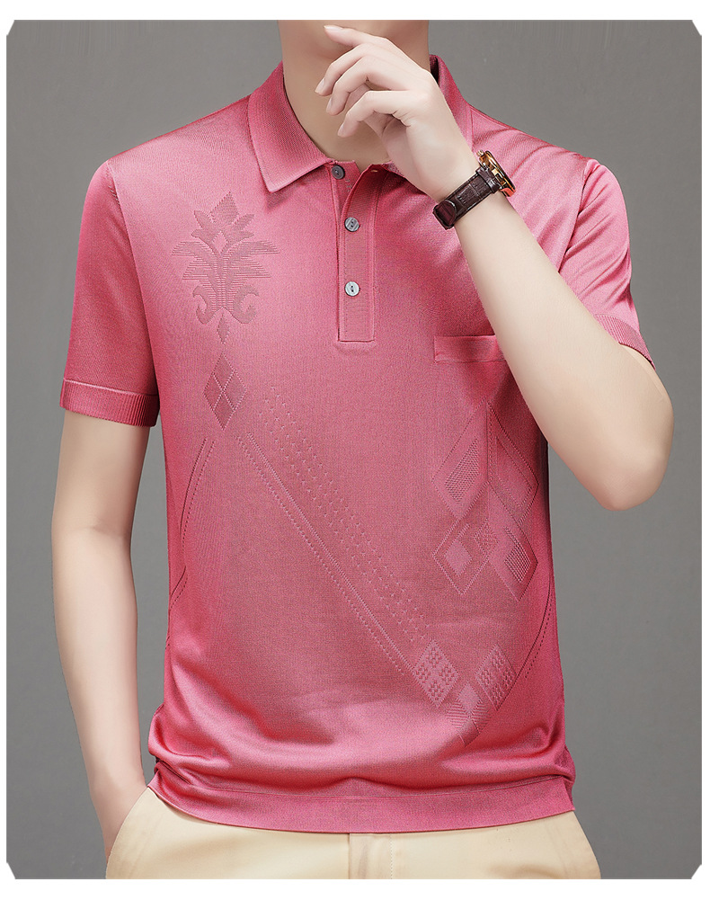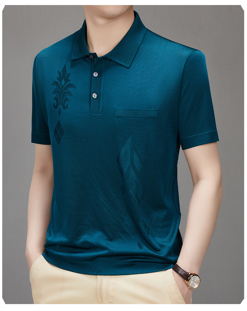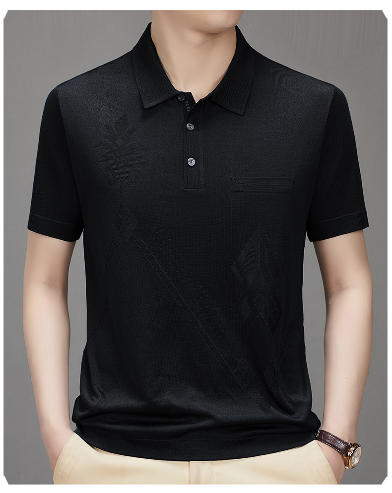 Douyin 핫 스타일 2025 새로운 여름 하이 엔드 패션 남성 아이스 실크 코튼 반팔 라펠 폴로 셔츠 중년 남성스토어 가기