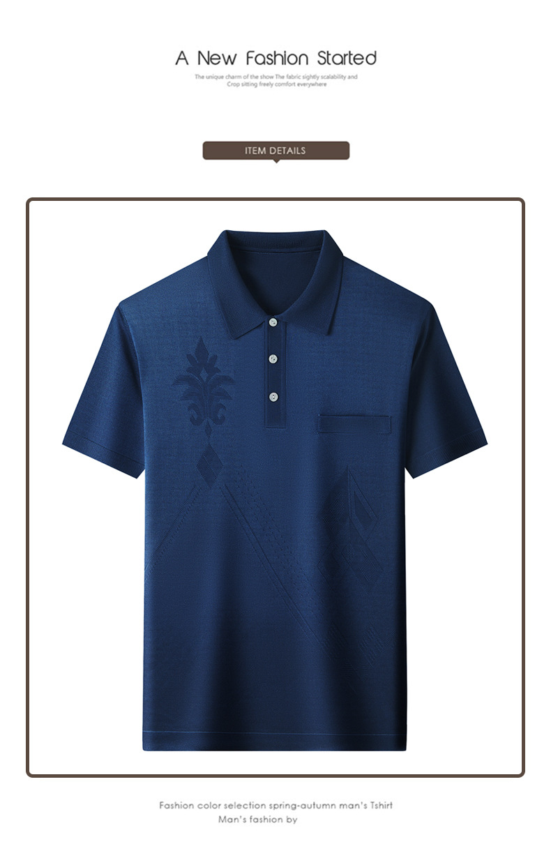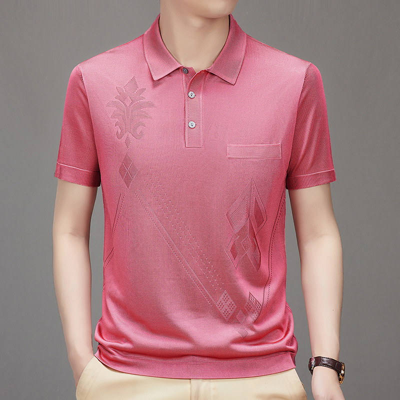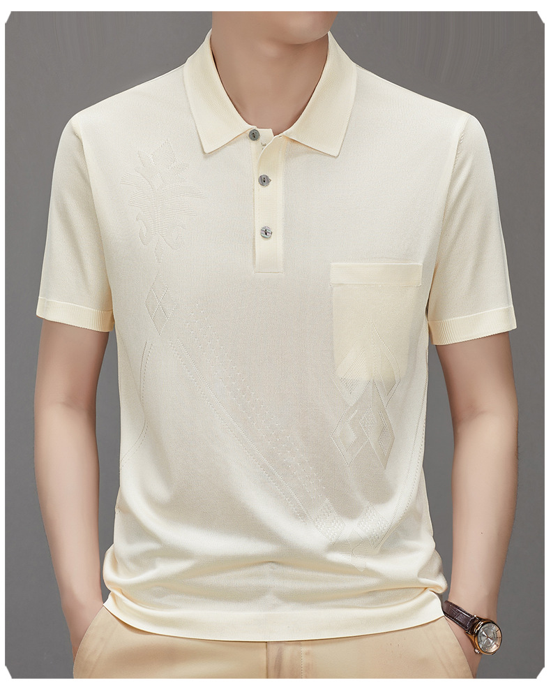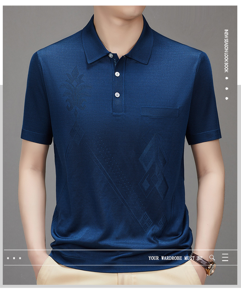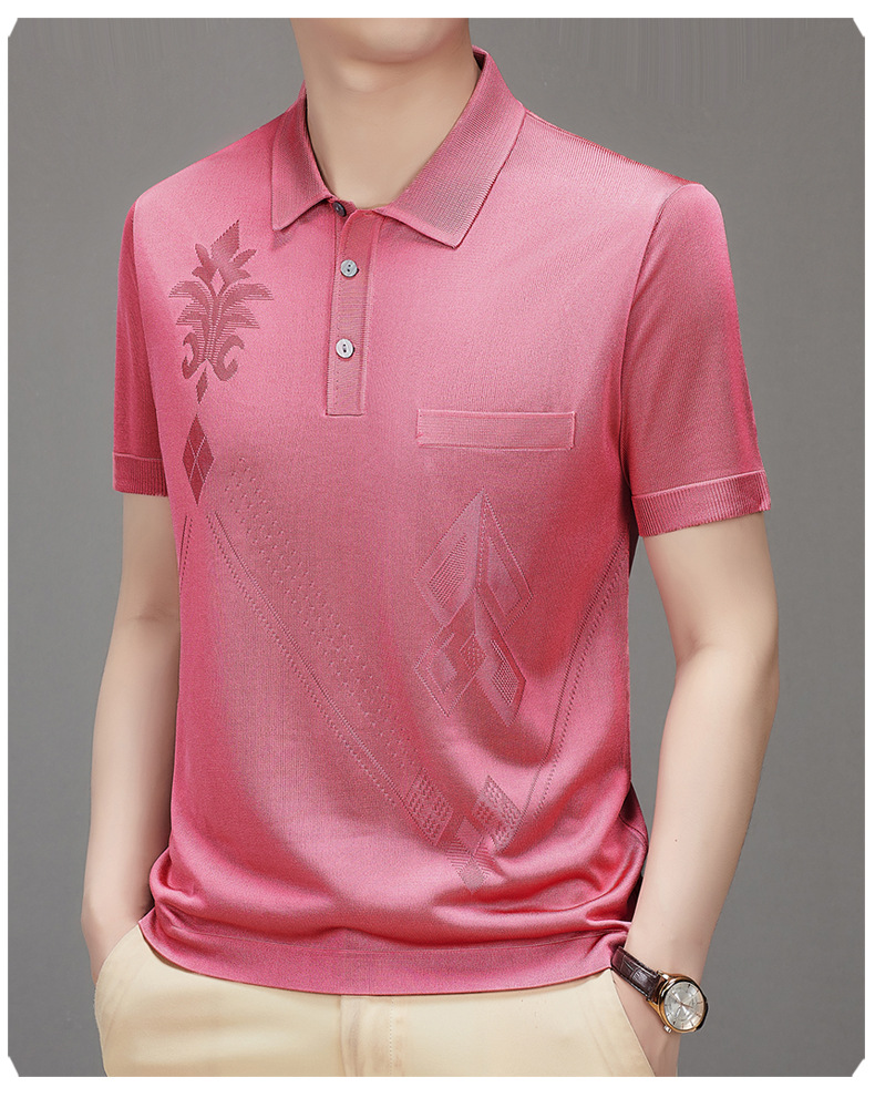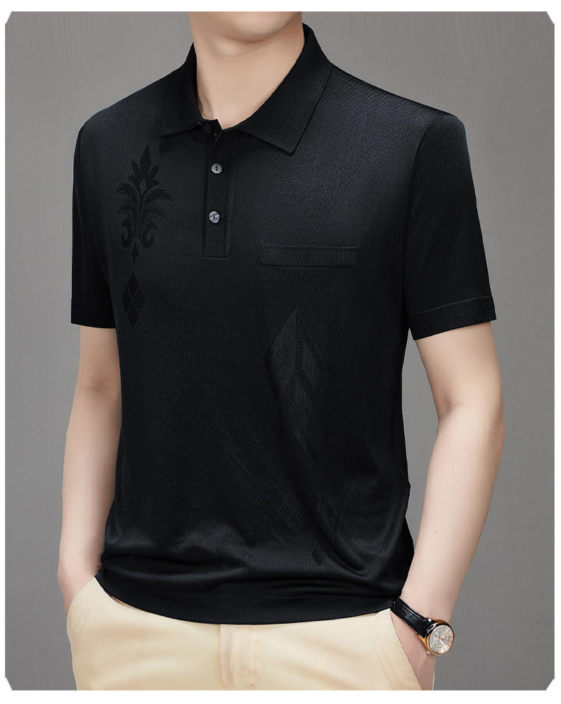Douyin 핫 스타일 2025 새로운 여름 하이 엔드 패션 남성 아이스 실크 코튼 반팔 라펠 폴로 셔츠 중년 남성스토어 가기