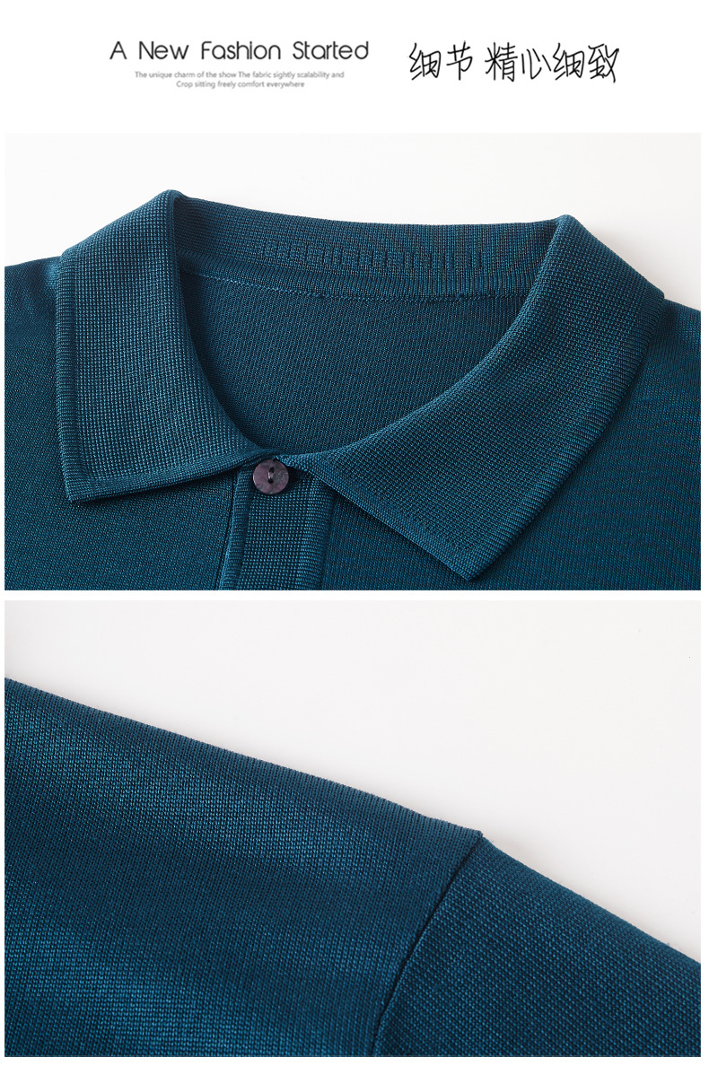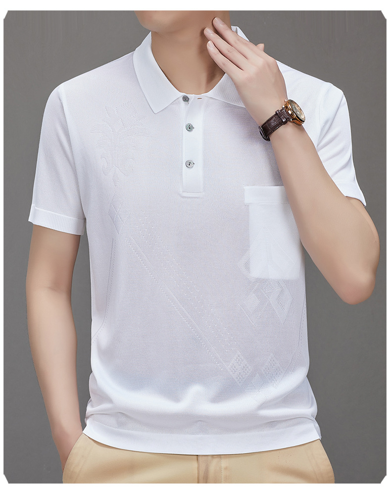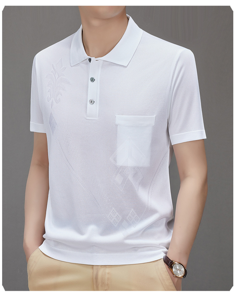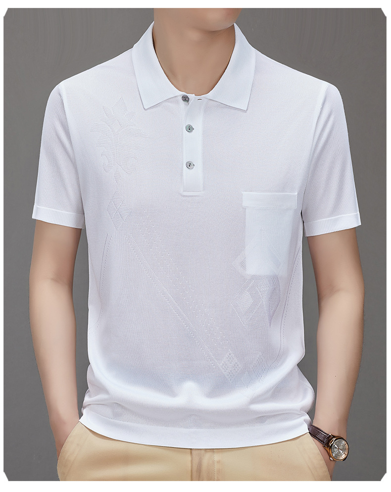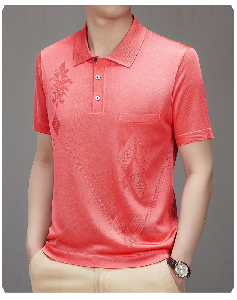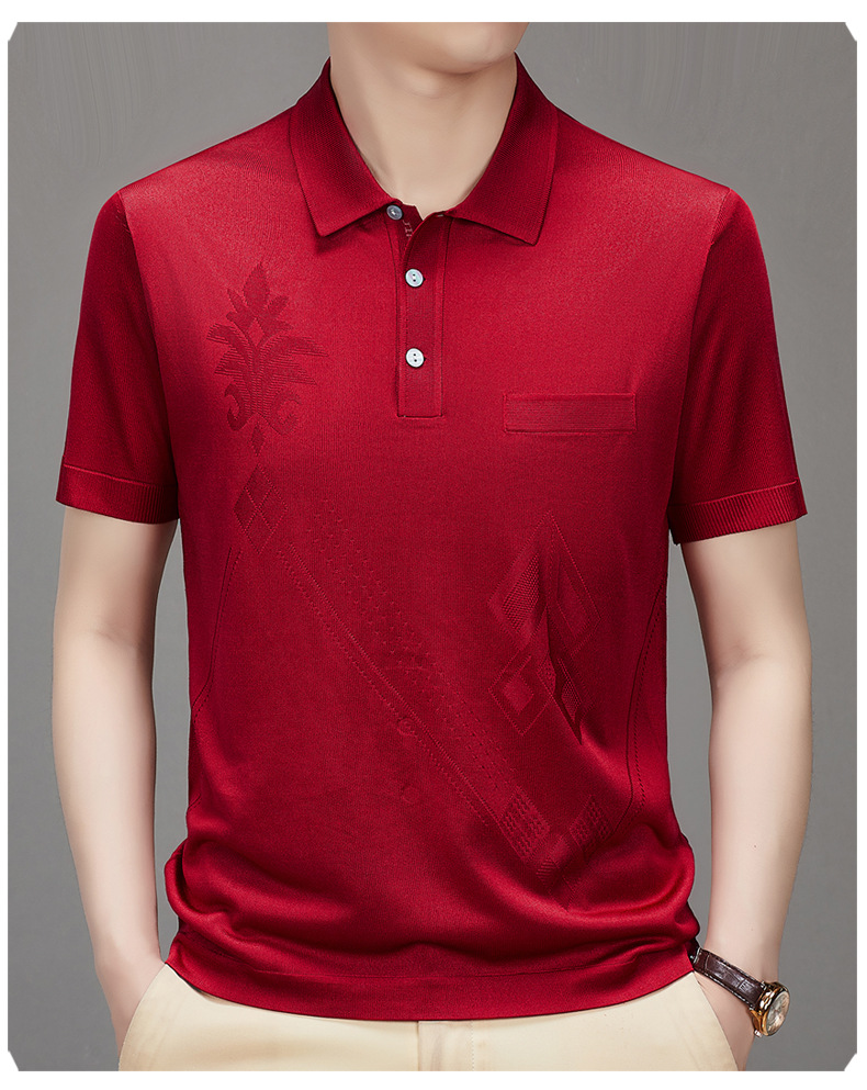 Douyin 핫 스타일 2025 새로운 여름 하이 엔드 패션 남성 아이스 실크 코튼 반팔 라펠 폴로 셔츠 중년 남성스토어 가기