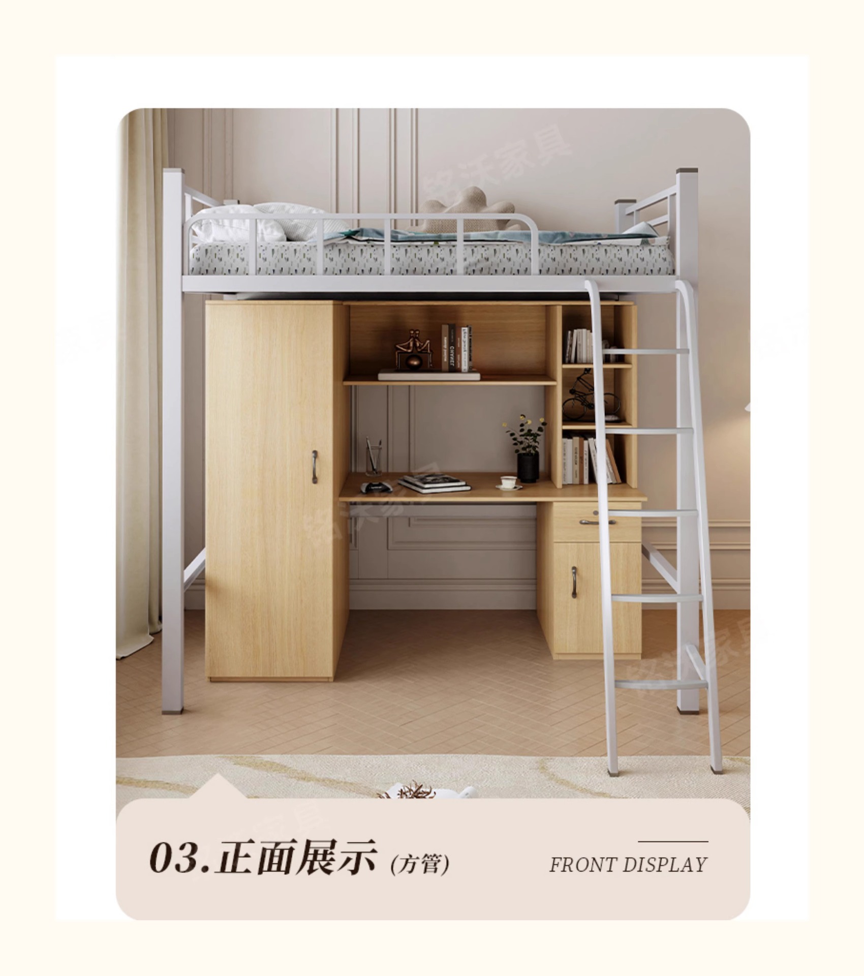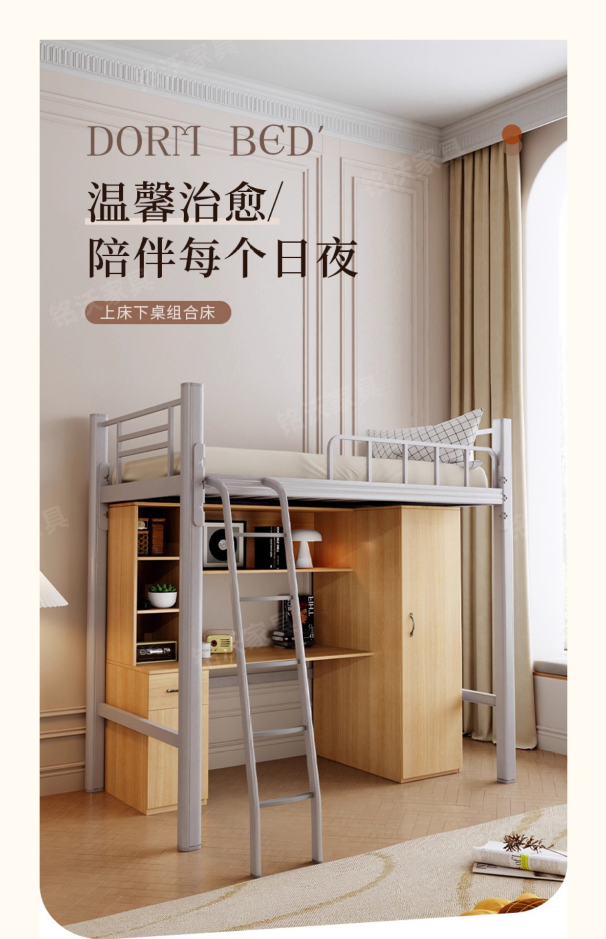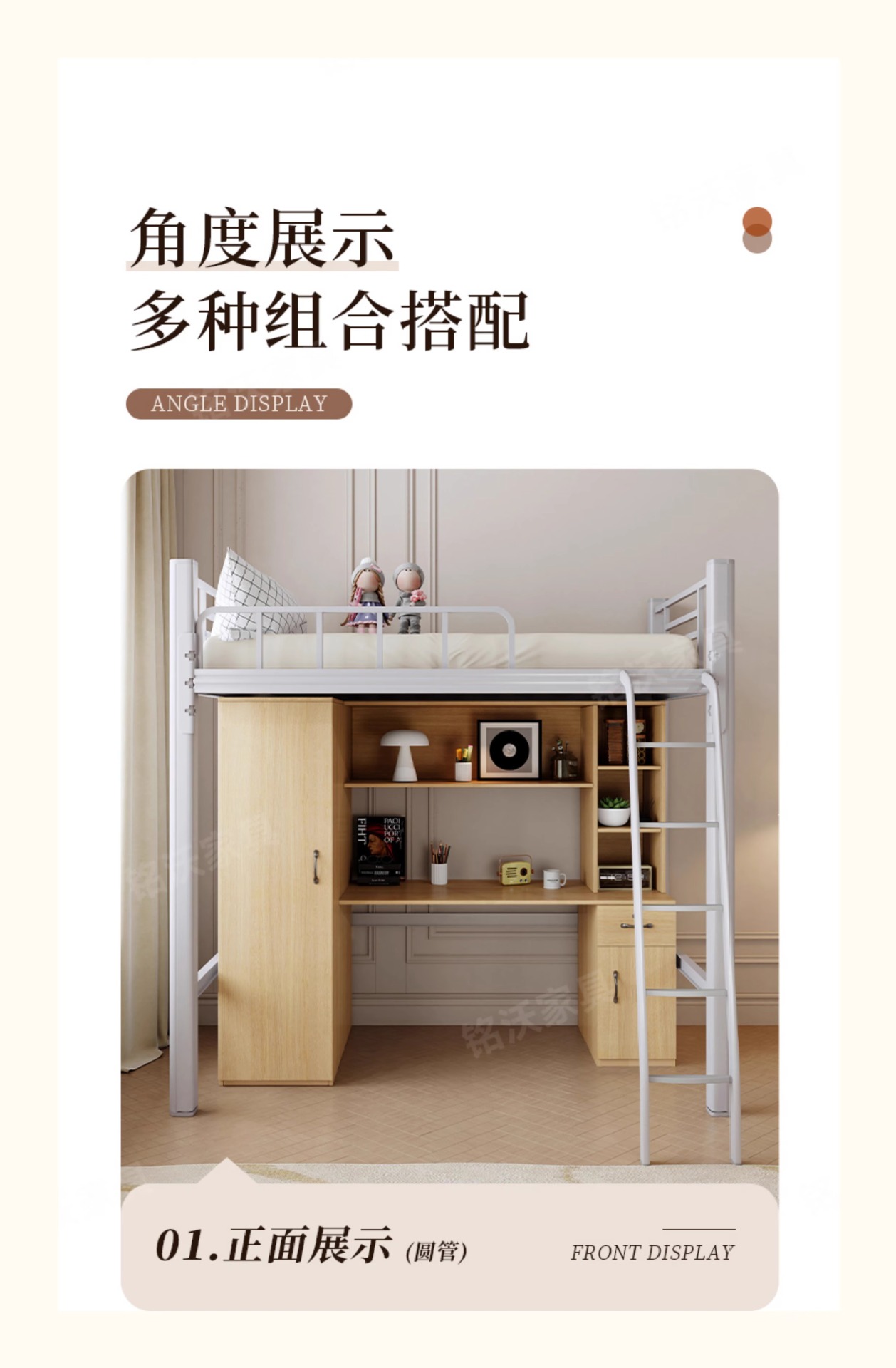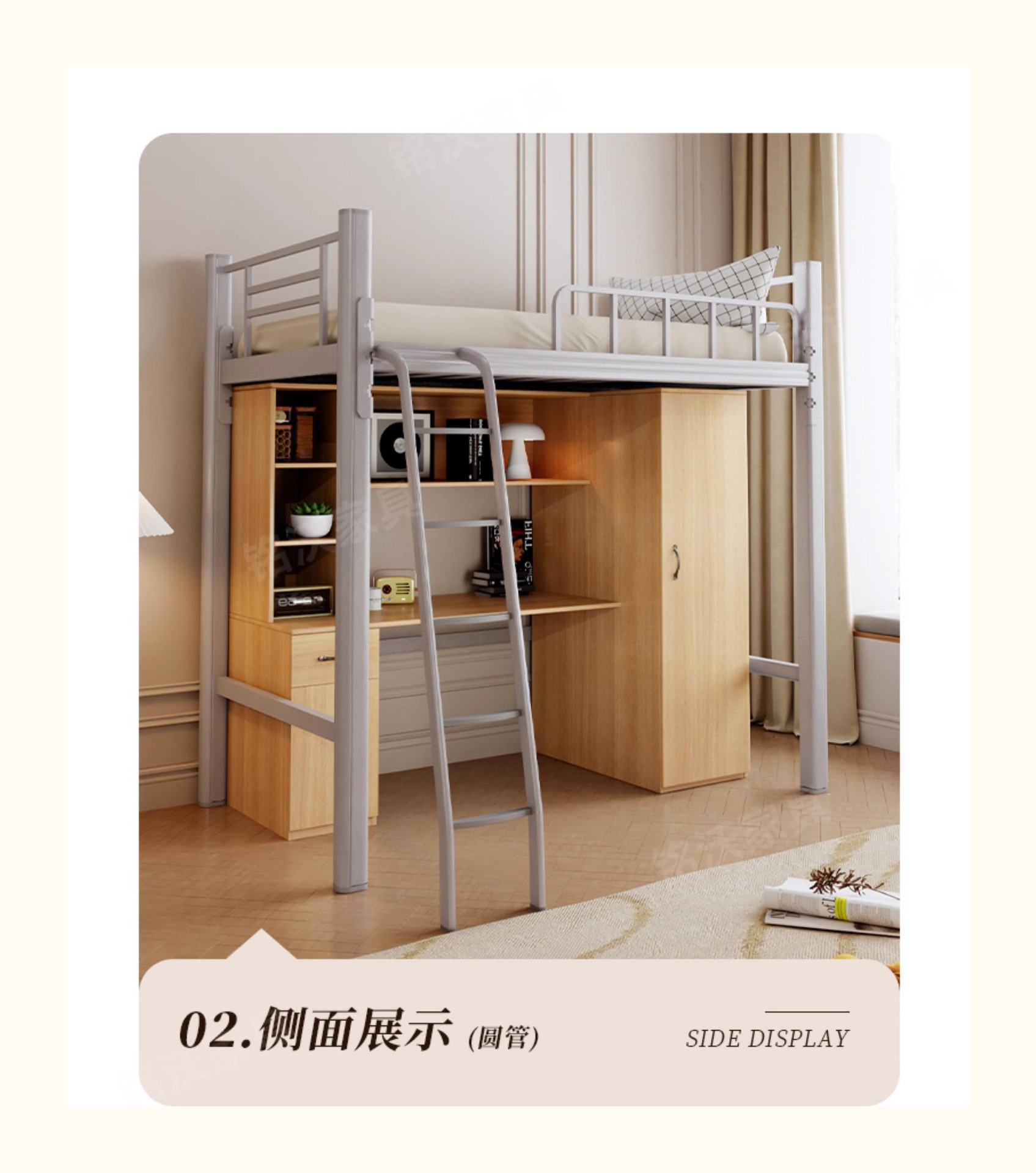침대와 테이블이 있는 학생 기숙사 철제 프레임 침대, 옷장이 있는 철제 조합 침대, 대학 아파트, 침대와 캐비닛이 있는 이층 침대스토어 가기