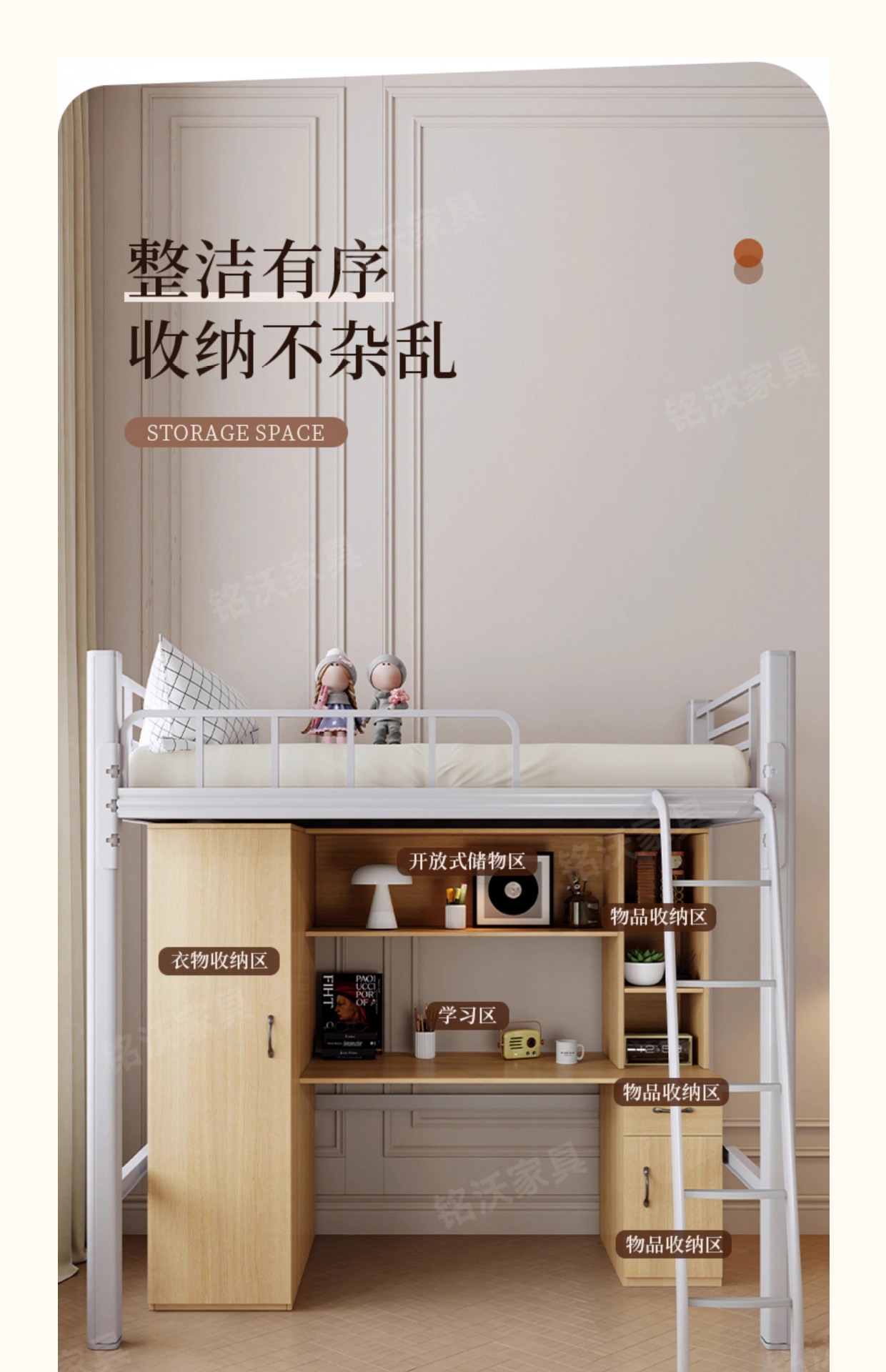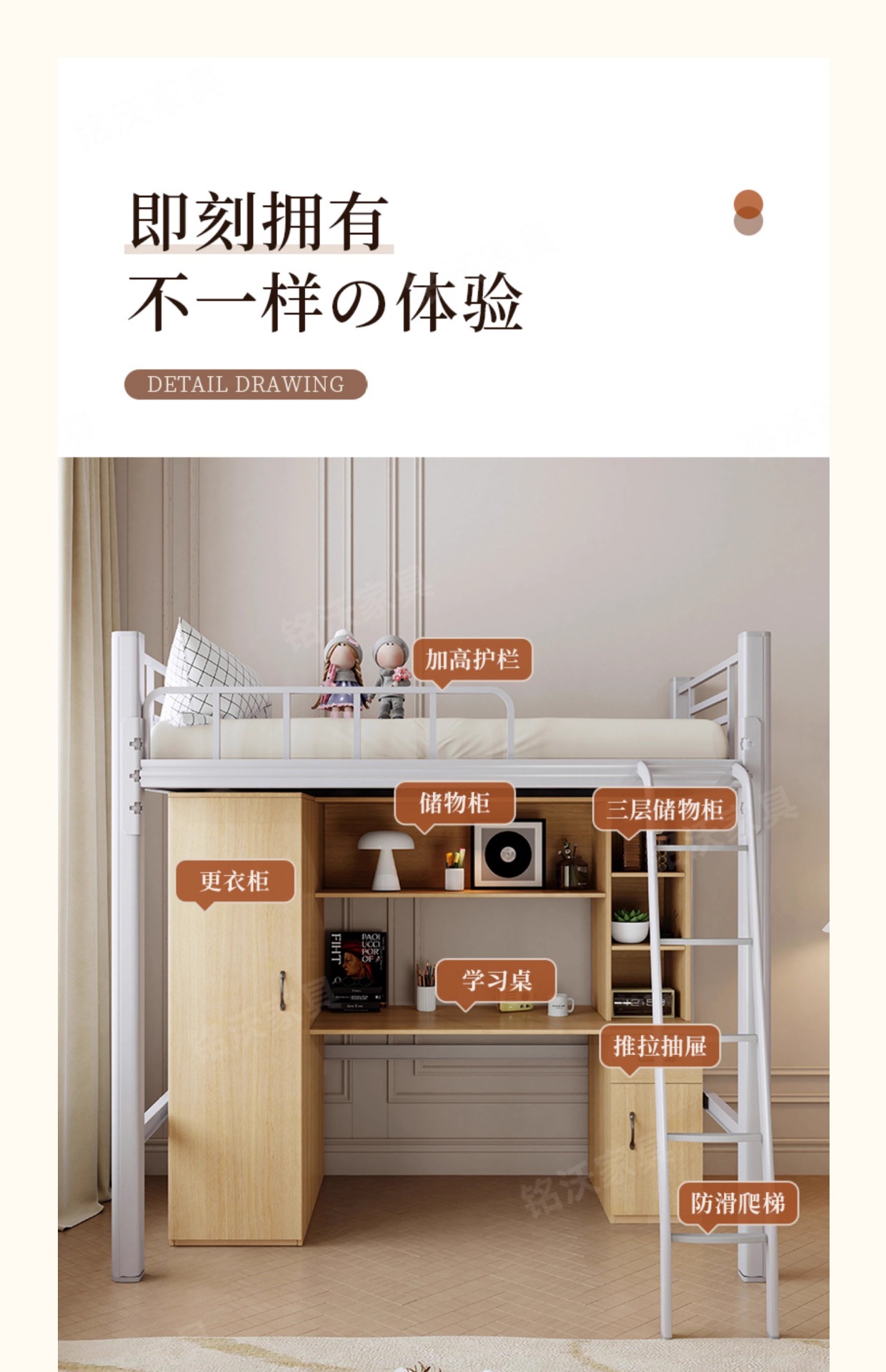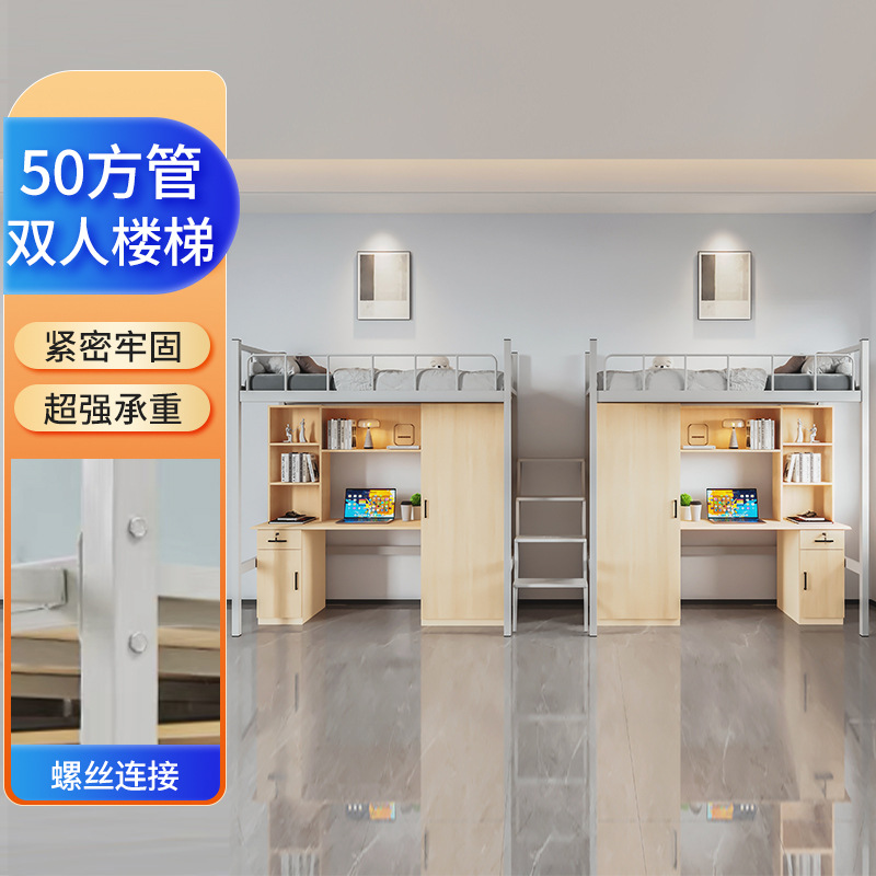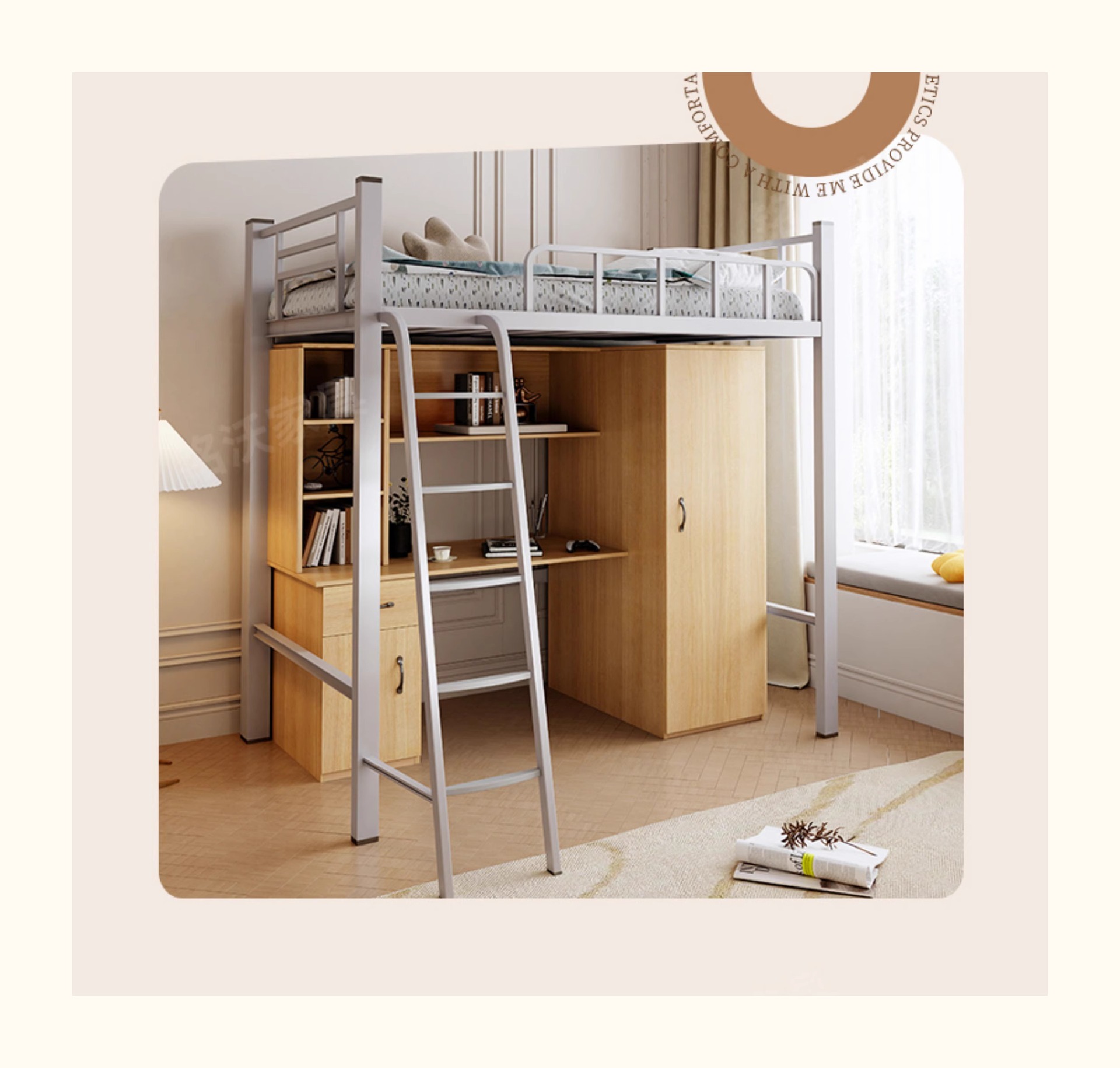 침대와 테이블이 있는 학생 기숙사 철제 프레임 침대, 옷장이 있는 철제 조합 침대, 대학 아파트, 침대와 캐비닛이 있는 이층 침대스토어 가기