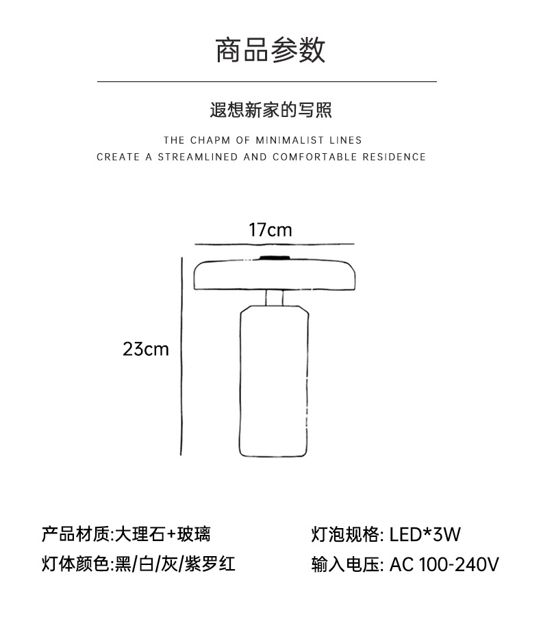 국경 간 현대 간단한 휴대용 충전식 테이블 램프 거실 침실 머리맡 대리석 하이 엔드 분위기 램프스토어 가기