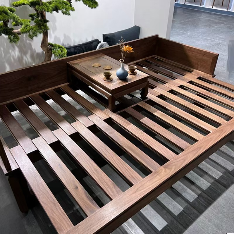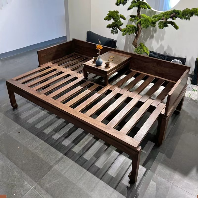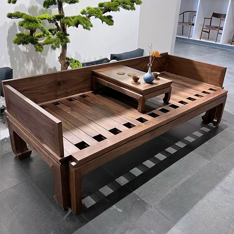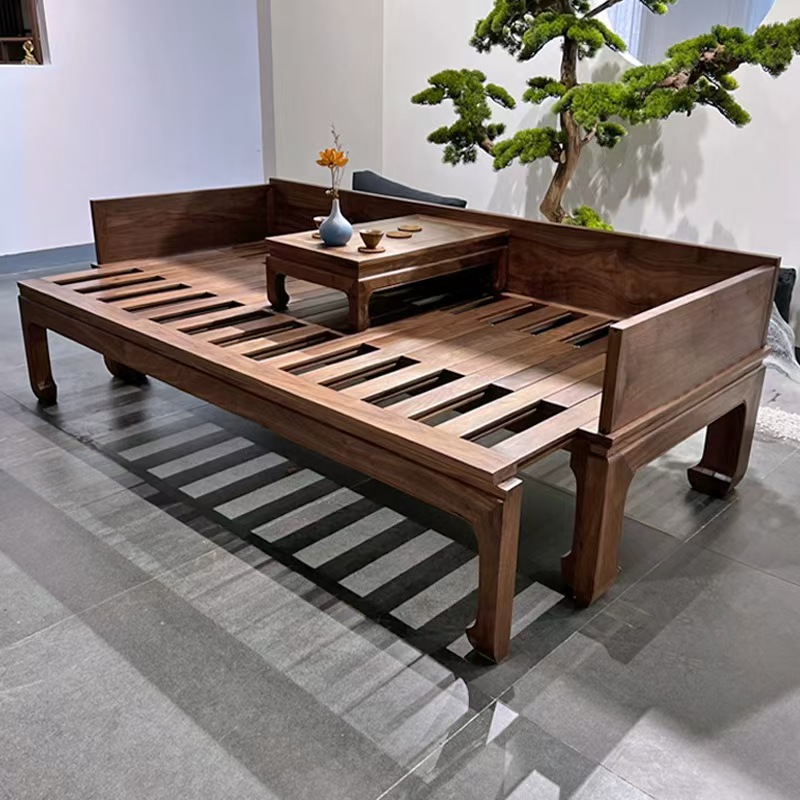 오래된 느릅나무 로한 침대, 거실, 소형 가정용 이중 목적 소파 침대, 새로운 중국 스타일의 단단한 나무 슬라이딩 소파 침대, 긴 침대스토어 가기