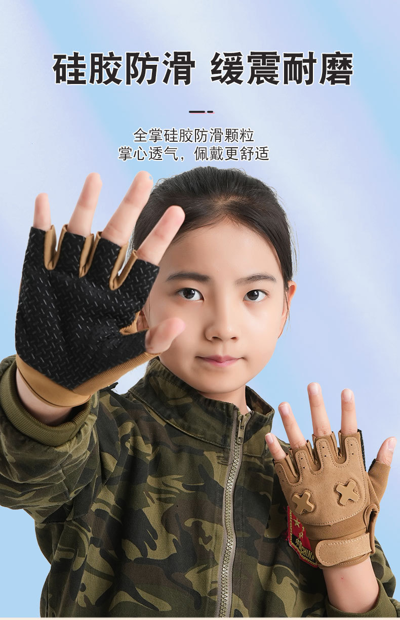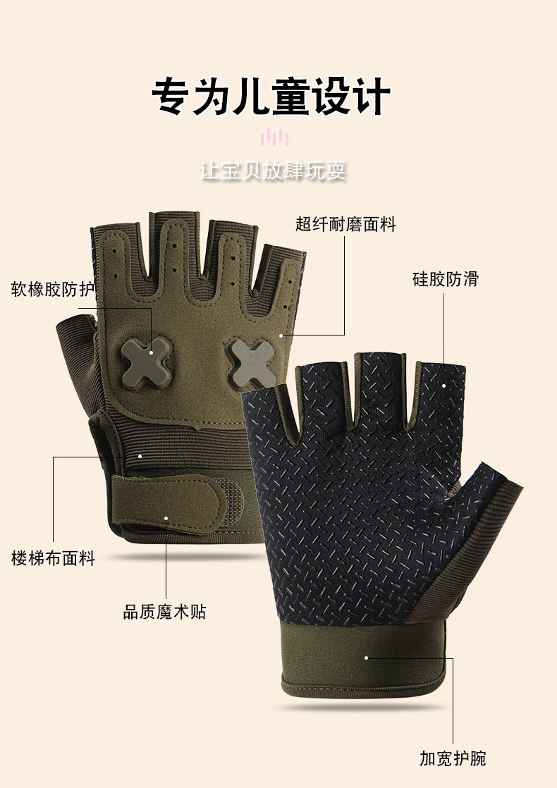 어린이 장갑 반 손가락 야외 사이클링 자전거 소년과 소녀 보호 미끄럼 방지 내마모성 봄과 여름 등산 통기성