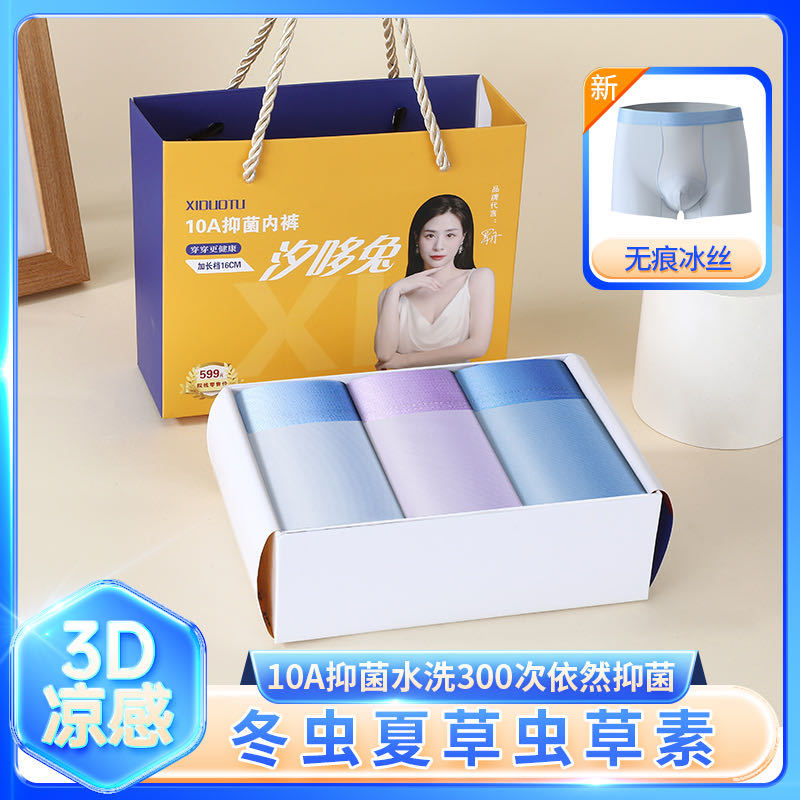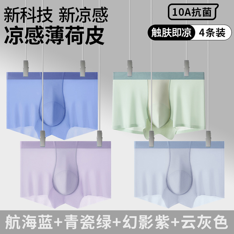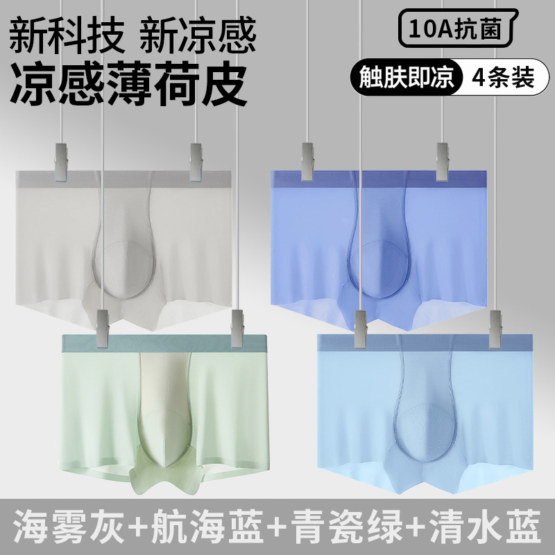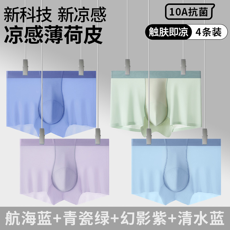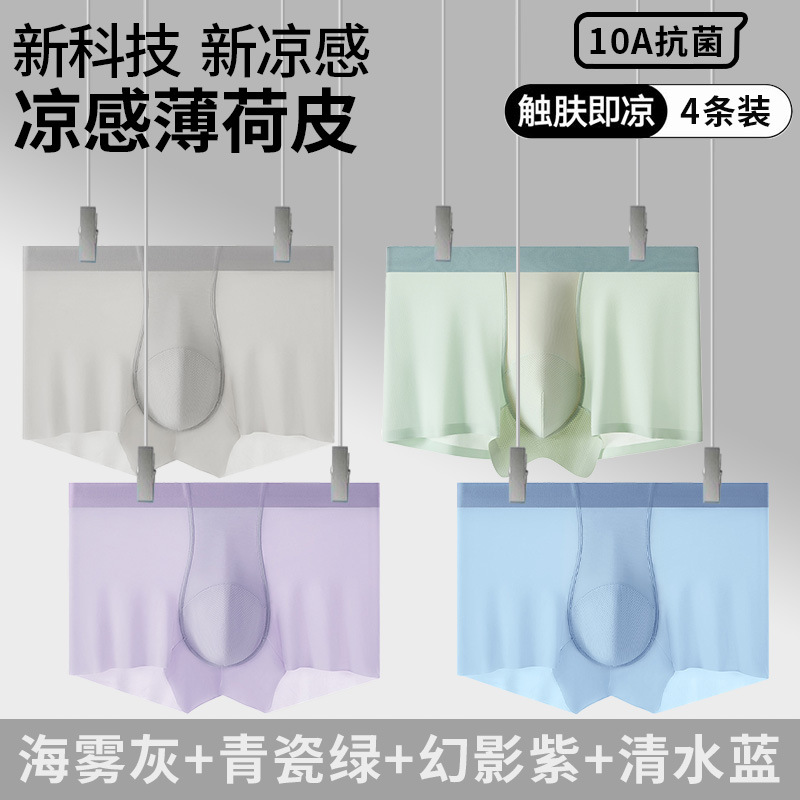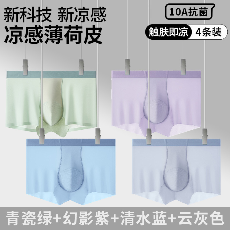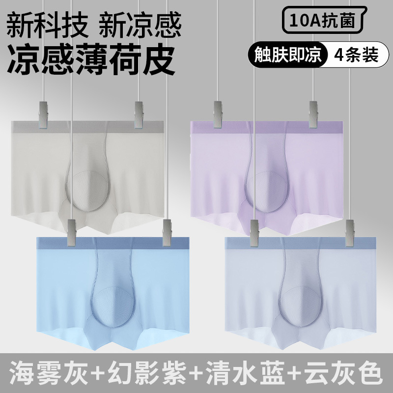 아이스 실크 남성 속옷, 무봉제 사각팬티, 여름용 얇은 10A 항균 실크 가랑이, 3D 허브 아이스 스킨 속옷 남성용스토어 가기